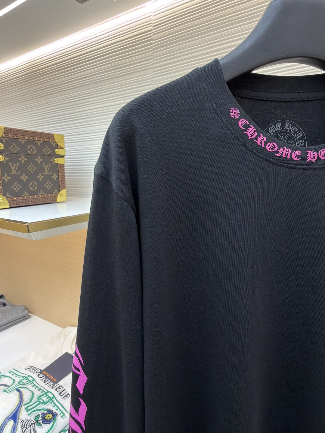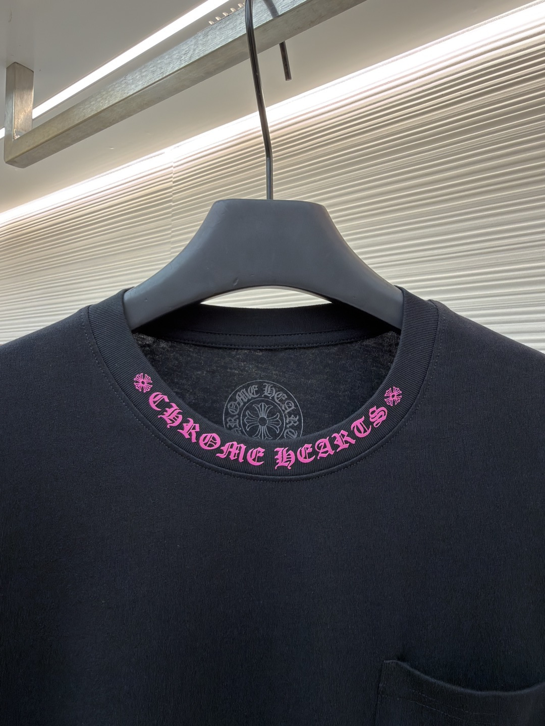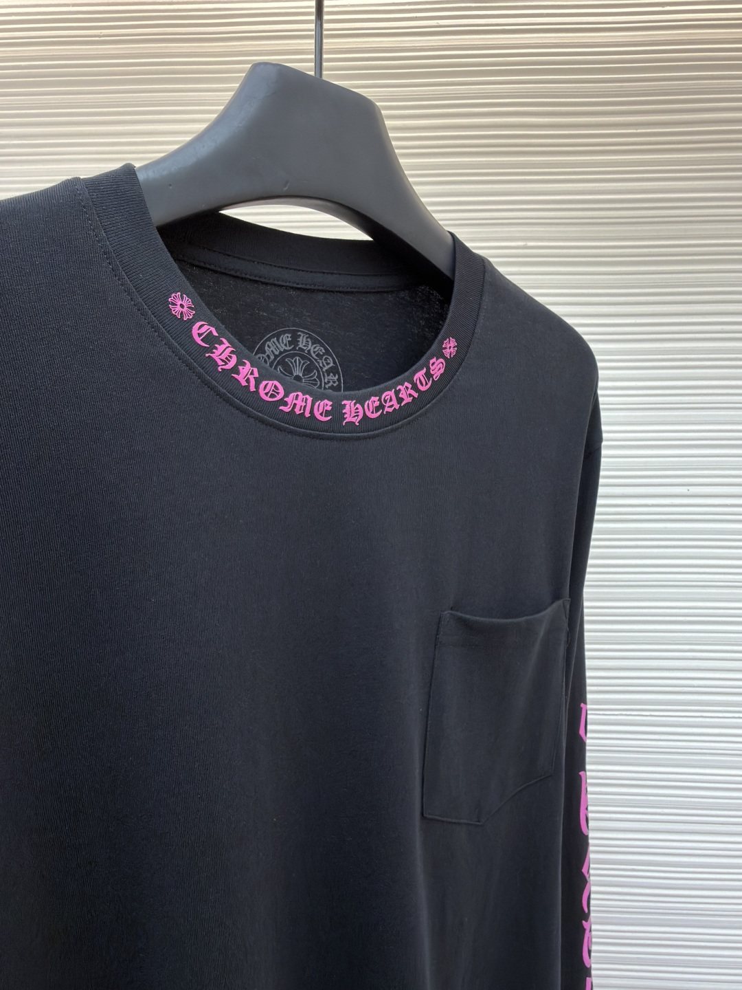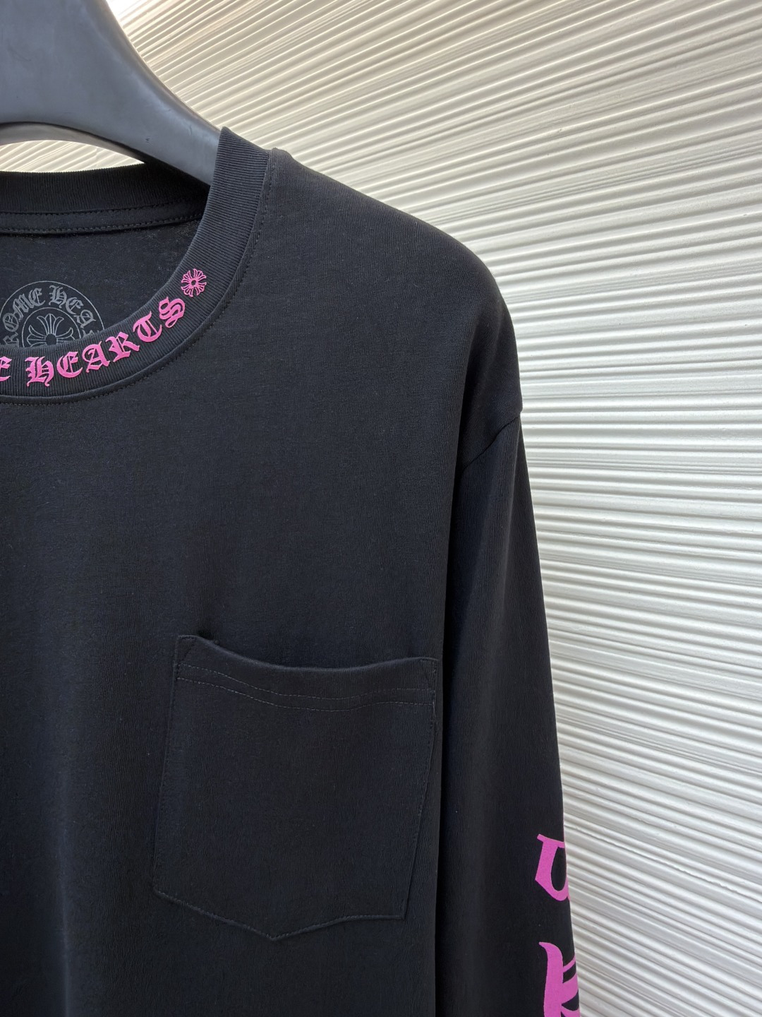 这款衣服是AAAAA 1:1 质量 (非常棒). 使用了和原版一模一样的材料. 商标部分也保持了和克罗心/Chrome Hearts一样. 图片拍摄是实物衣服拍摄, 您所收到的实物保证和我们图片一模一样.