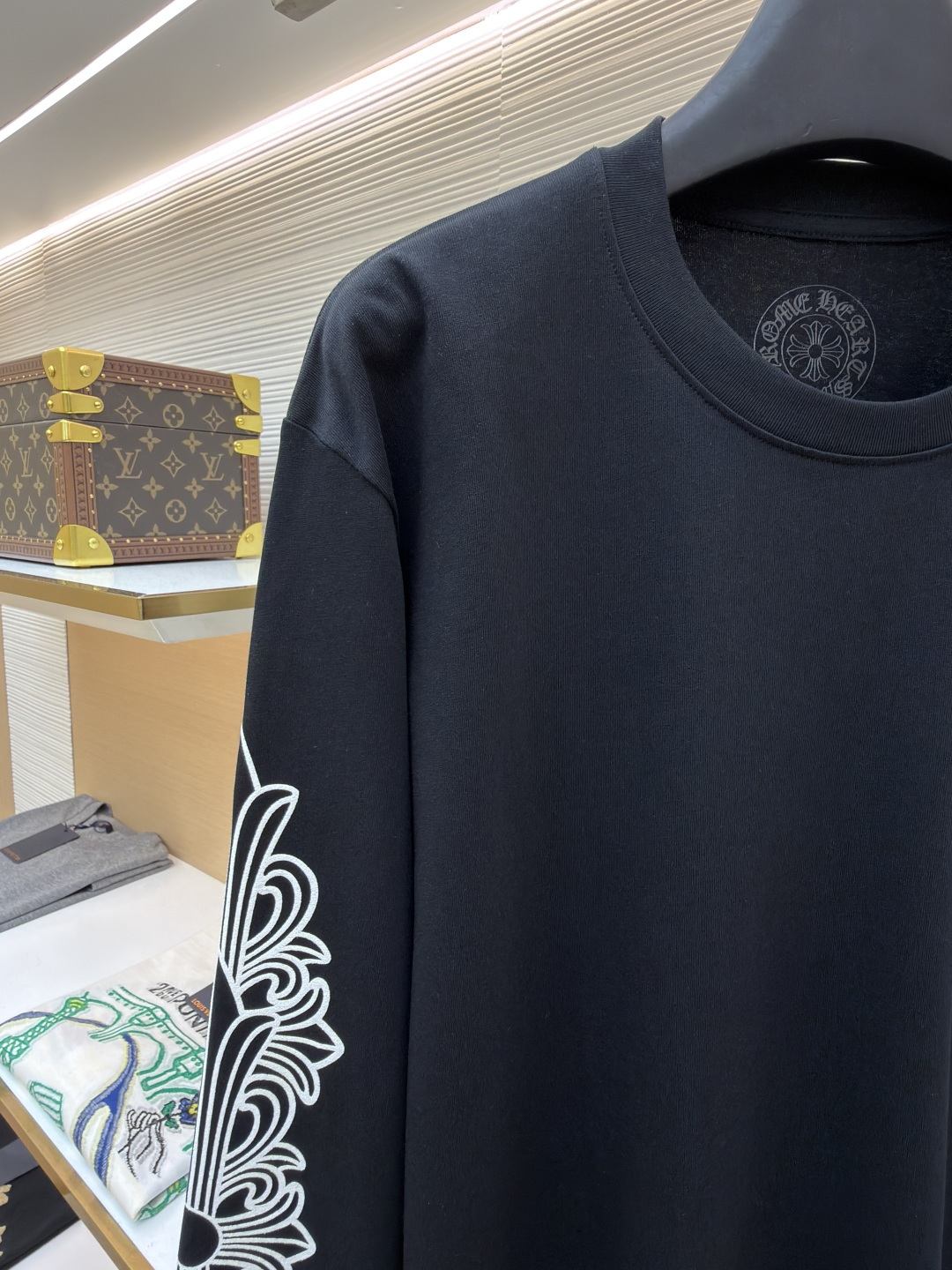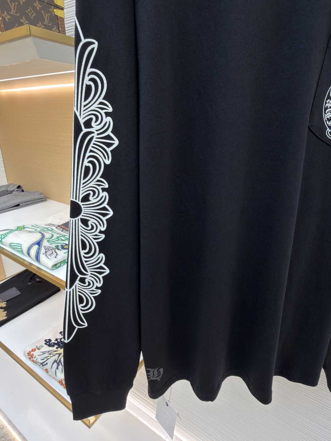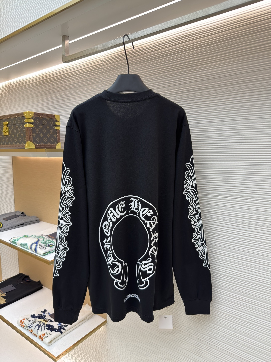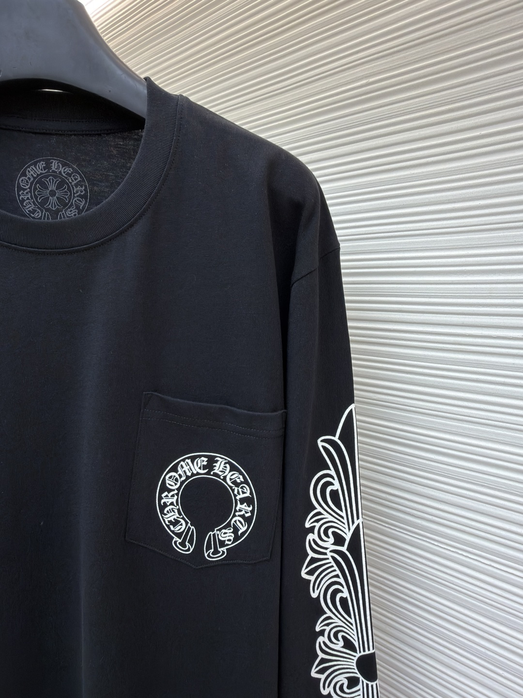 这款衣服是AAAAA 1:1 质量 (非常棒). 使用了和原版一模一样的材料. 商标部分也保持了和克罗心/Chrome Hearts一样. 图片拍摄是实物衣服拍摄, 您所收到的实物保证和我们图片一模一样.