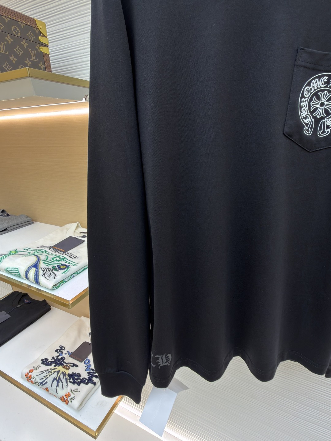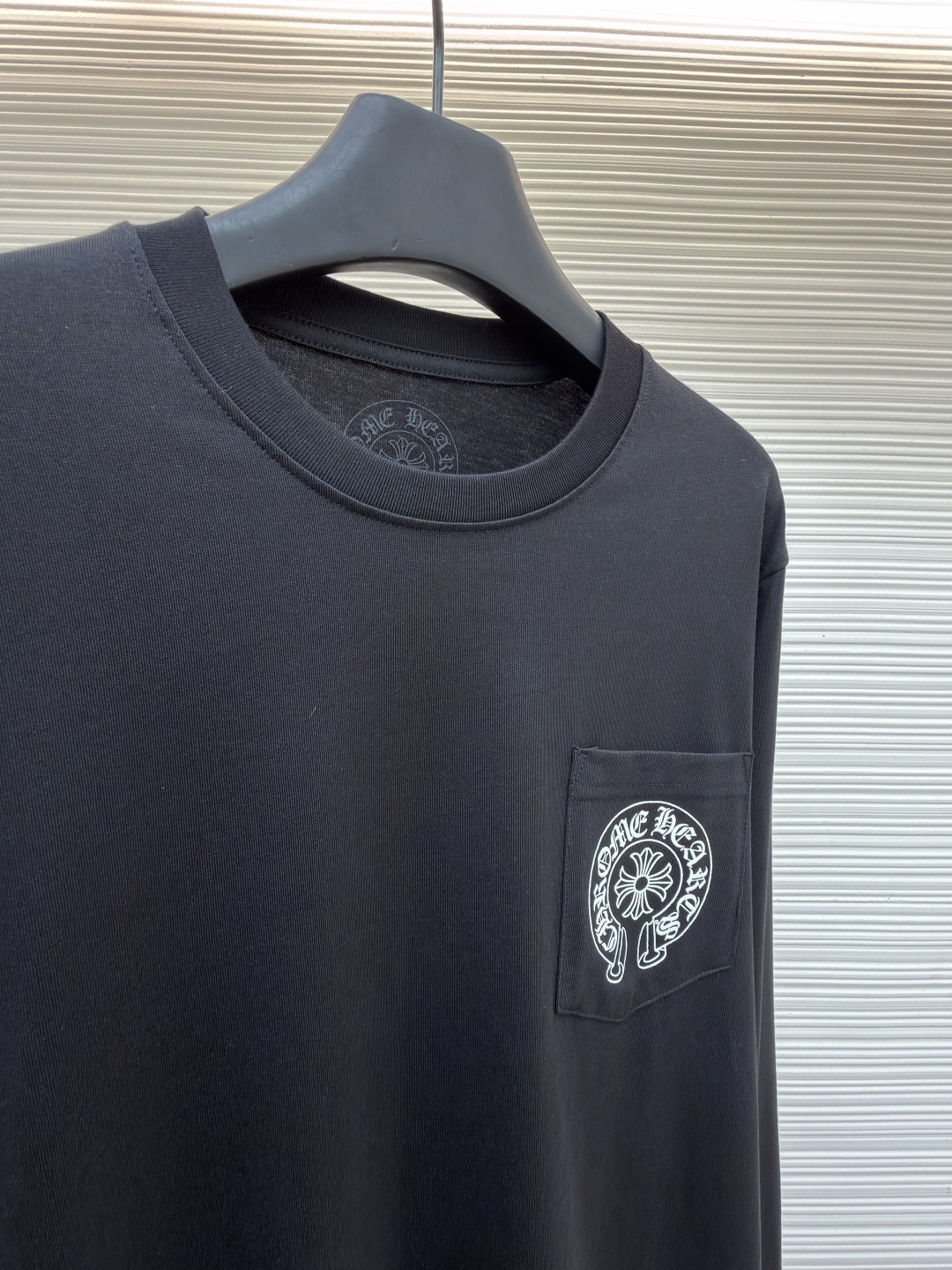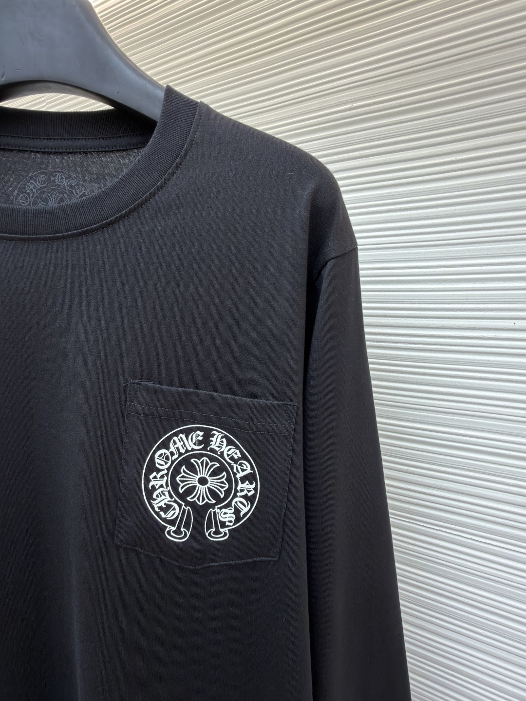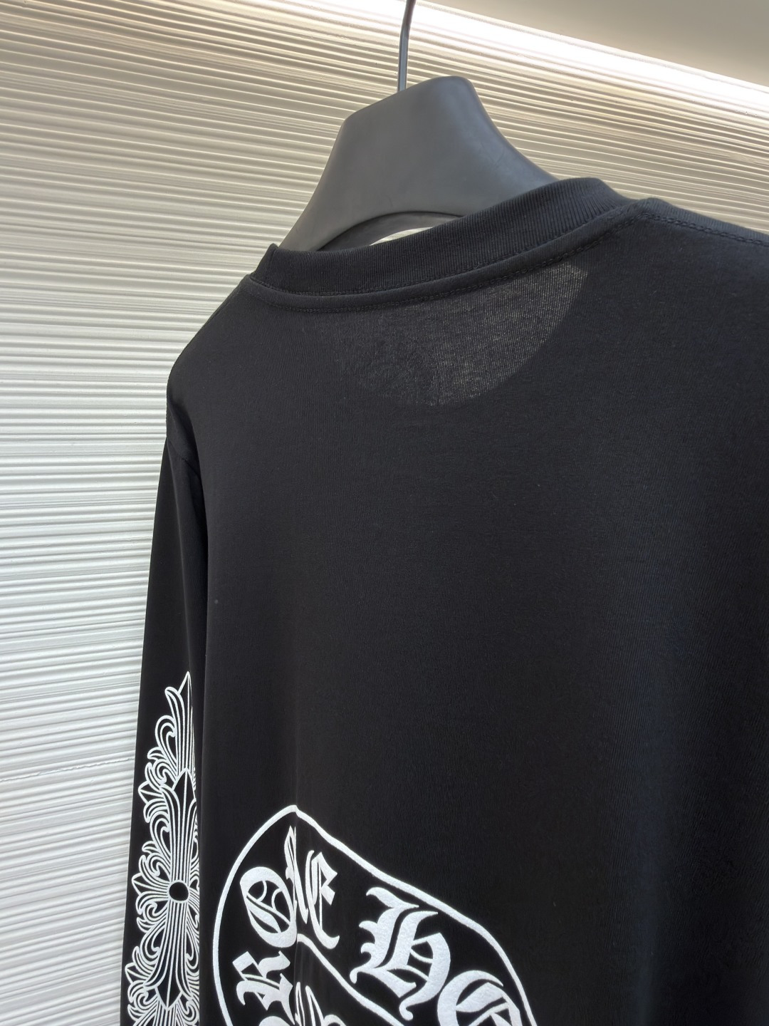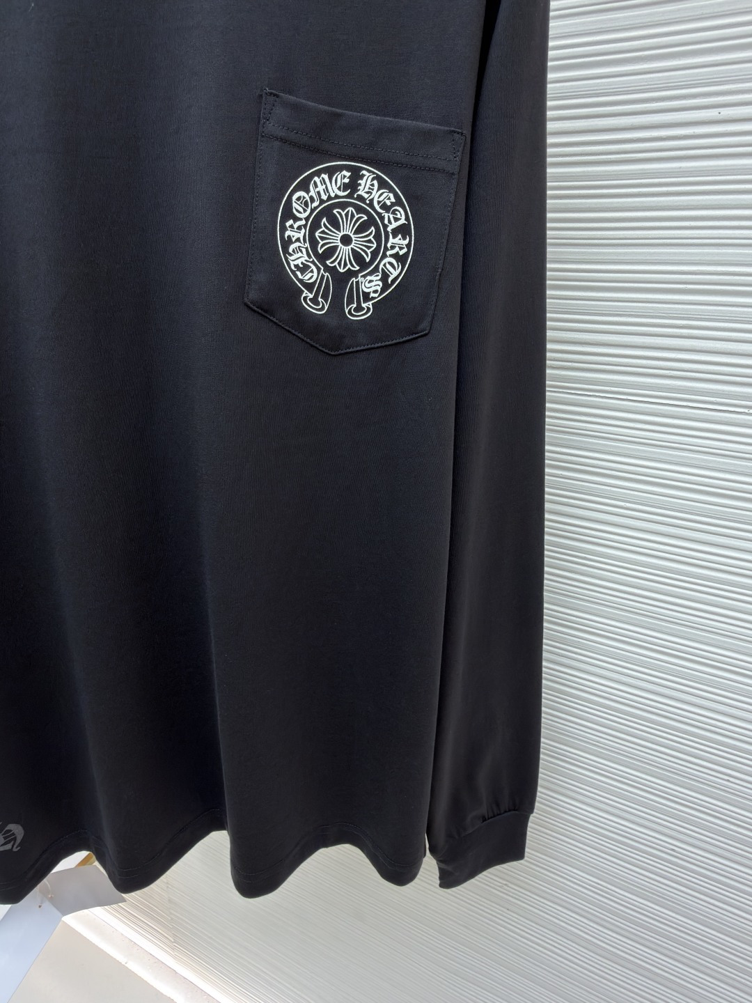 这款衣服是AAAAA 1:1 质量 (非常棒). 使用了和原版一模一样的材料. 商标部分也保持了和克罗心/Chrome Hearts一样. 图片拍摄是实物衣服拍摄, 您所收到的实物保证和我们图片一模一样.