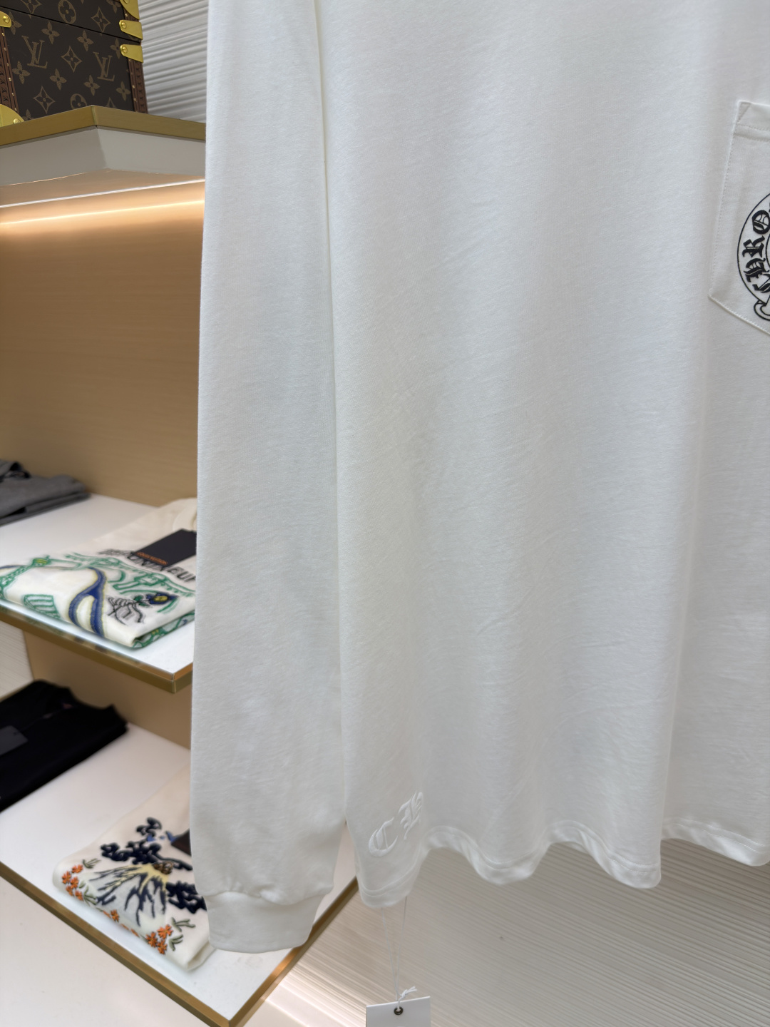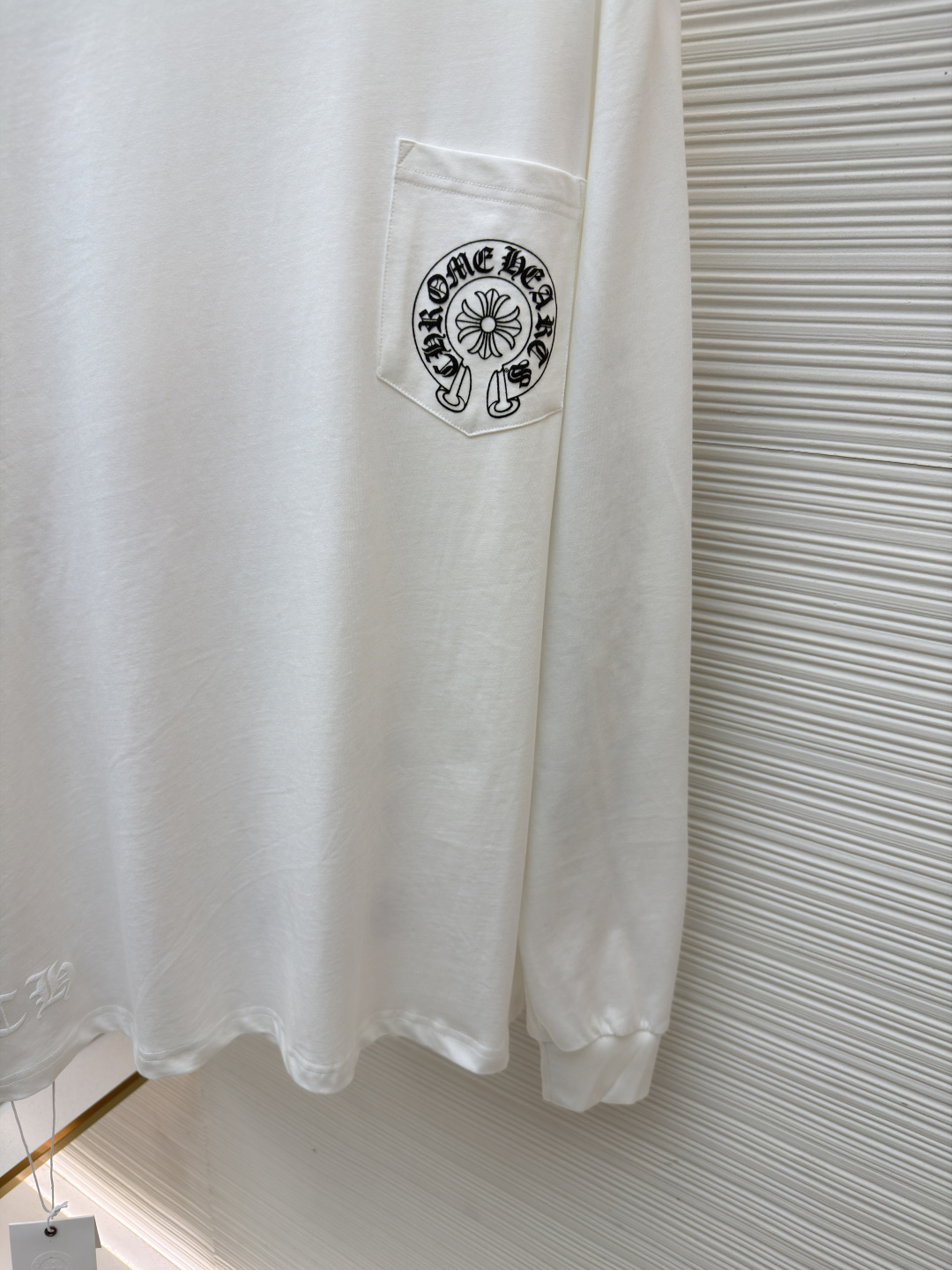 这款衣服是AAAAA 1:1 质量 (非常棒). 使用了和原版一模一样的材料. 商标部分也保持了和克罗心/Chrome Hearts一样. 图片拍摄是实物衣服拍摄, 您所收到的实物保证和我们图片一模一样.