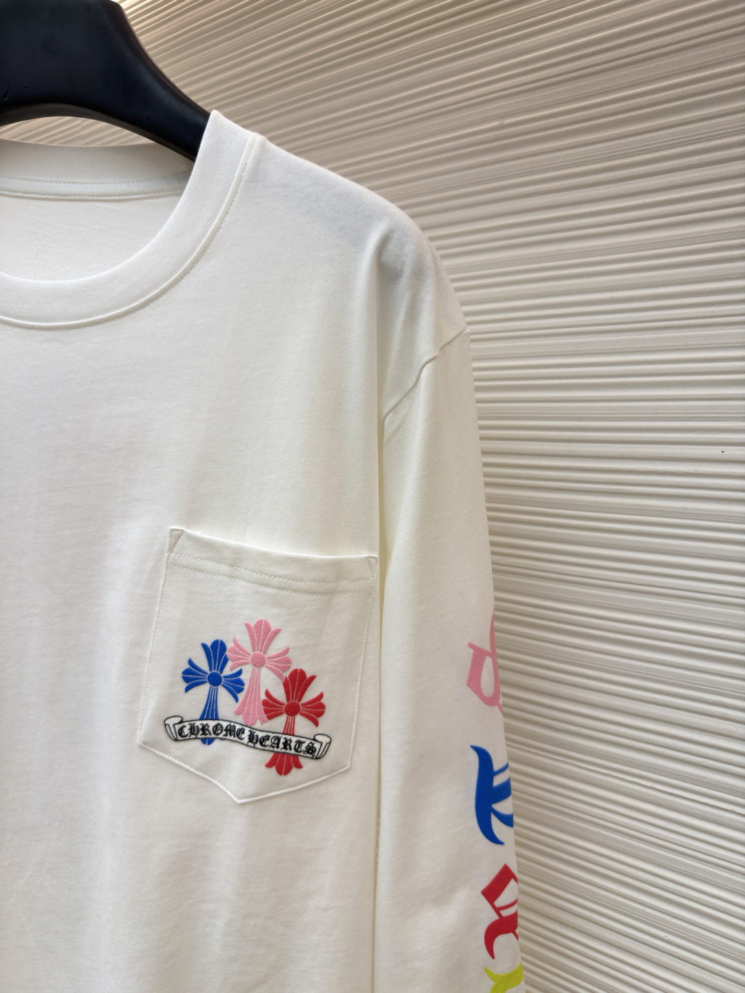 这款衣服是AAAAA 1:1 质量 (非常棒). 使用了和原版一模一样的材料. 商标部分也保持了和克罗心/Chrome Hearts一样. 图片拍摄是实物衣服拍摄, 您所收到的实物保证和我们图片一模一样.