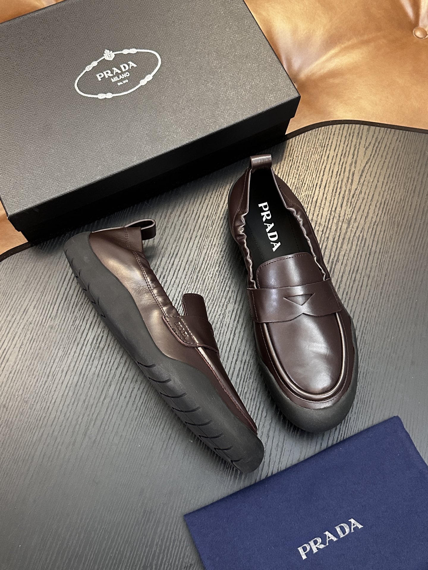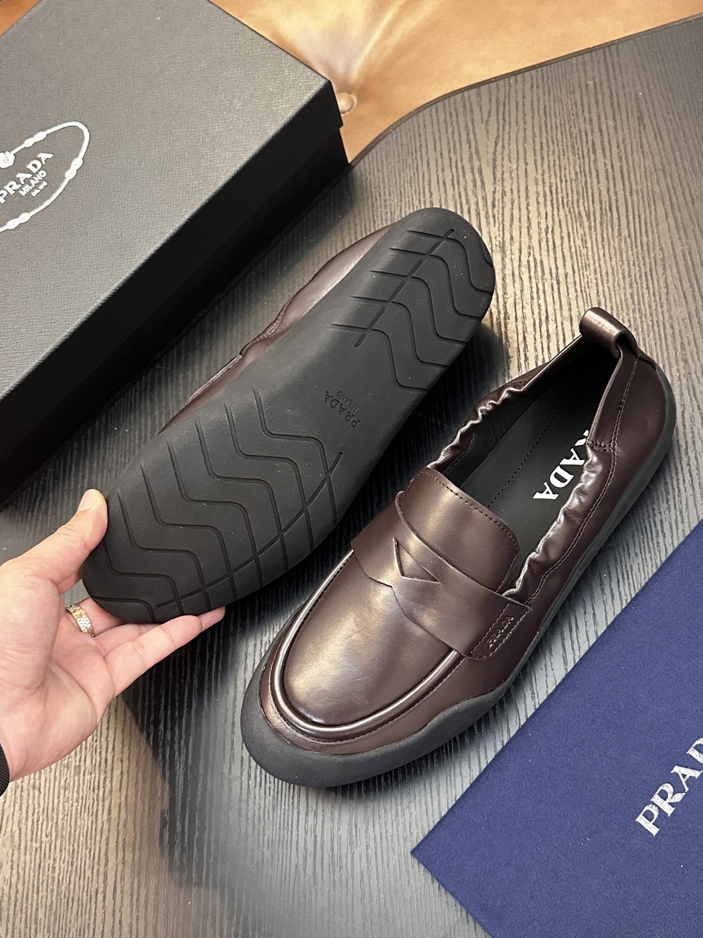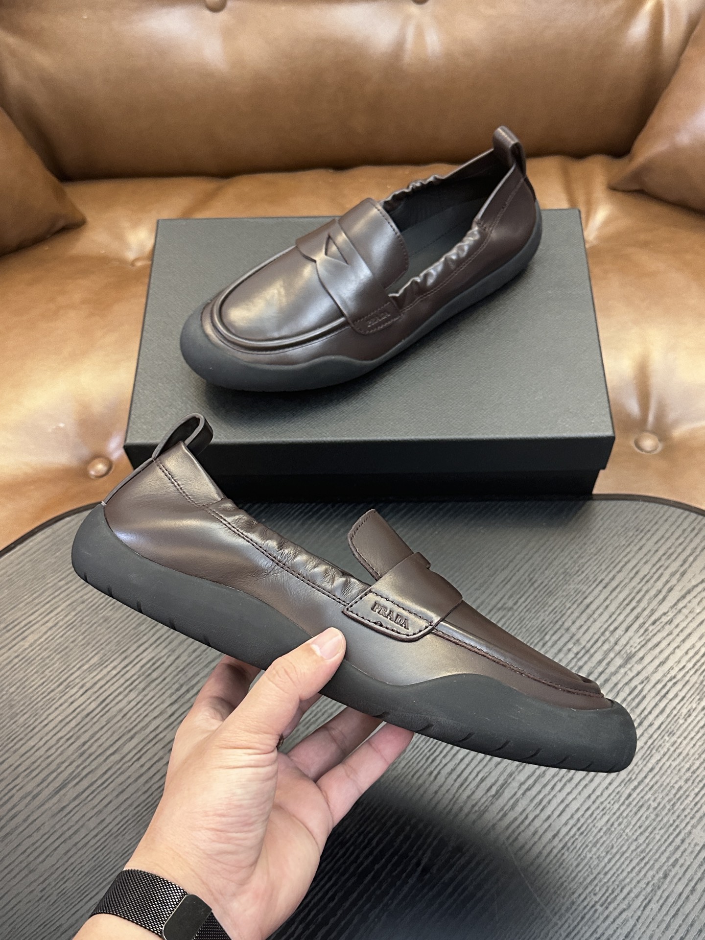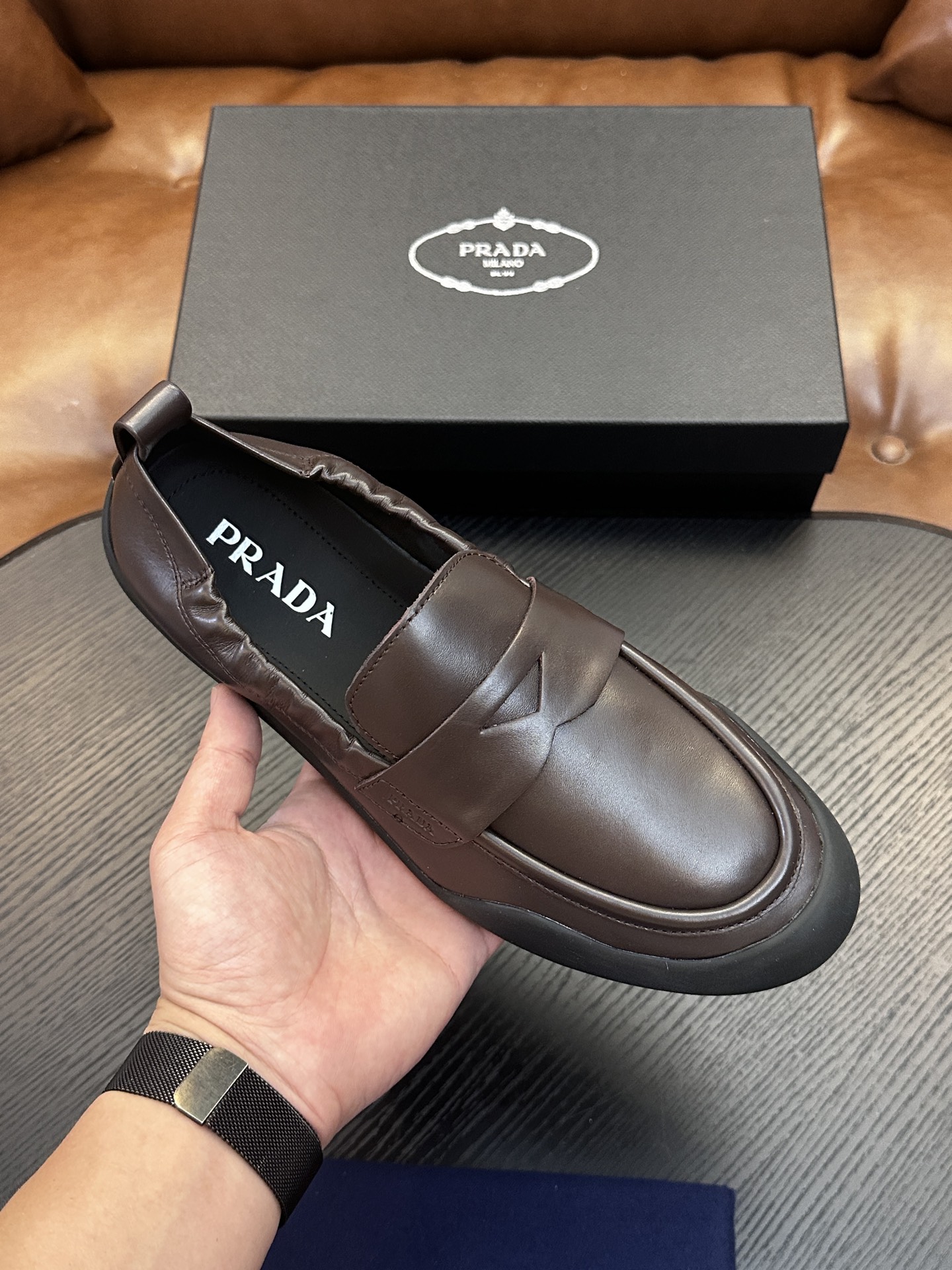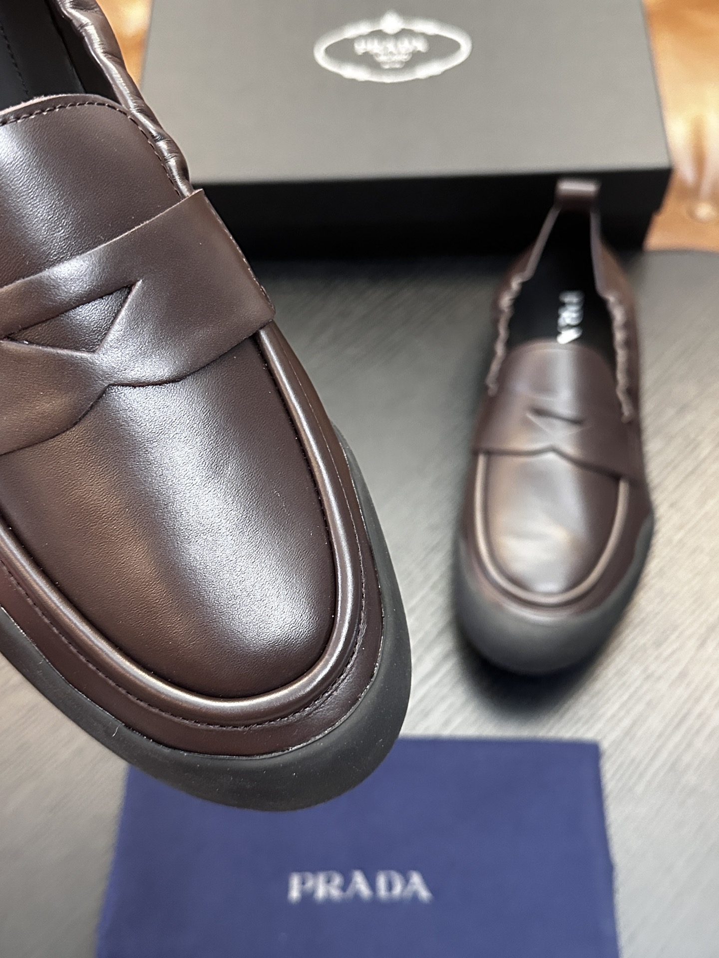 这款鞋子是AAAAA 1:1 质量 (非常棒). 使用了和原版一模一样的材料. 商标部分也保持了和普拉达/Prada一样. 图片拍摄是实物鞋子拍摄, 您所收到的实物保证和我们图片一模一样.