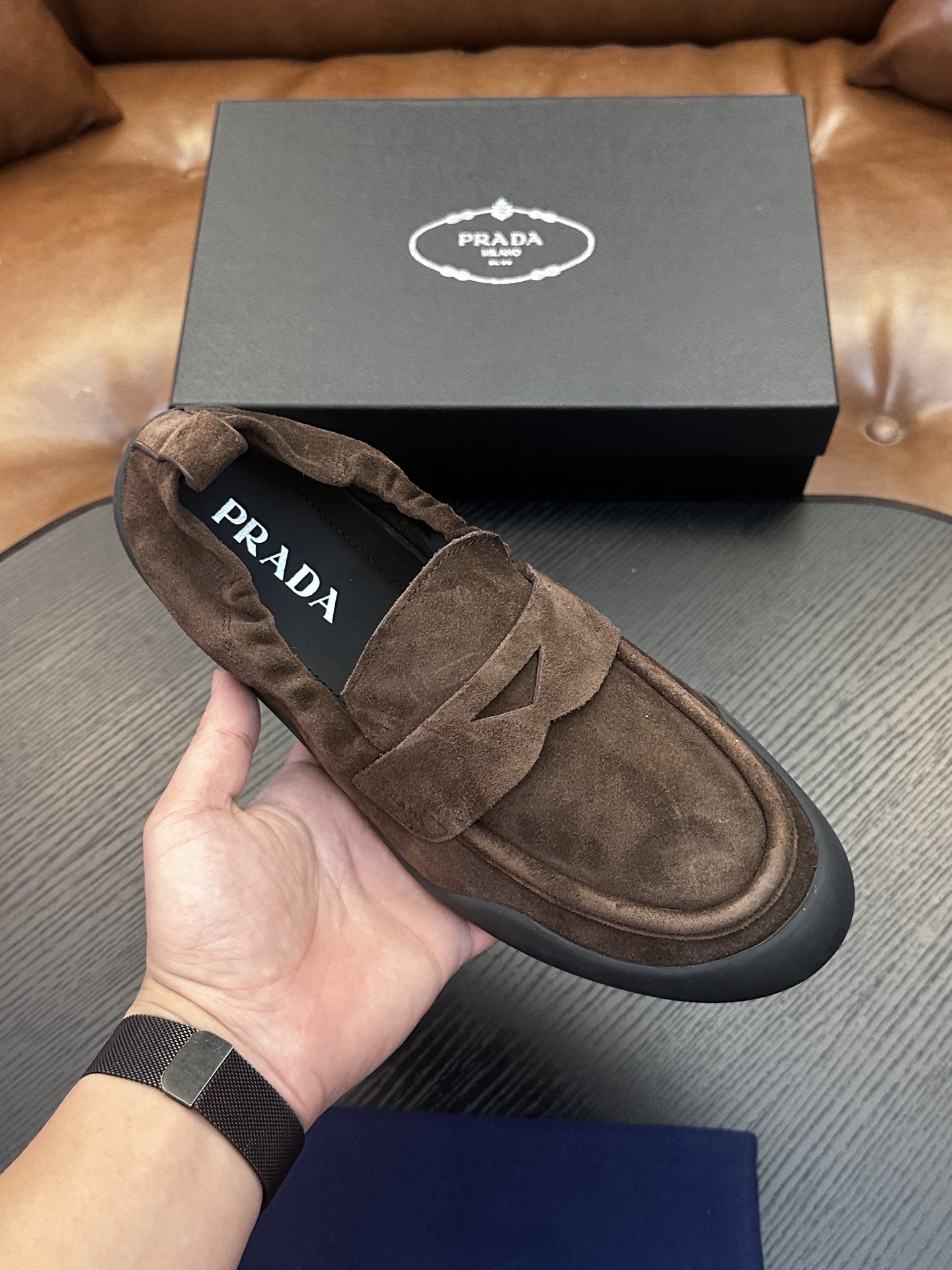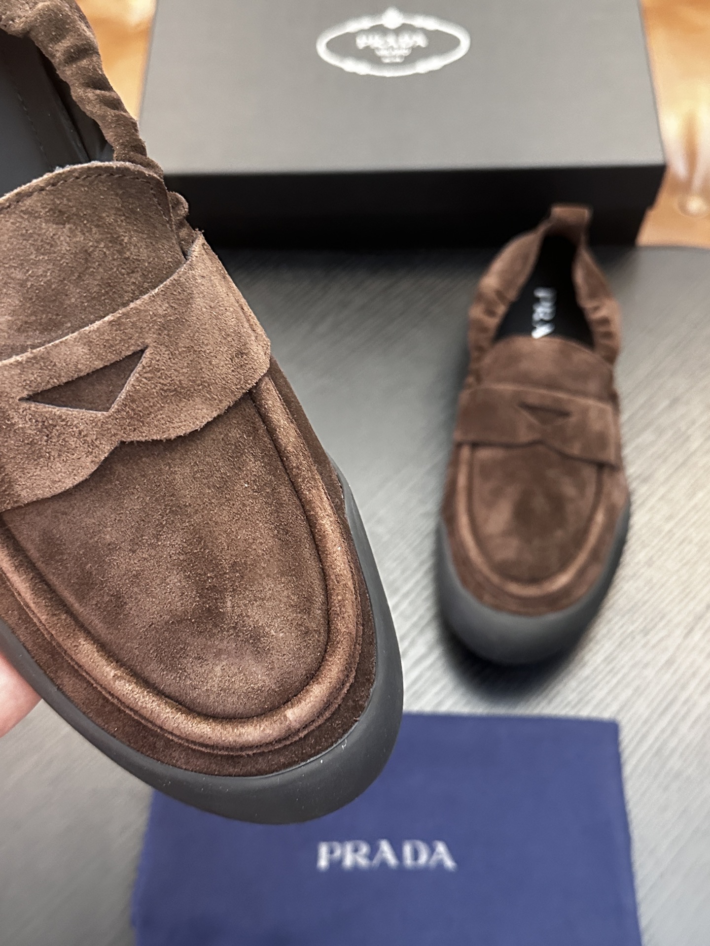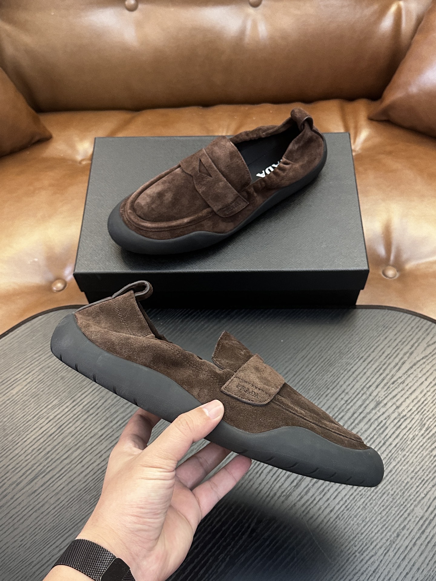 这款鞋子是AAAAA 1:1 质量 (非常棒). 使用了和原版一模一样的材料. 商标部分也保持了和普拉达/Prada一样. 图片拍摄是实物鞋子拍摄, 您所收到的实物保证和我们图片一模一样.