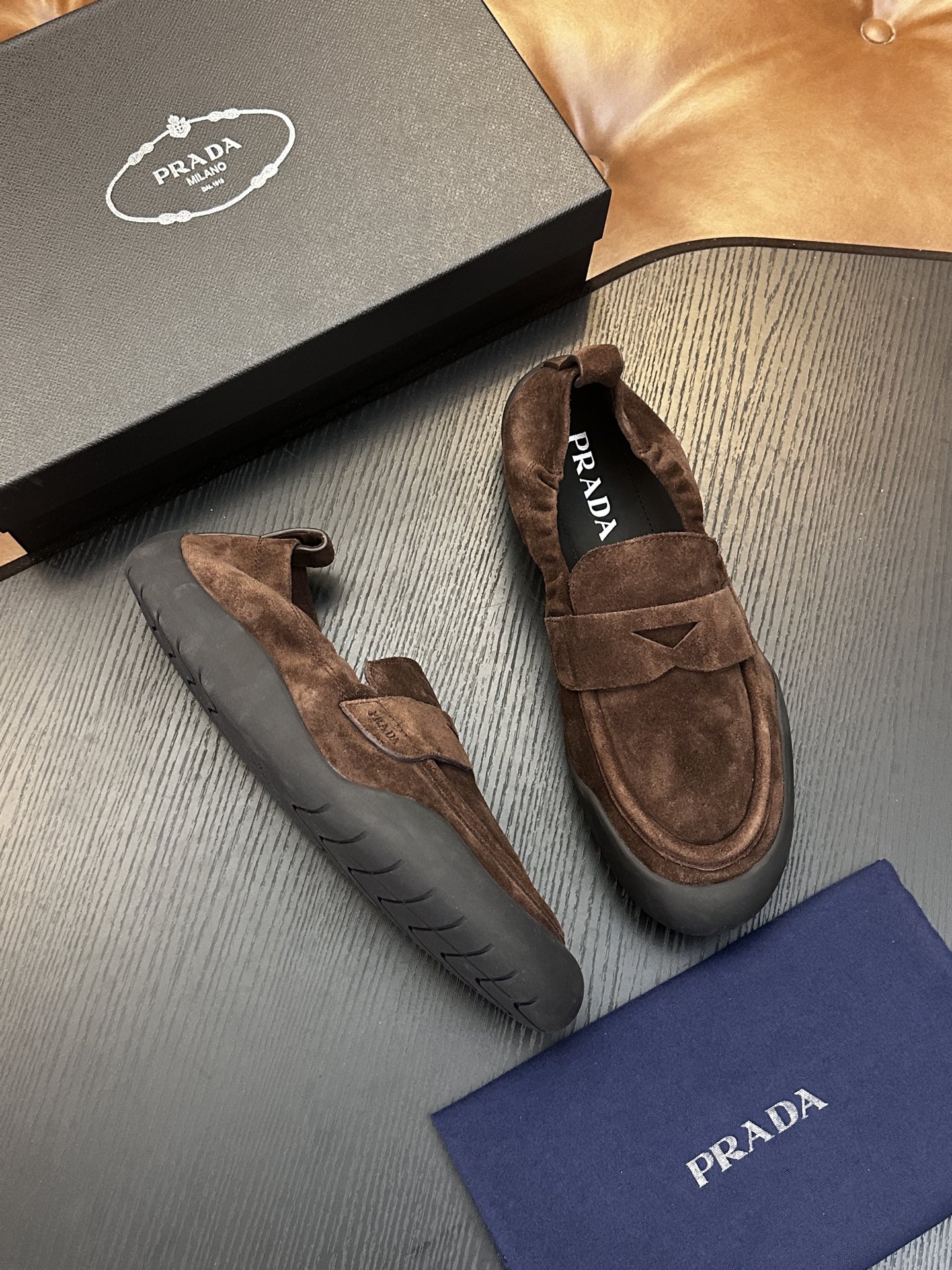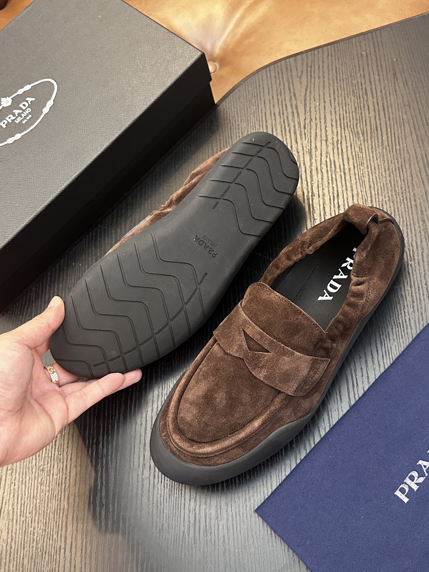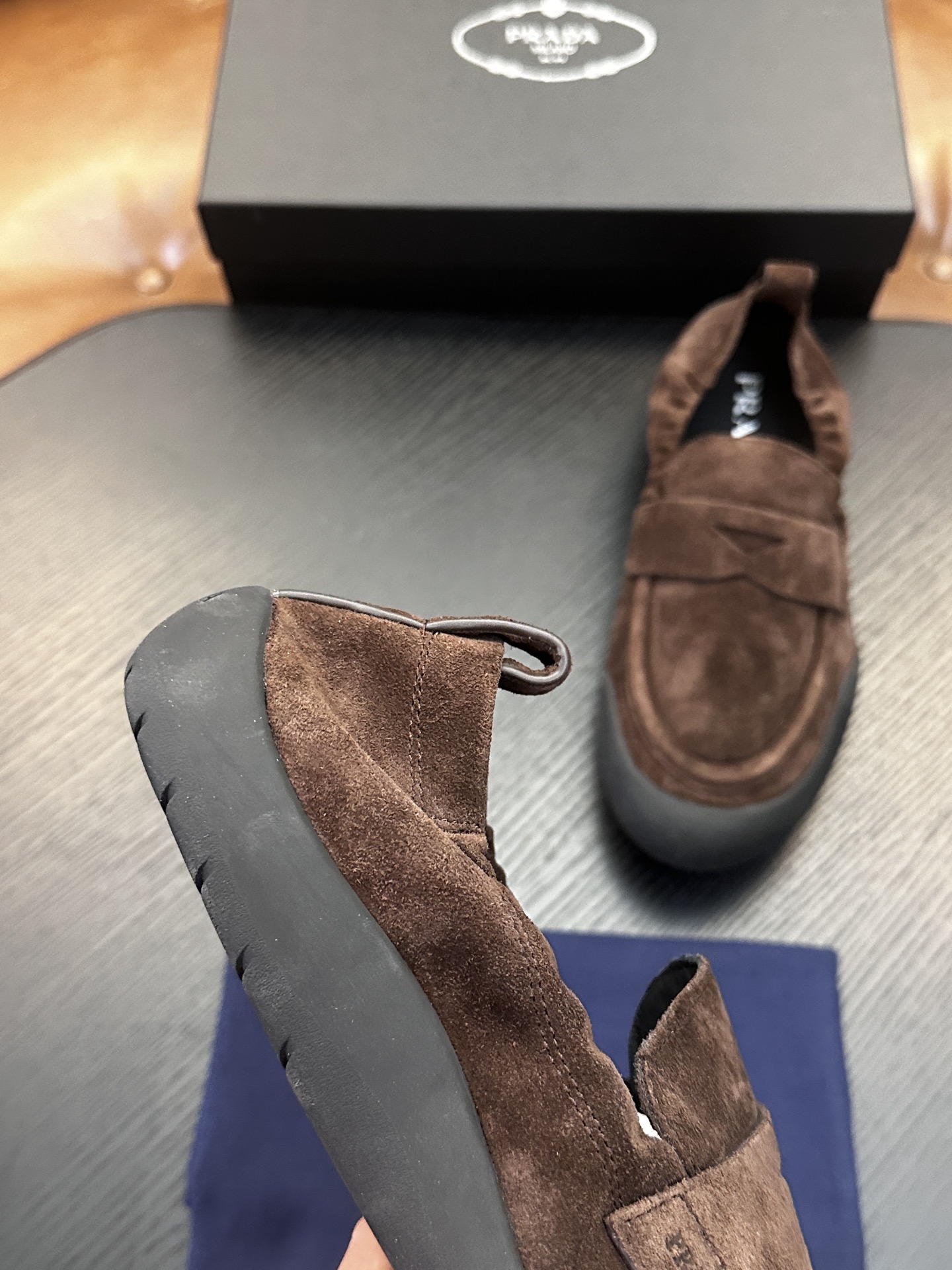 这款鞋子是AAAAA 1:1 质量 (非常棒). 使用了和原版一模一样的材料. 商标部分也保持了和普拉达/Prada一样. 图片拍摄是实物鞋子拍摄, 您所收到的实物保证和我们图片一模一样.