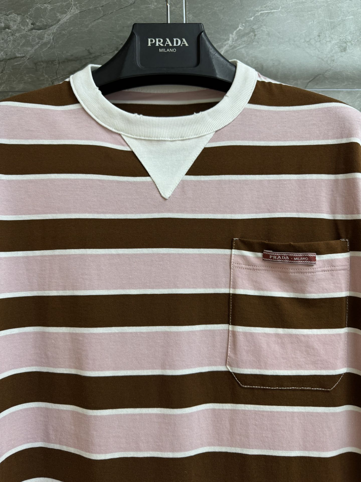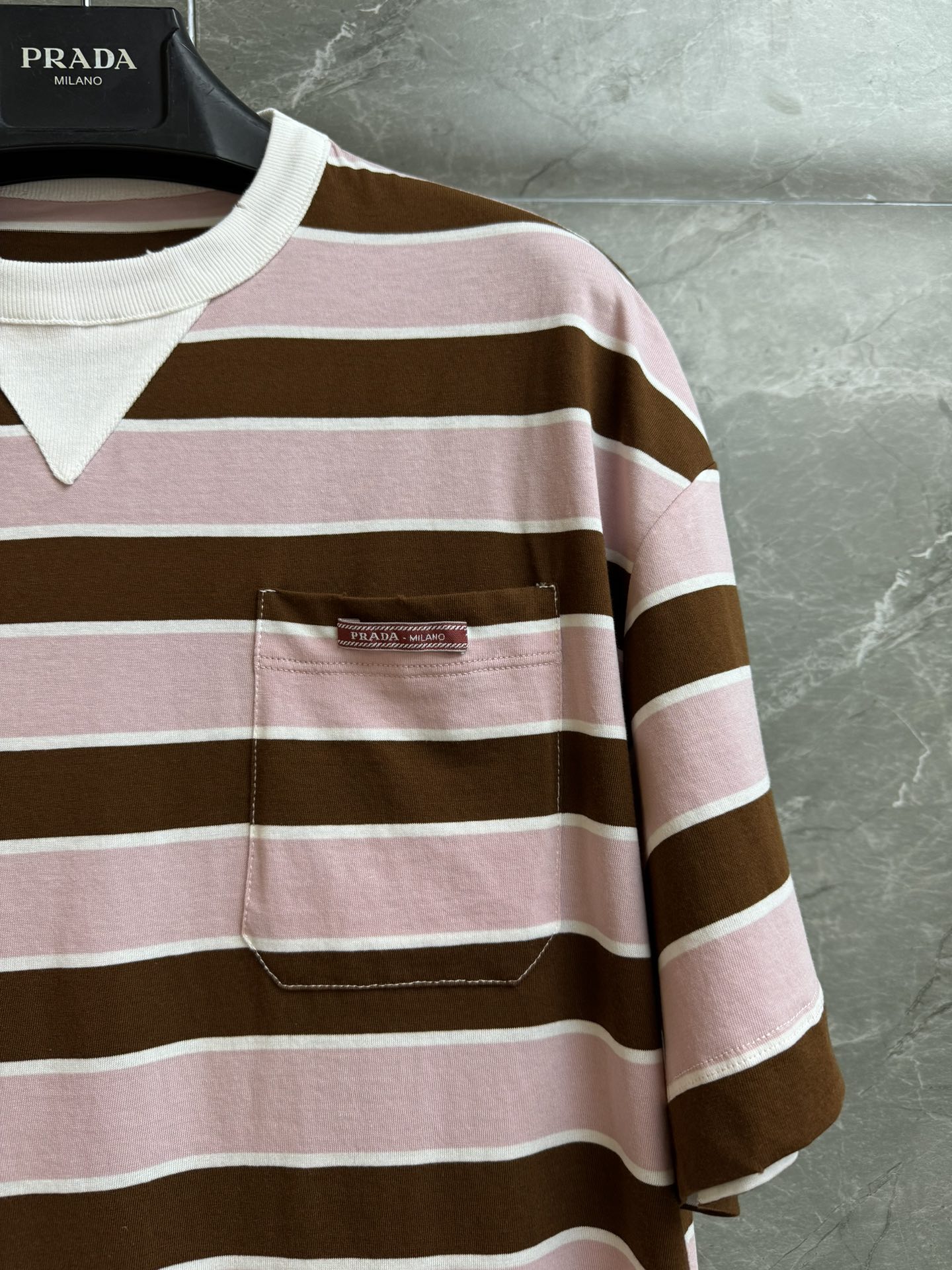 这款衣服是AAAAA 1:1 质量 (非常棒). 使用了和原版一模一样的材料. 商标部分也保持了和普拉达/Prada一样. 图片拍摄是实物衣服拍摄, 您所收到的实物保证和我们图片一模一样.