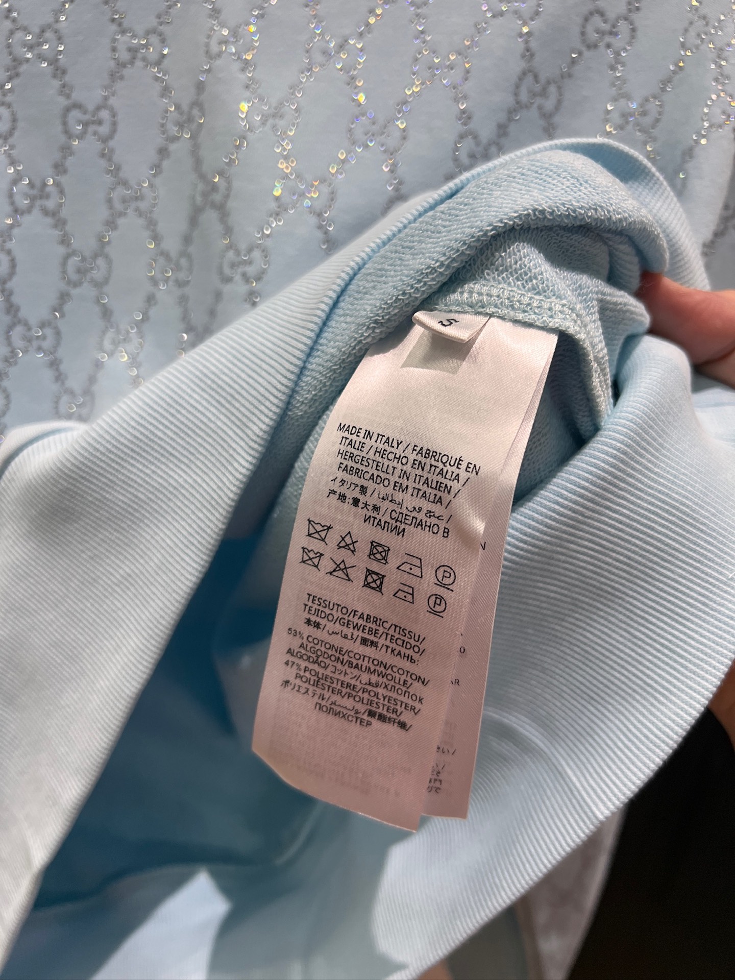 这款衣服是AAAAA 1:1 质量 (非常棒). 使用了和原版一模一样的材料. 商标部分也保持了和古奇/Gucci一样. 图片拍摄是实物衣服拍摄, 您所收到的实物保证和我们图片一模一样.