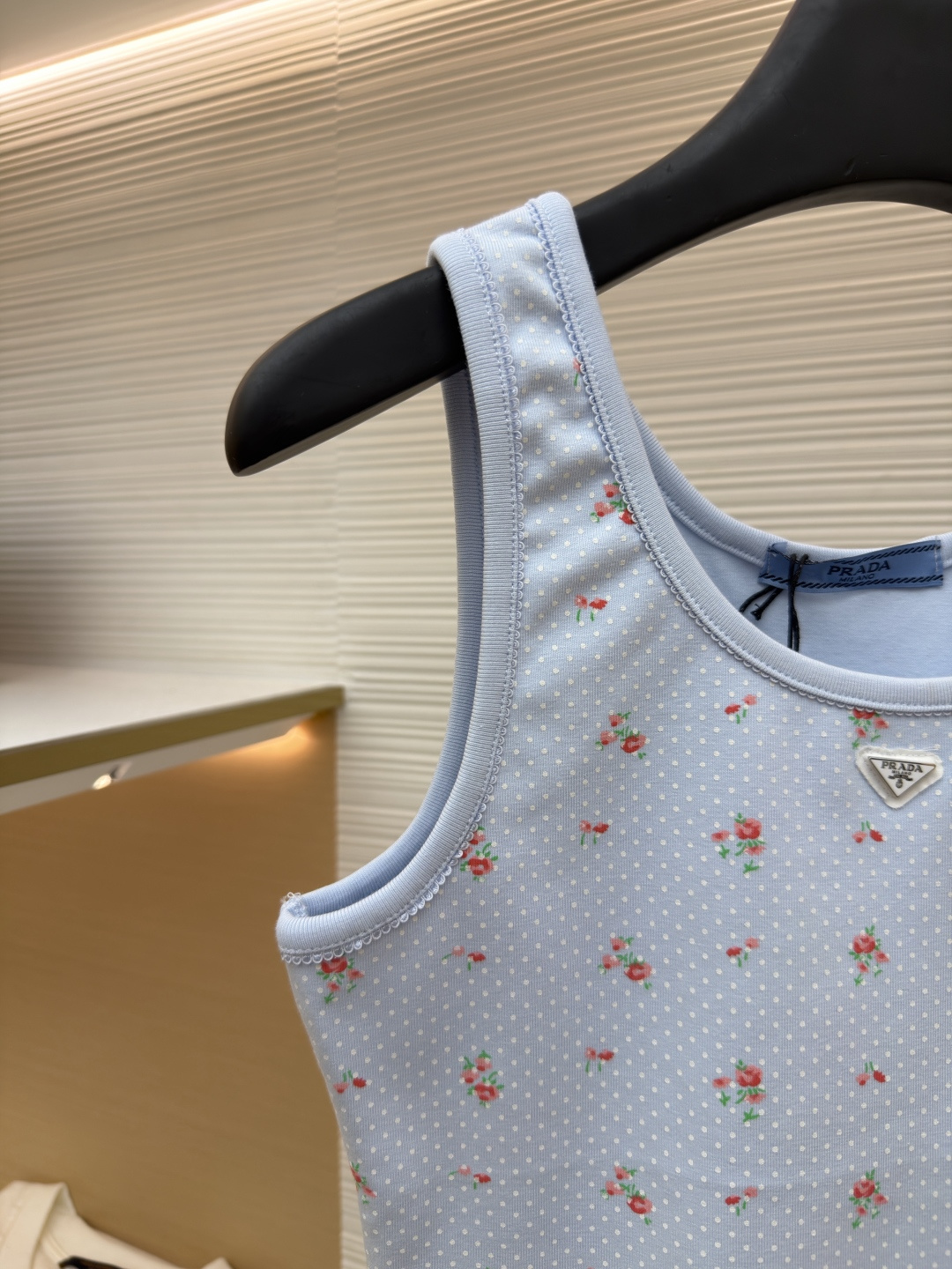 这款衣服是AAAAA 1:1 质量 (非常棒). 使用了和原版一模一样的材料. 商标部分也保持了和普拉达/Prada一样. 图片拍摄是实物衣服拍摄, 您所收到的实物保证和我们图片一模一样.