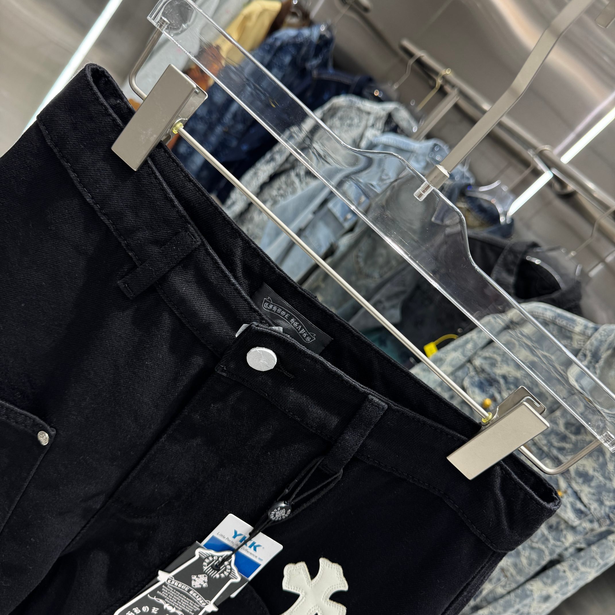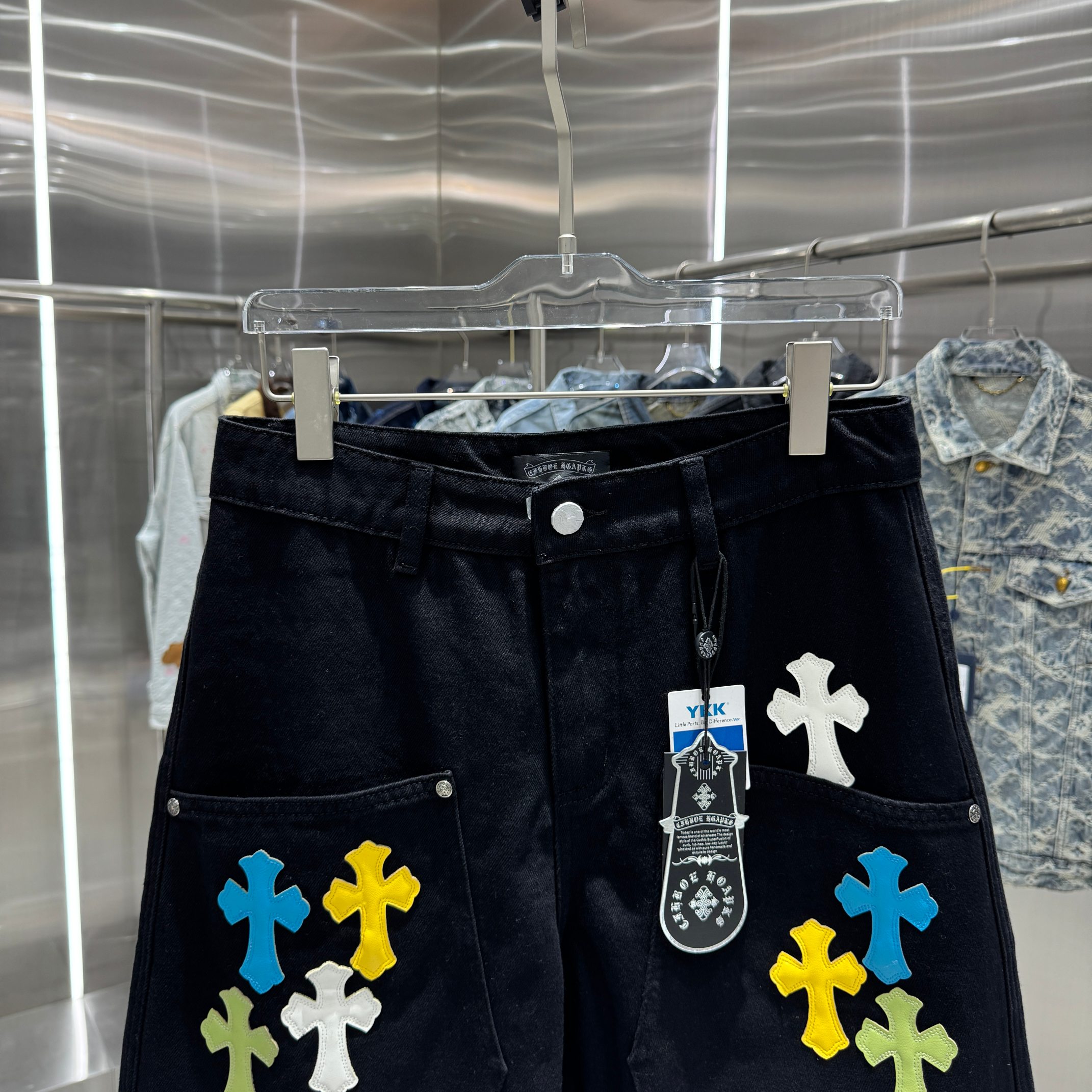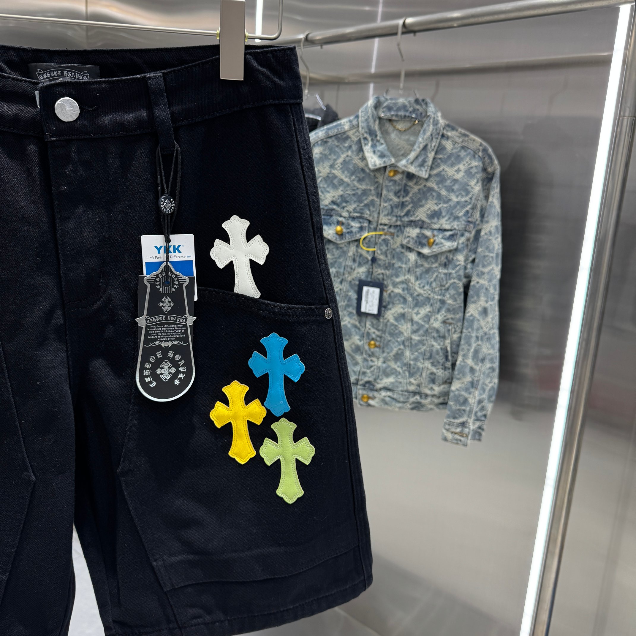 这款衣服是AAAAA 1:1 质量 (非常棒). 使用了和原版一模一样的材料. 商标部分也保持了和克罗心/Chrome Hearts一样. 图片拍摄是实物衣服拍摄, 您所收到的实物保证和我们图片一模一样.