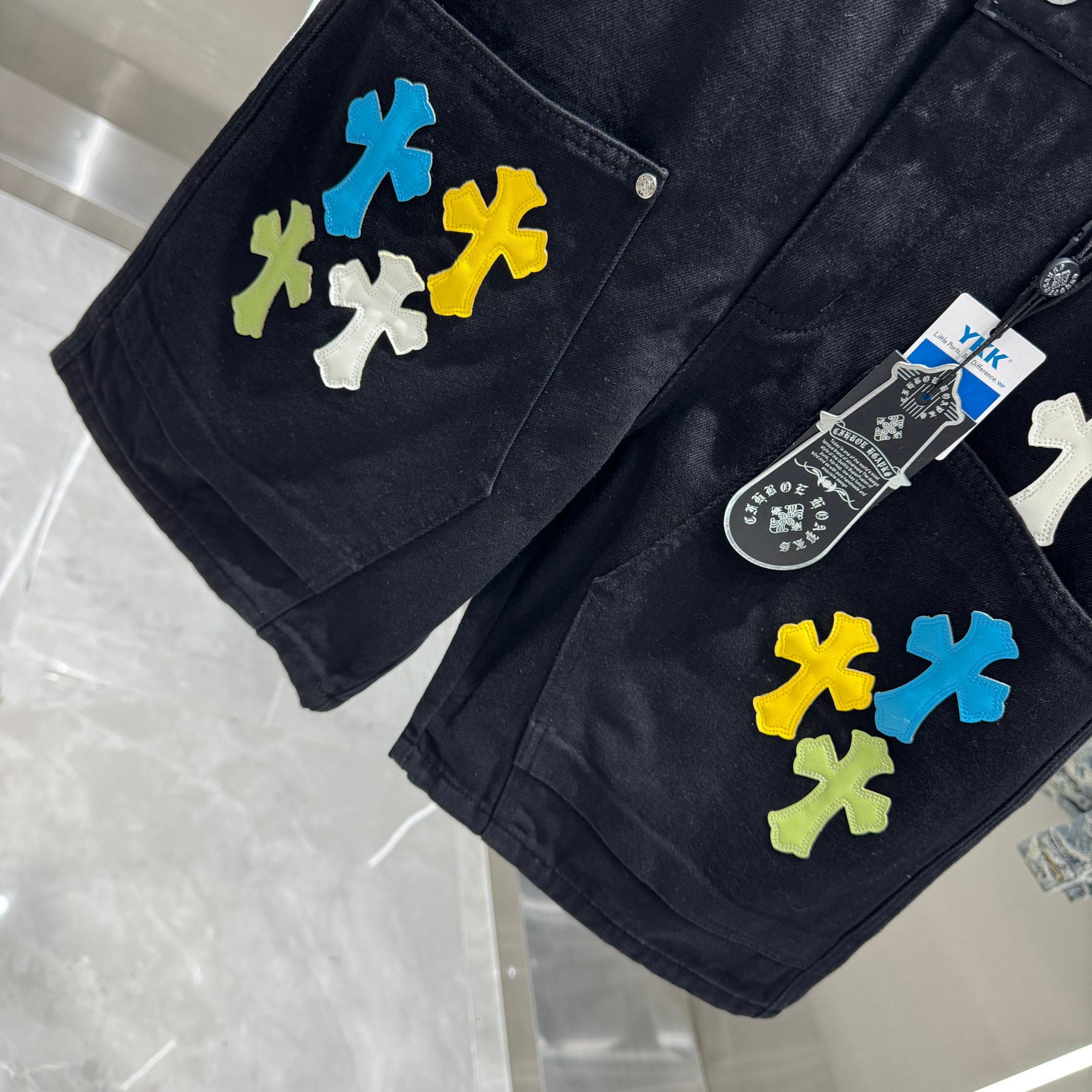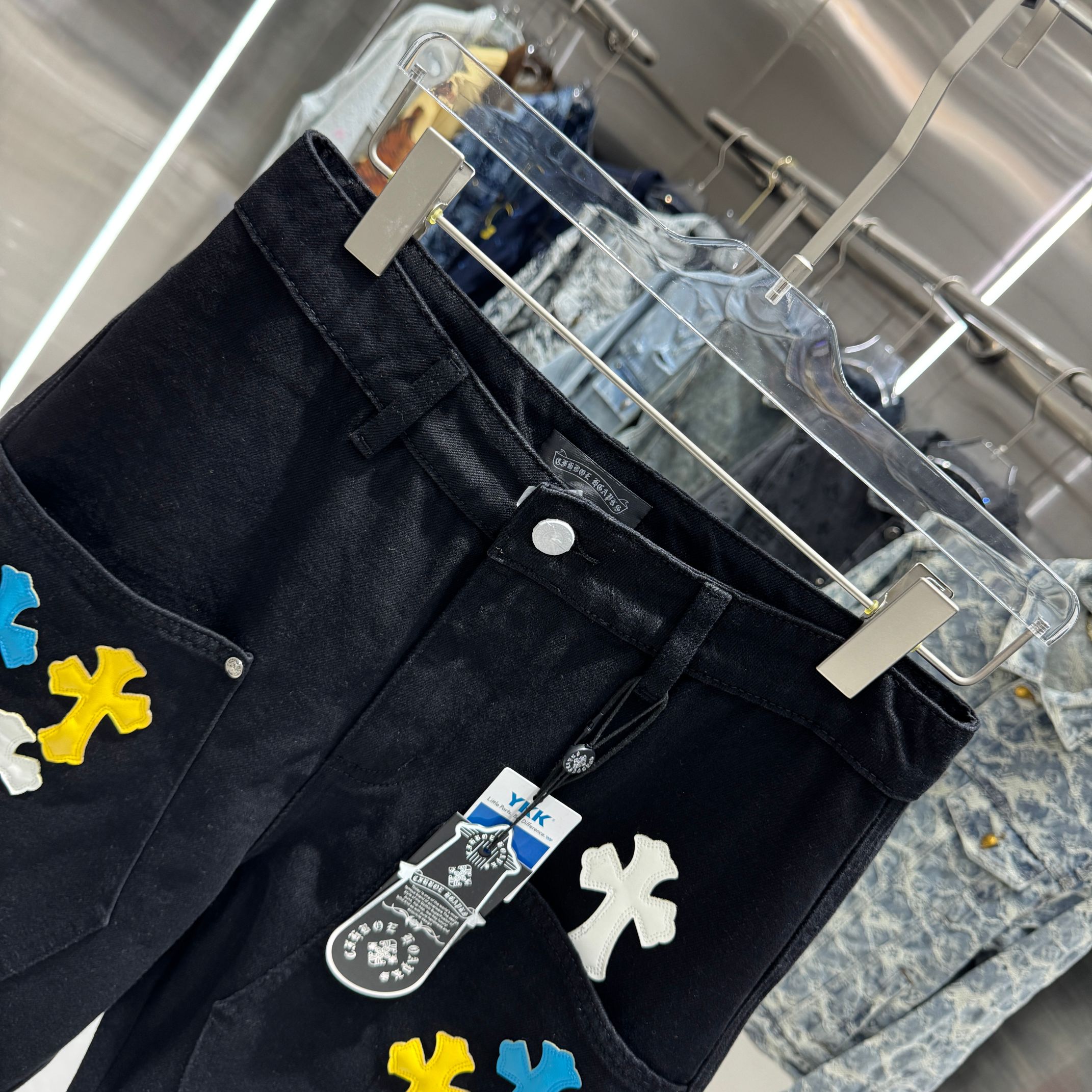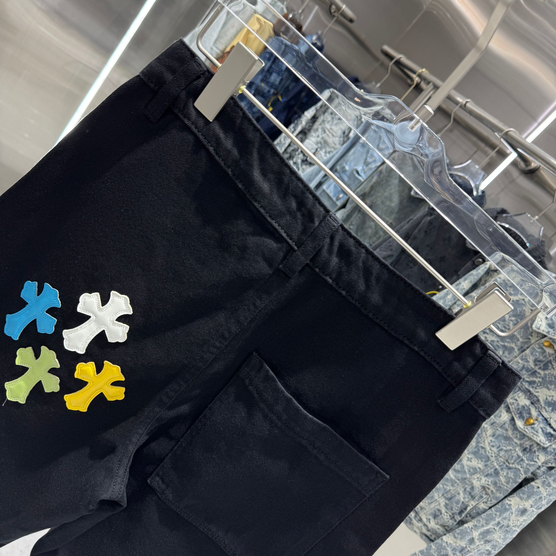 这款衣服是AAAAA 1:1 质量 (非常棒). 使用了和原版一模一样的材料. 商标部分也保持了和克罗心/Chrome Hearts一样. 图片拍摄是实物衣服拍摄, 您所收到的实物保证和我们图片一模一样.