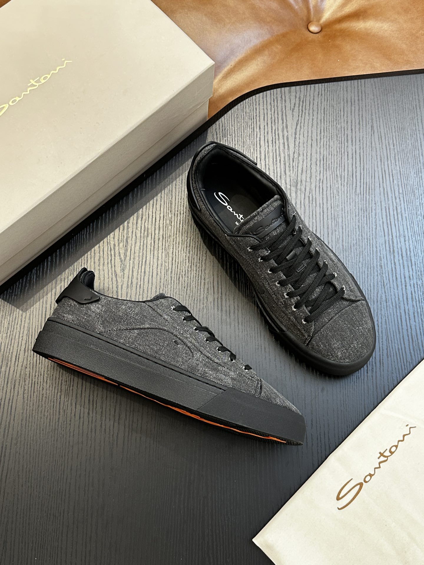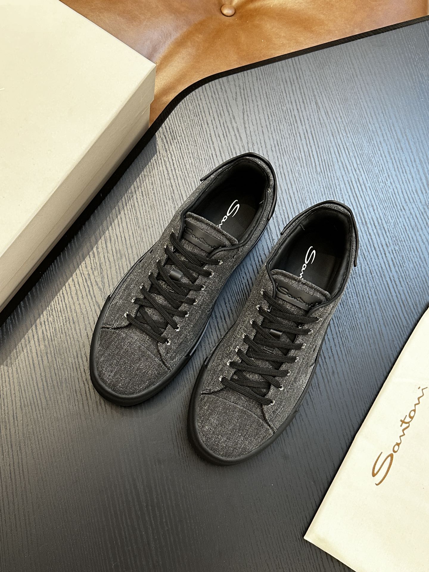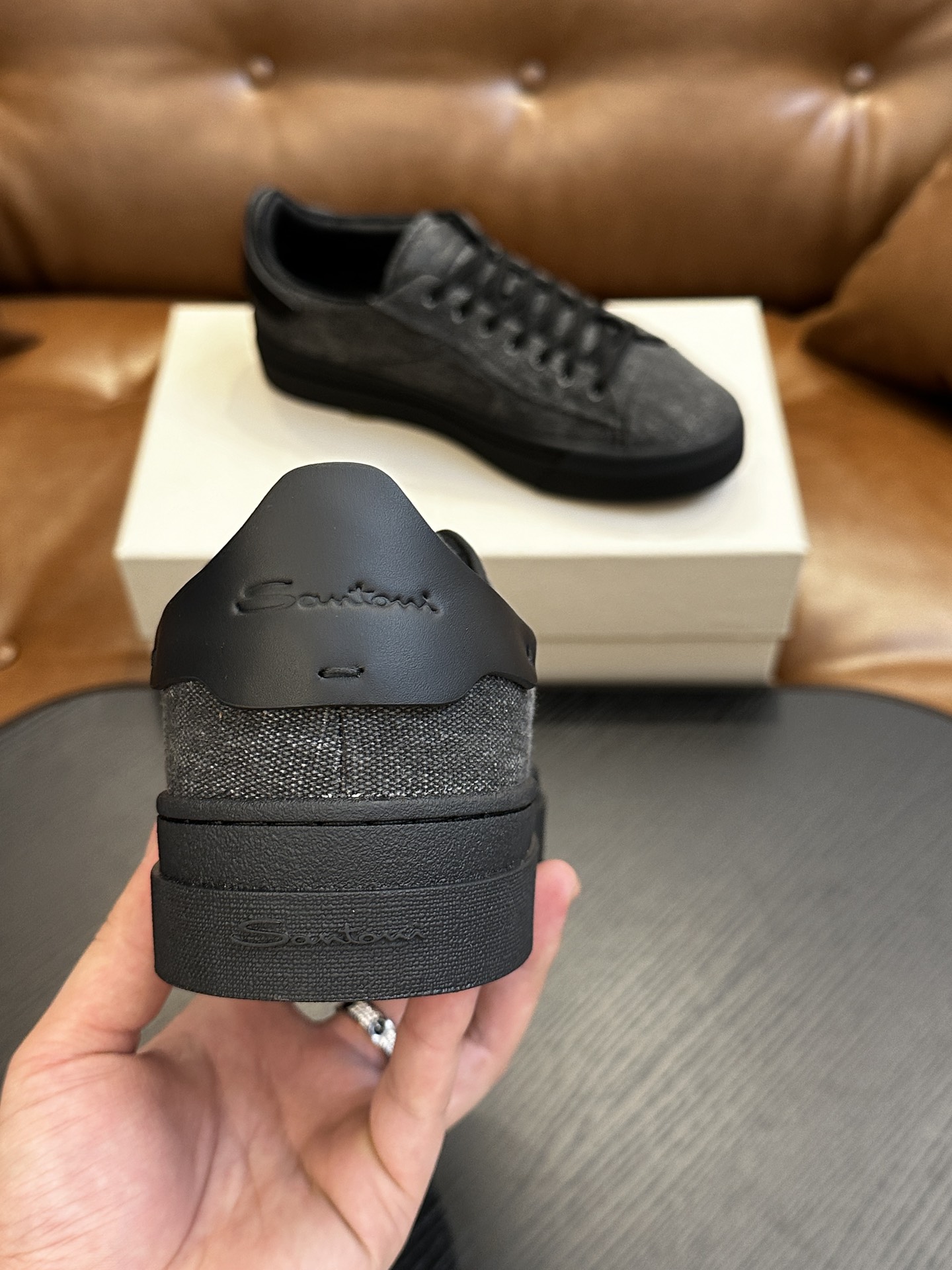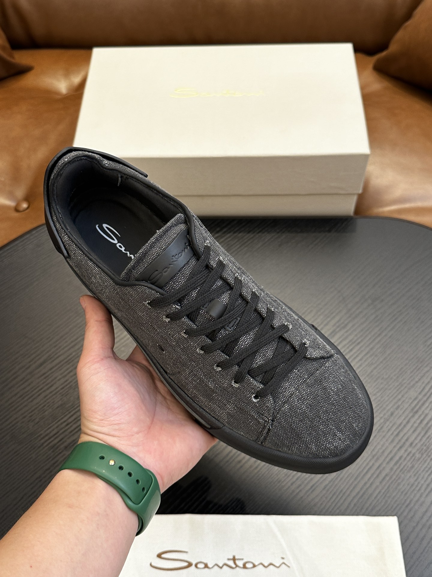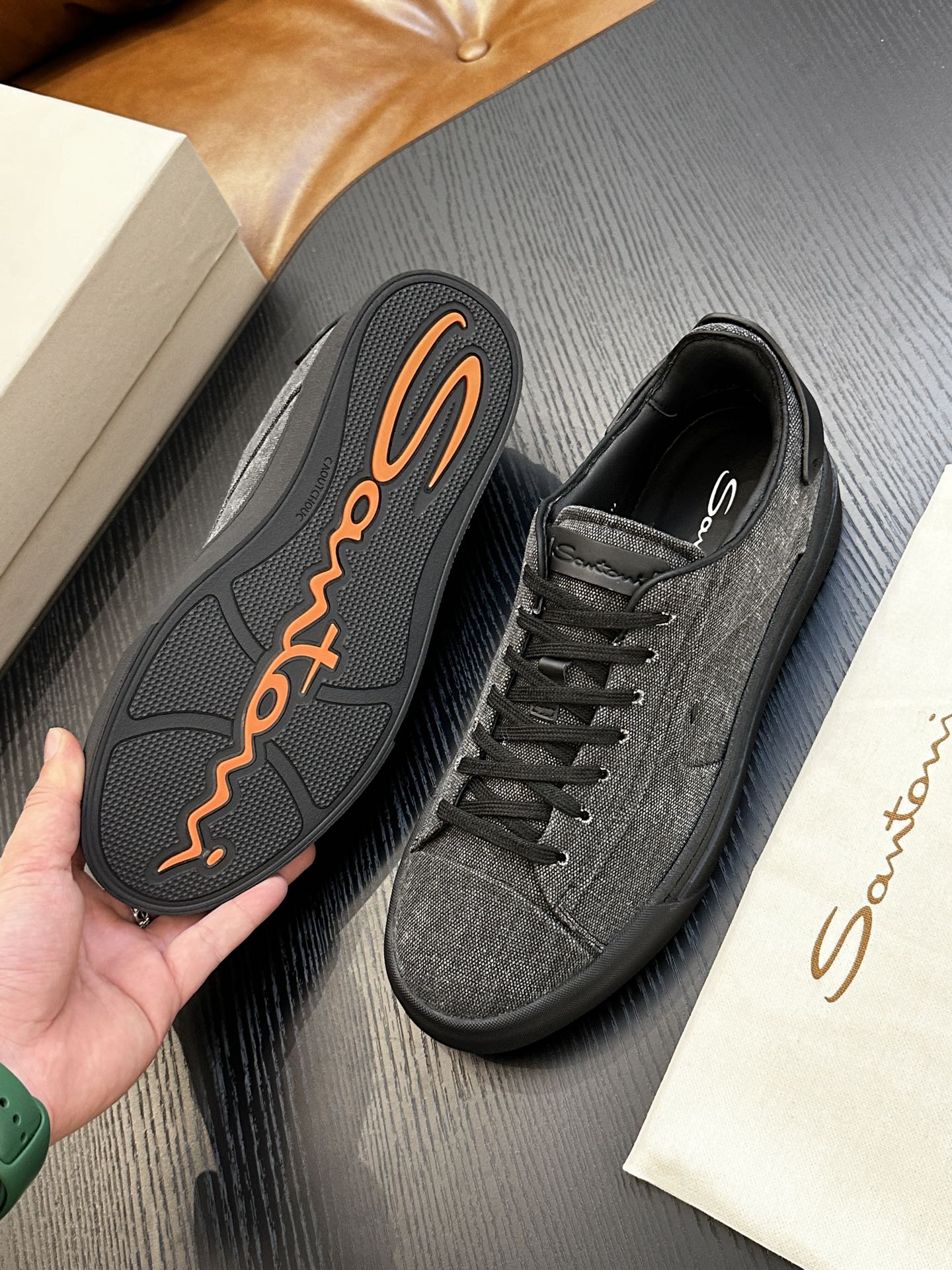这款鞋子是AAAAA 1:1 质量 (非常棒). 使用了和原版一模一样的材料. 商标部分也保持了和Santoni一样. 图片拍摄是实物鞋子拍摄, 您所收到的实物保证和我们图片一模一样.