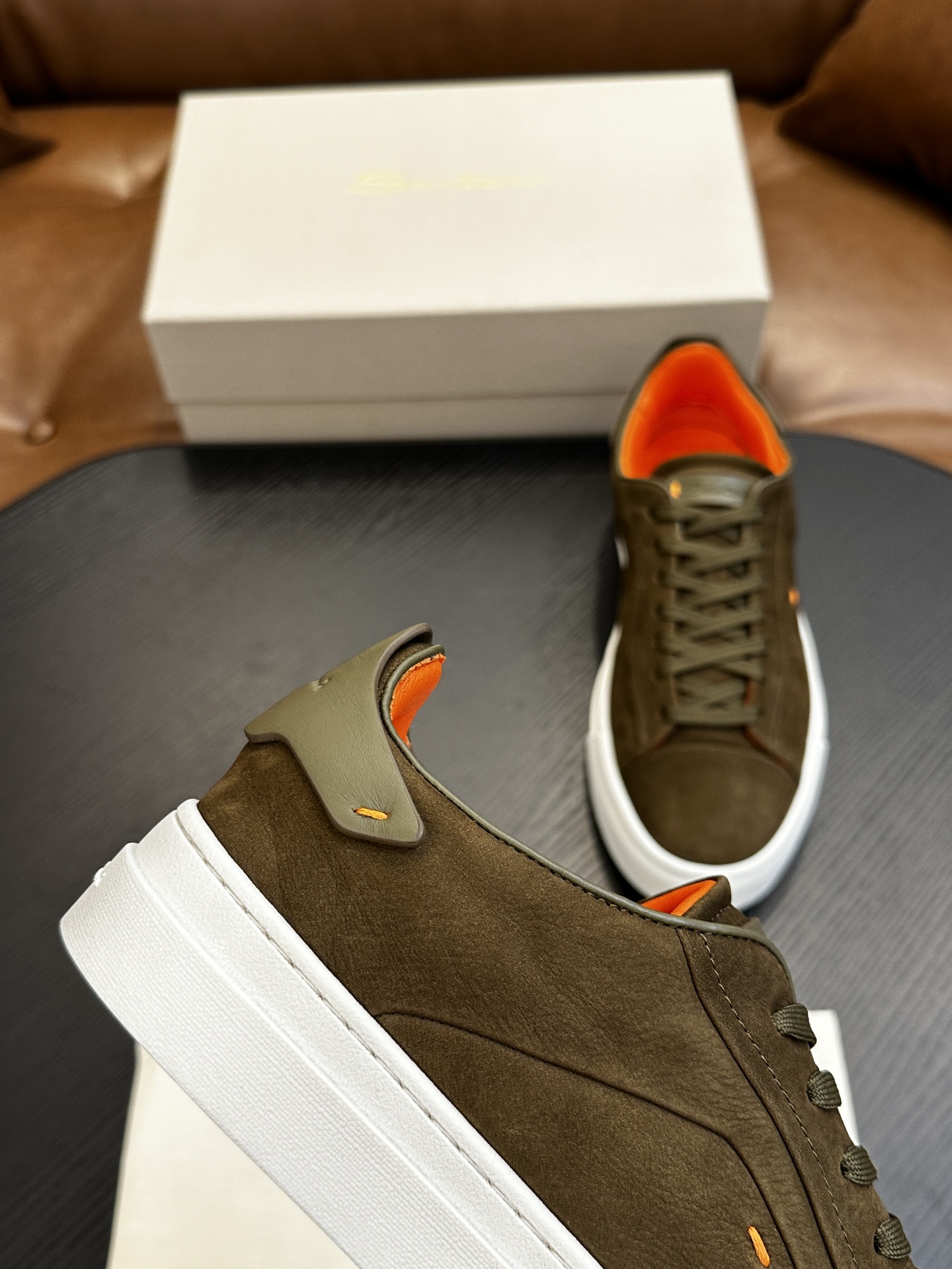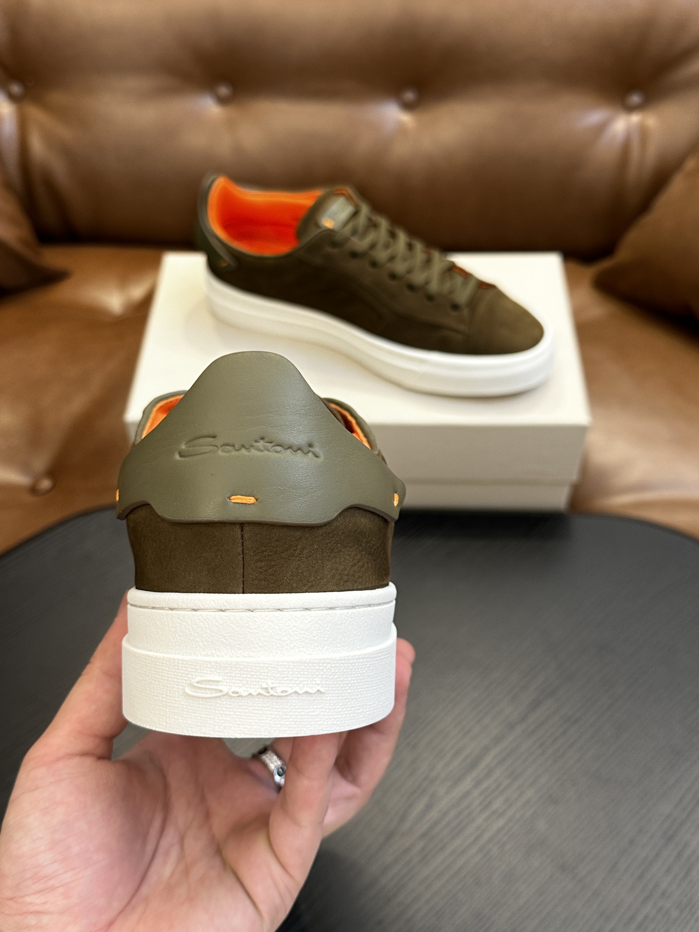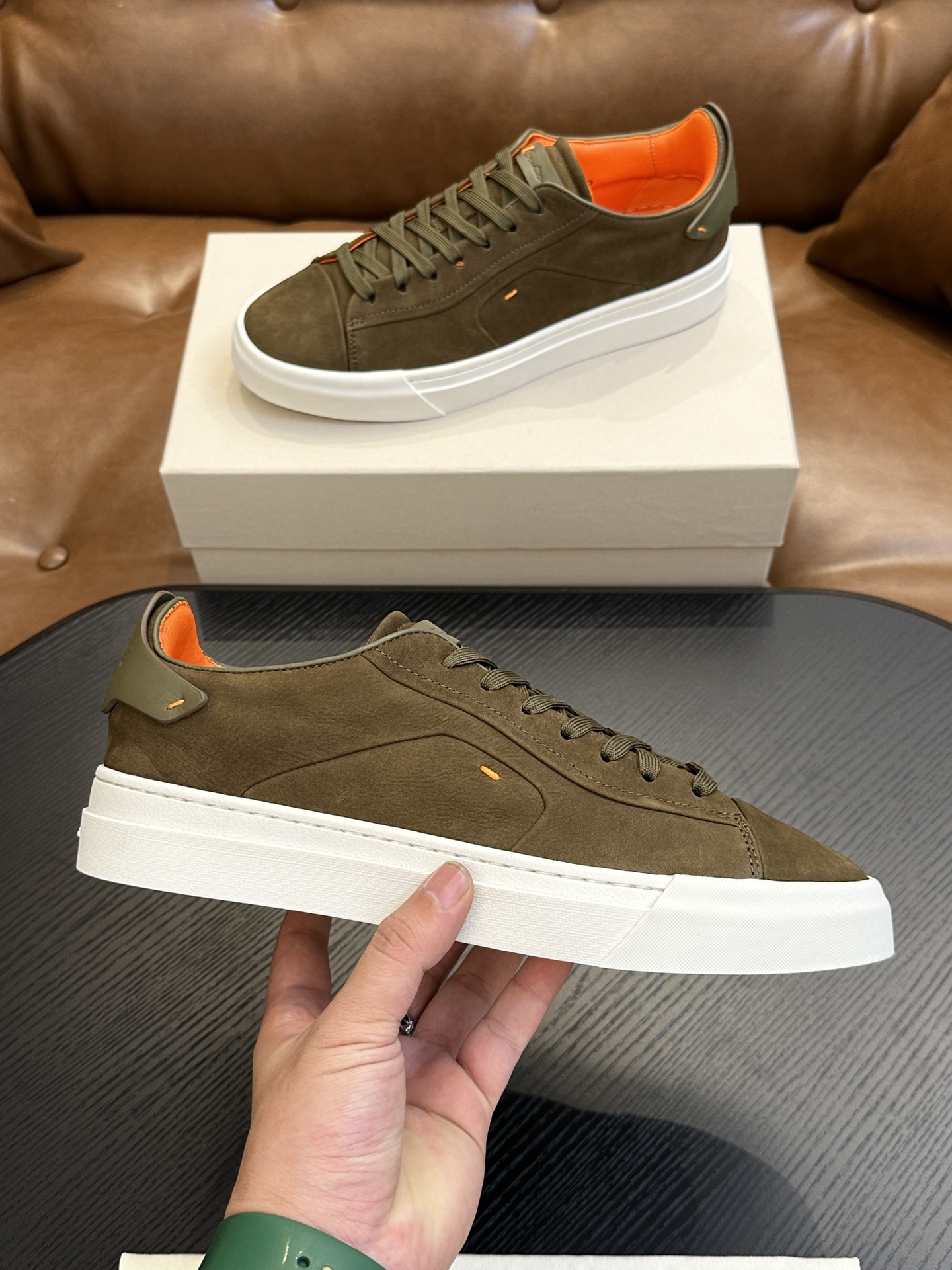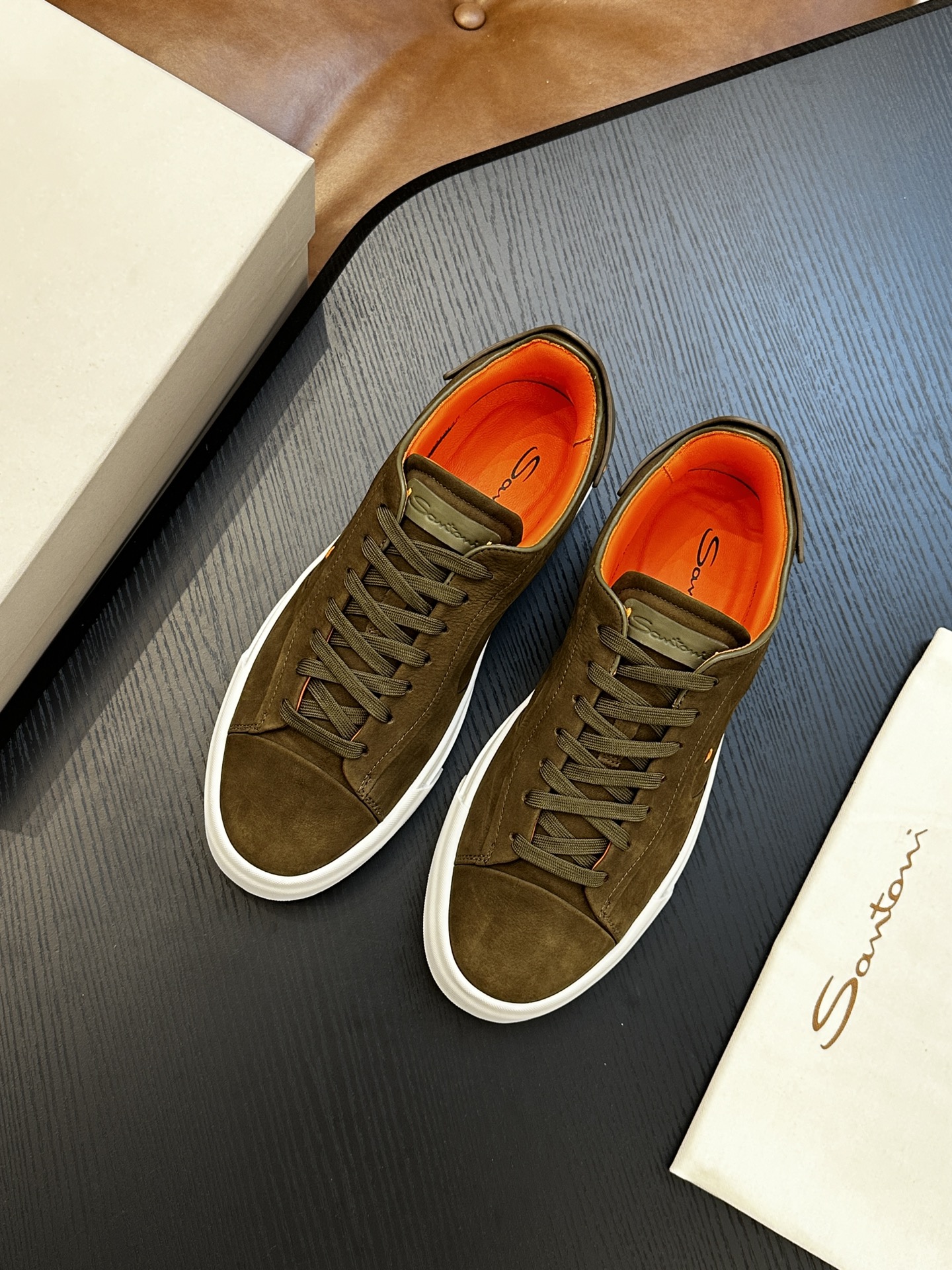 这款鞋子是AAAAA 1:1 质量 (非常棒). 使用了和原版一模一样的材料. 商标部分也保持了和Santoni一样. 图片拍摄是实物鞋子拍摄, 您所收到的实物保证和我们图片一模一样.