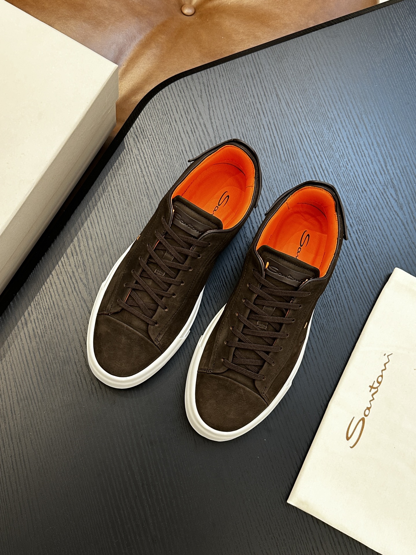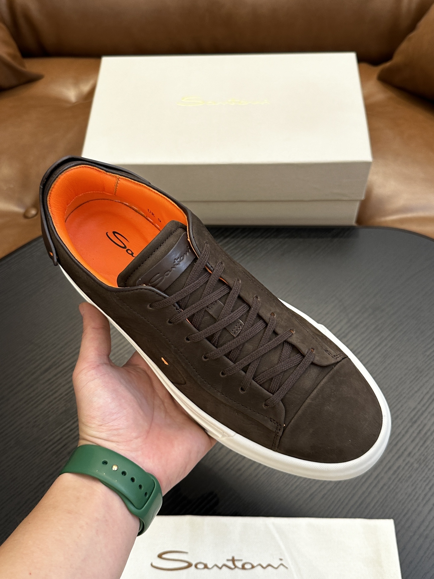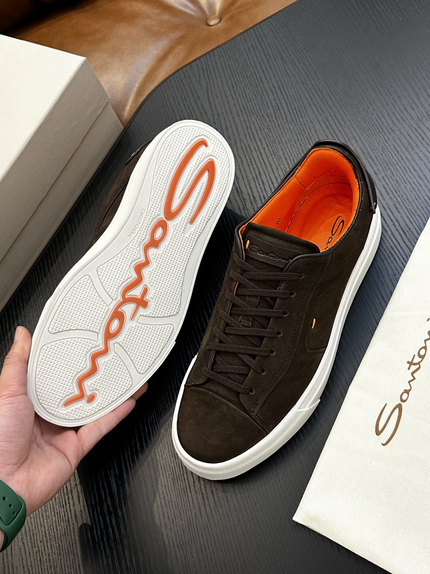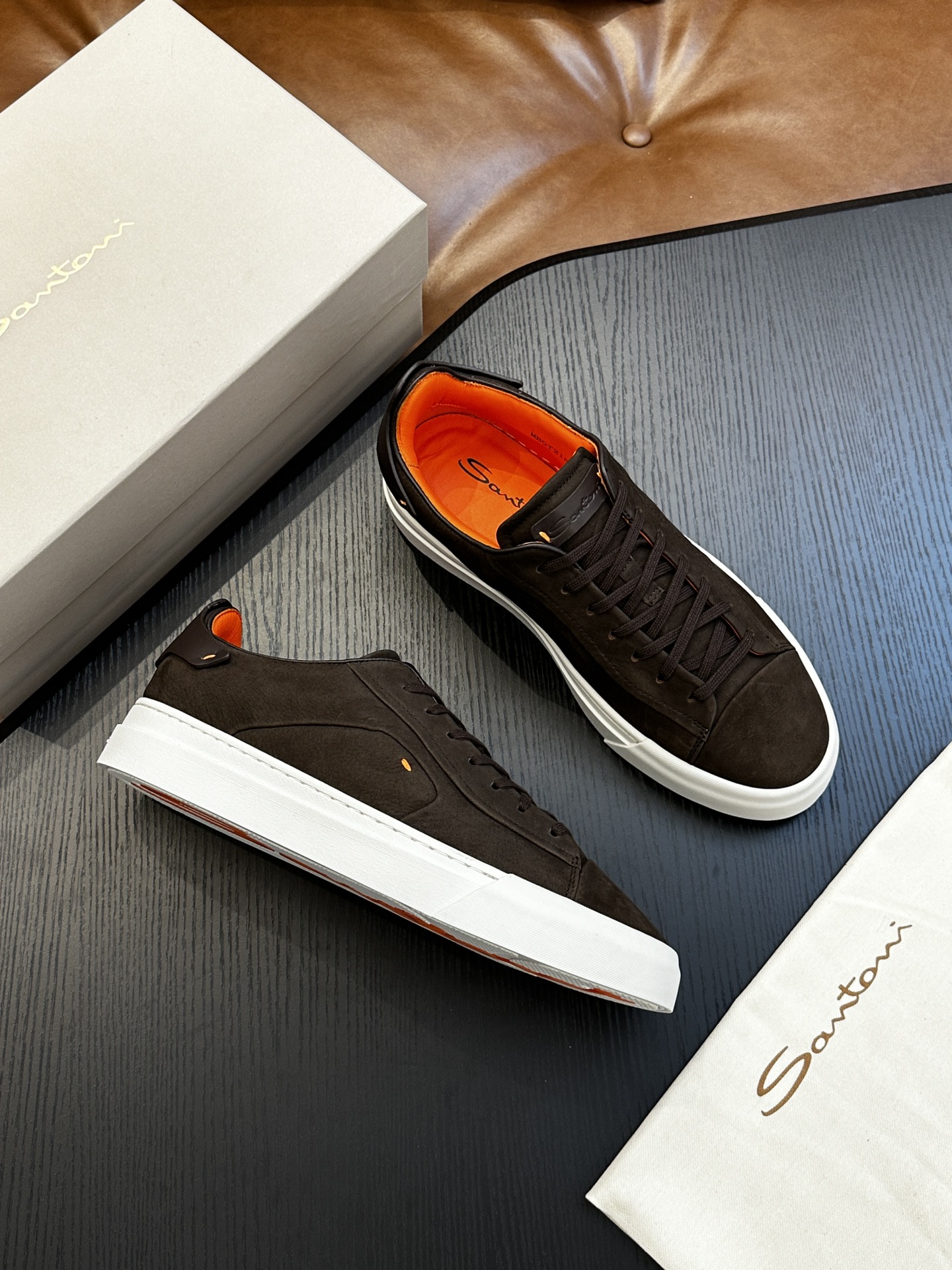 这款鞋子是AAAAA 1:1 质量 (非常棒). 使用了和原版一模一样的材料. 商标部分也保持了和Santoni一样. 图片拍摄是实物鞋子拍摄, 您所收到的实物保证和我们图片一模一样.