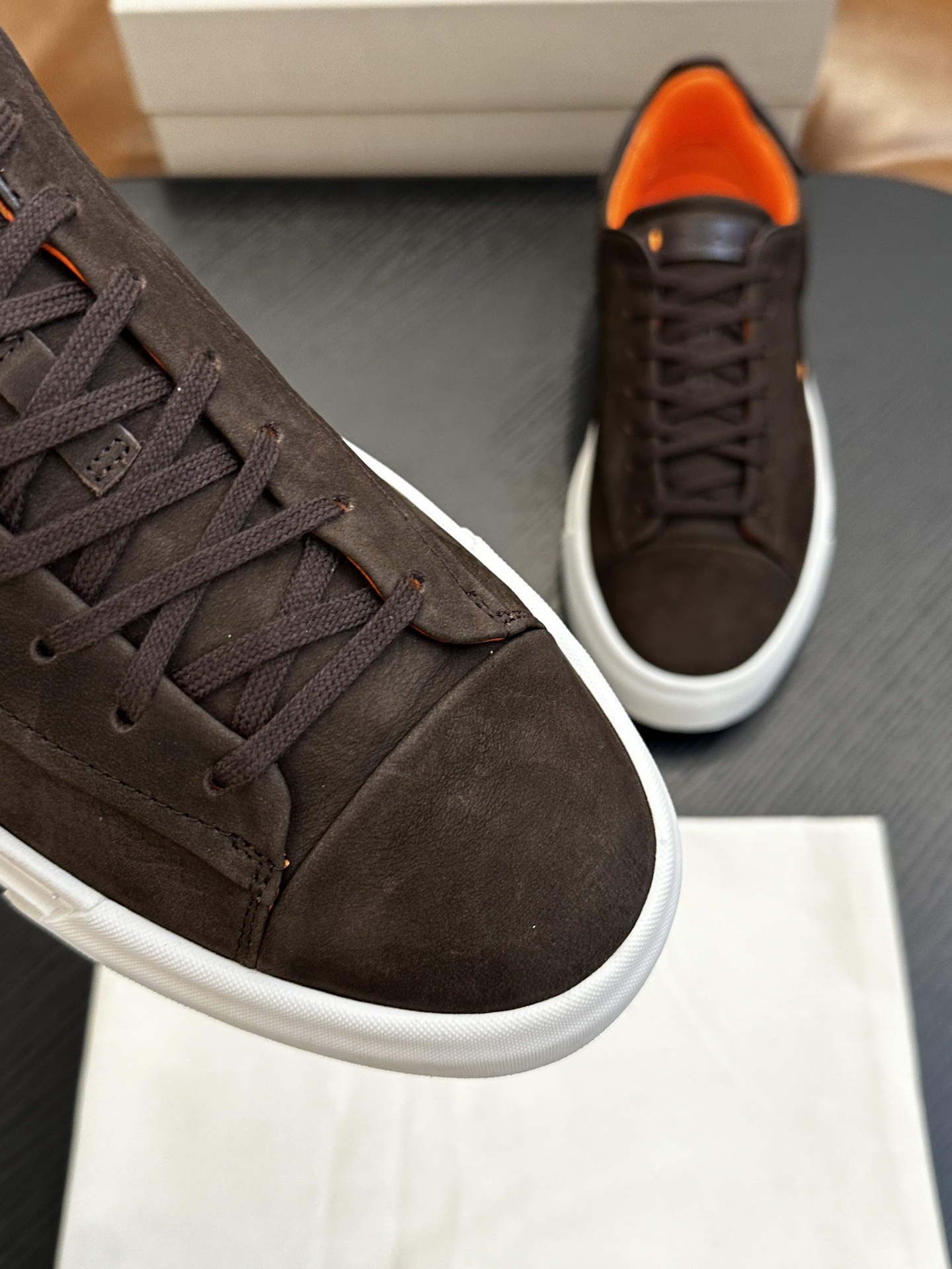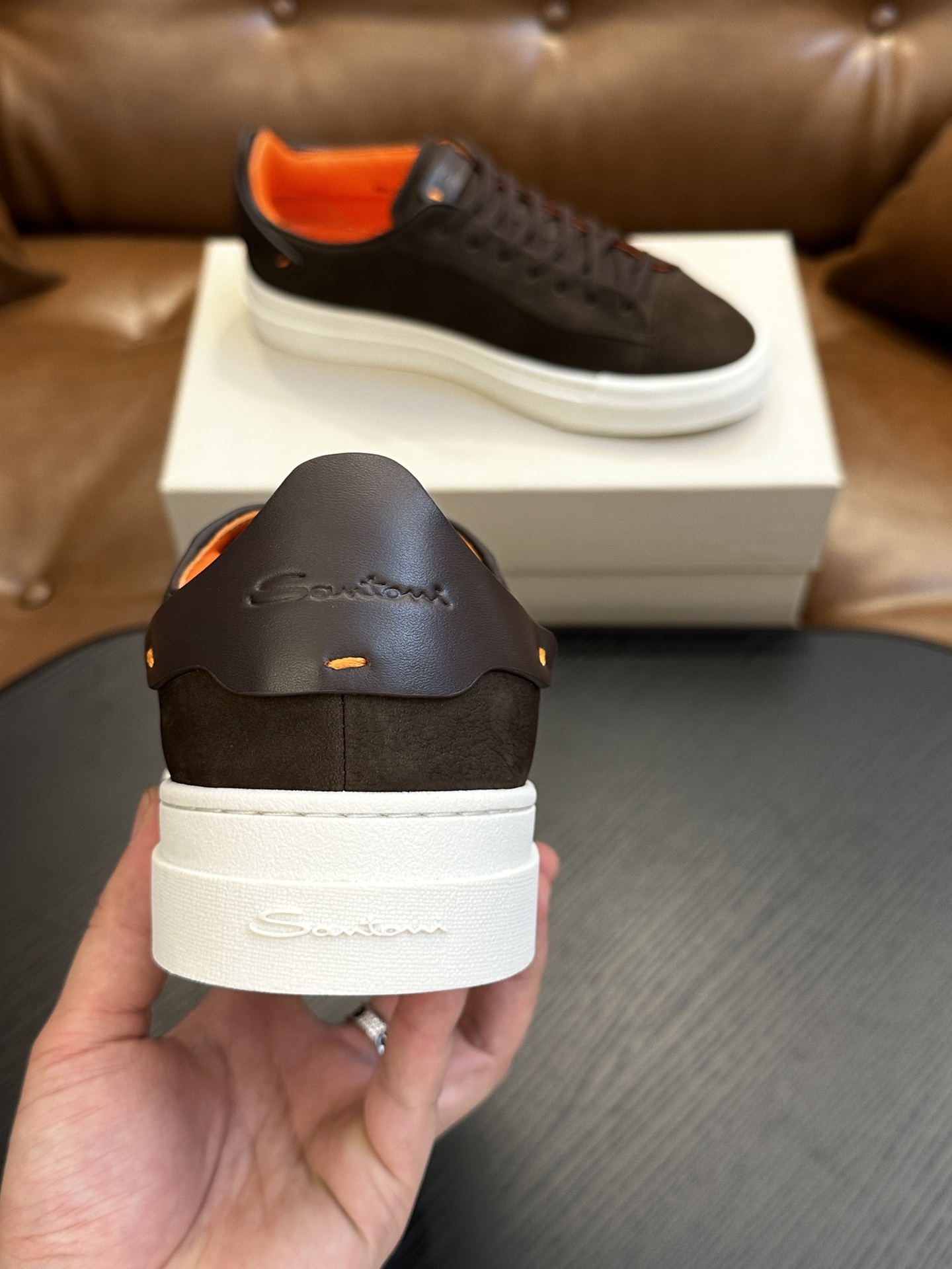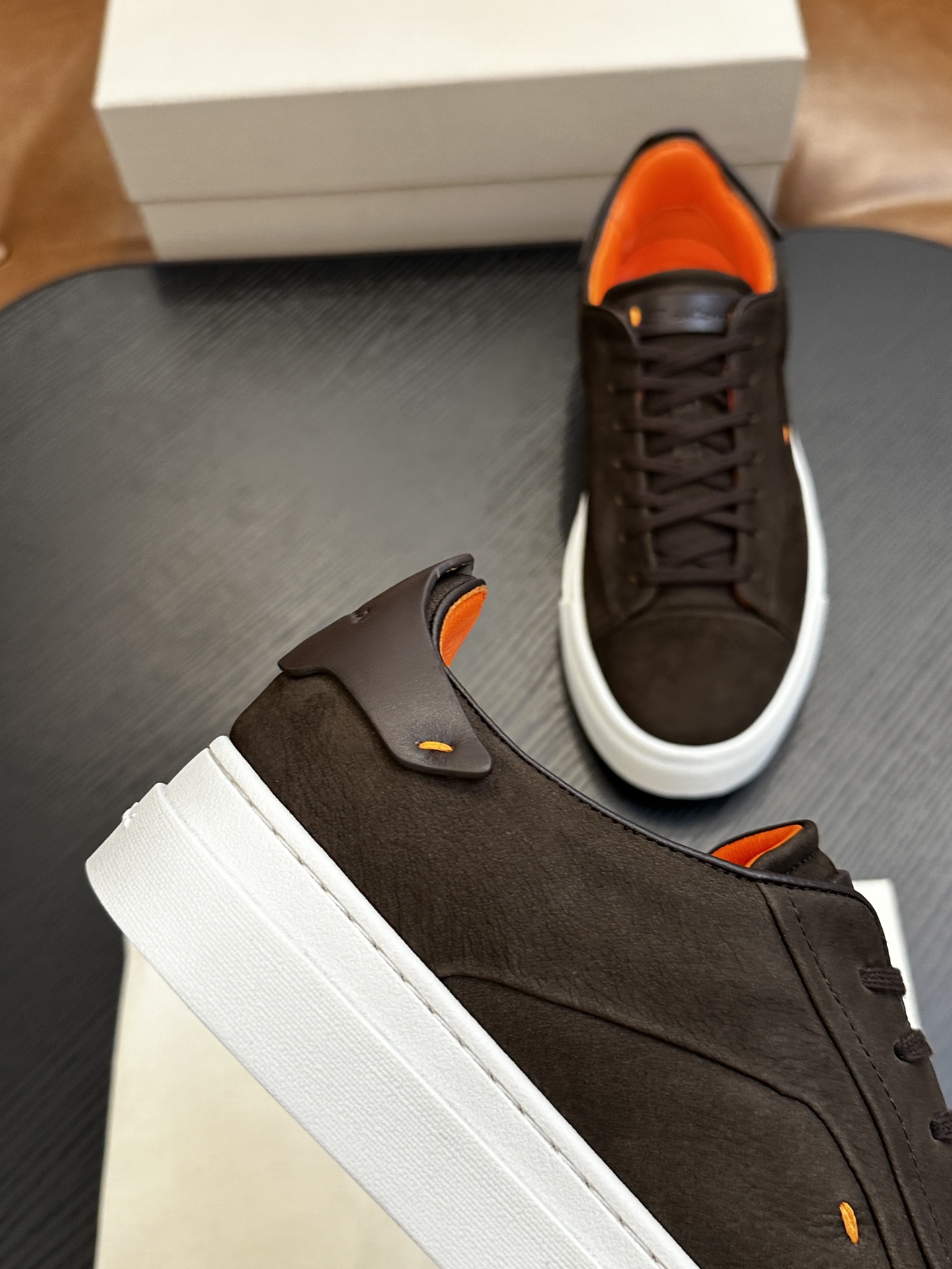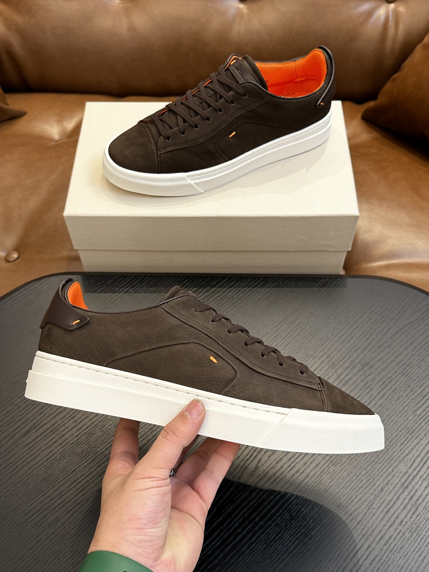 这款鞋子是AAAAA 1:1 质量 (非常棒). 使用了和原版一模一样的材料. 商标部分也保持了和Santoni一样. 图片拍摄是实物鞋子拍摄, 您所收到的实物保证和我们图片一模一样.