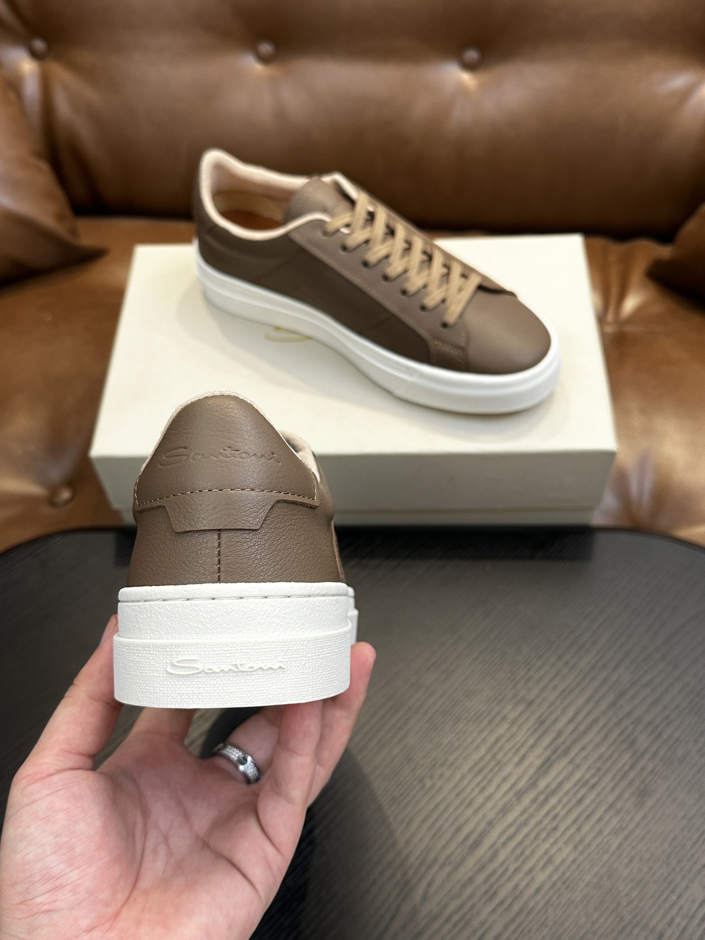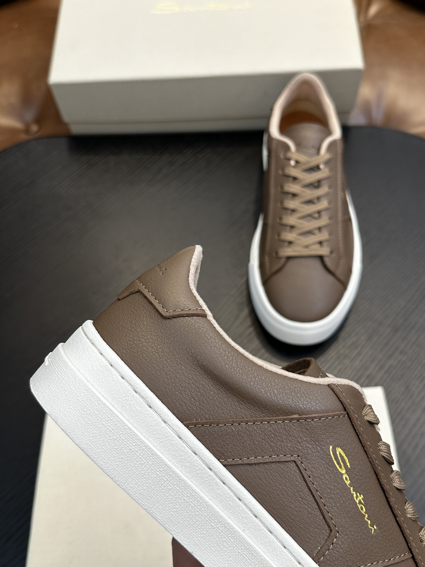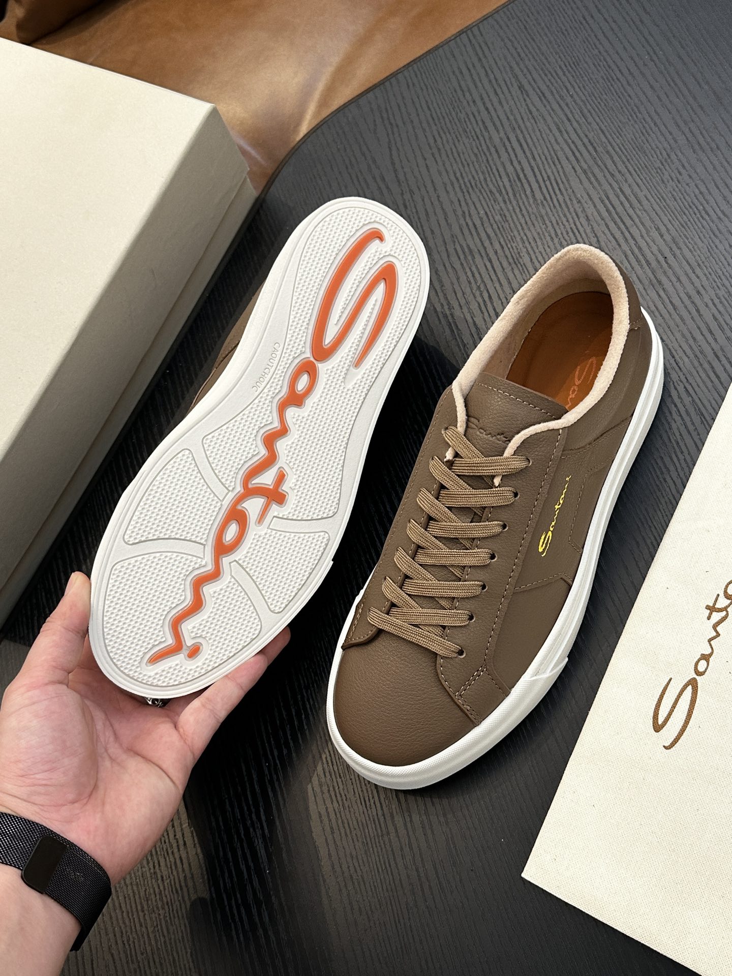 这款鞋子是AAAAA 1:1 质量 (非常棒). 使用了和原版一模一样的材料. 商标部分也保持了和Santoni一样. 图片拍摄是实物鞋子拍摄, 您所收到的实物保证和我们图片一模一样.