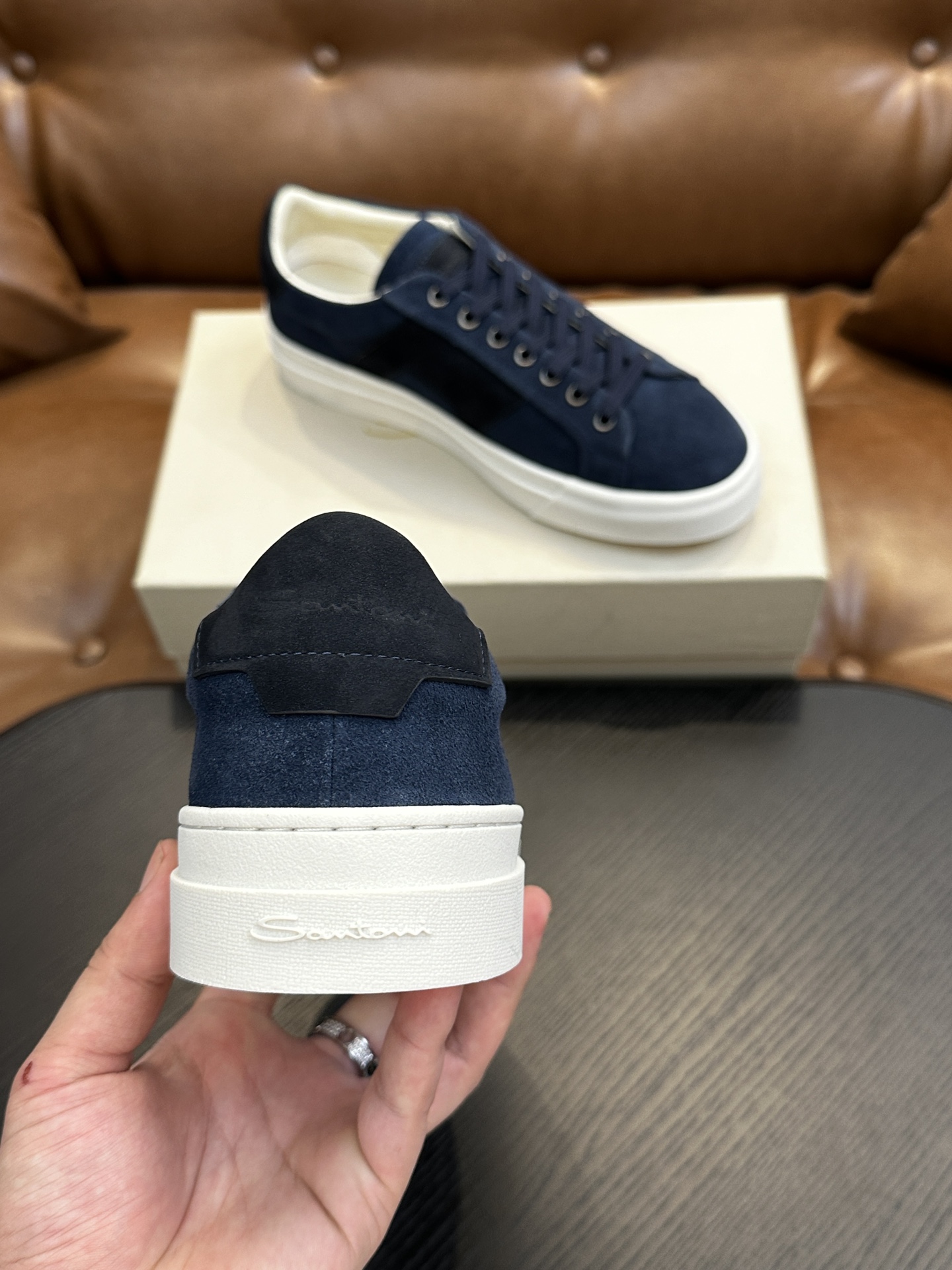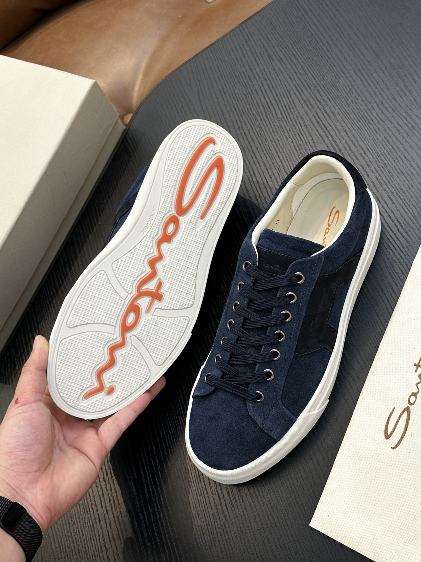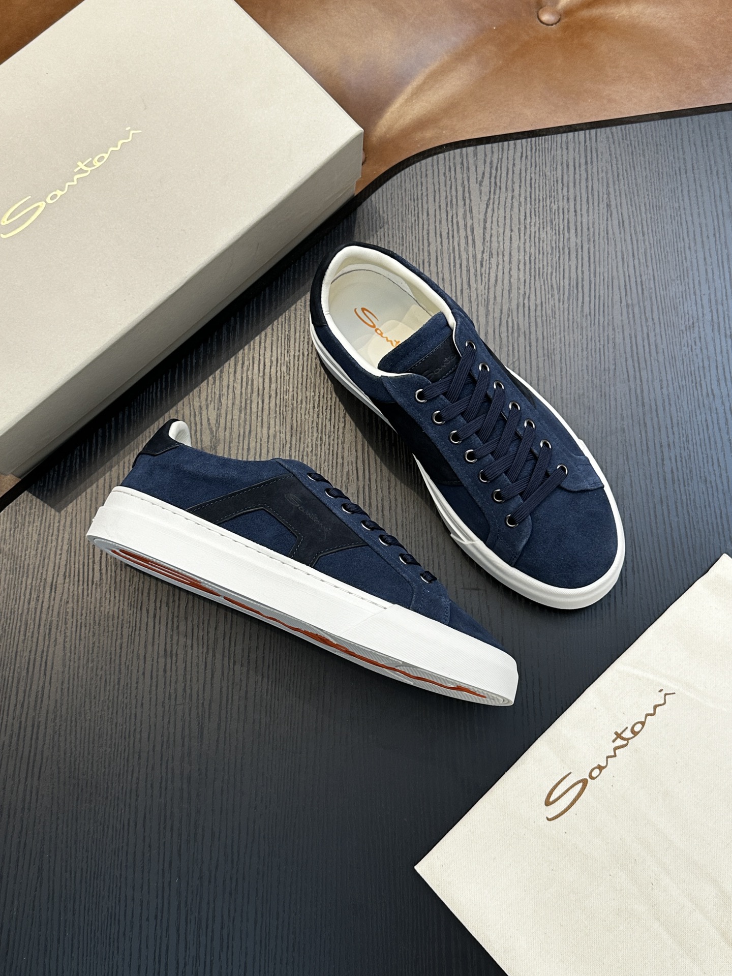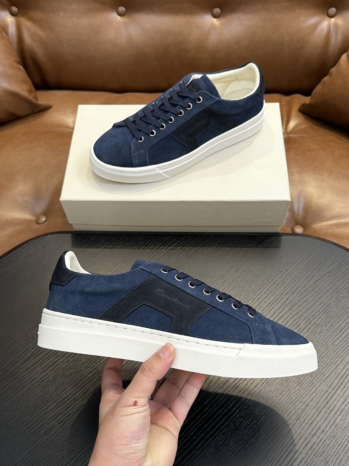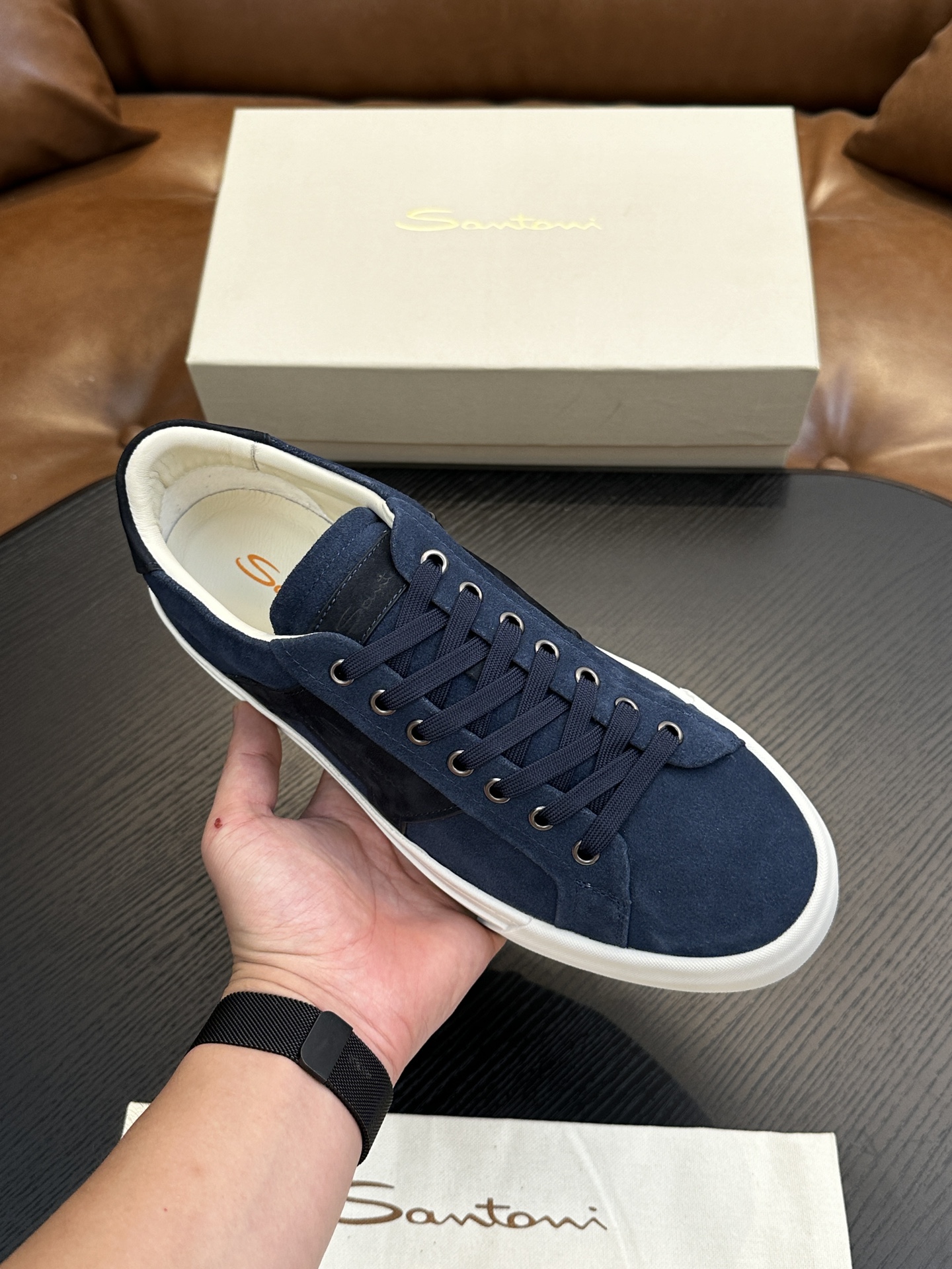 这款鞋子是AAAAA 1:1 质量 (非常棒). 使用了和原版一模一样的材料. 商标部分也保持了和Santoni一样. 图片拍摄是实物鞋子拍摄, 您所收到的实物保证和我们图片一模一样.