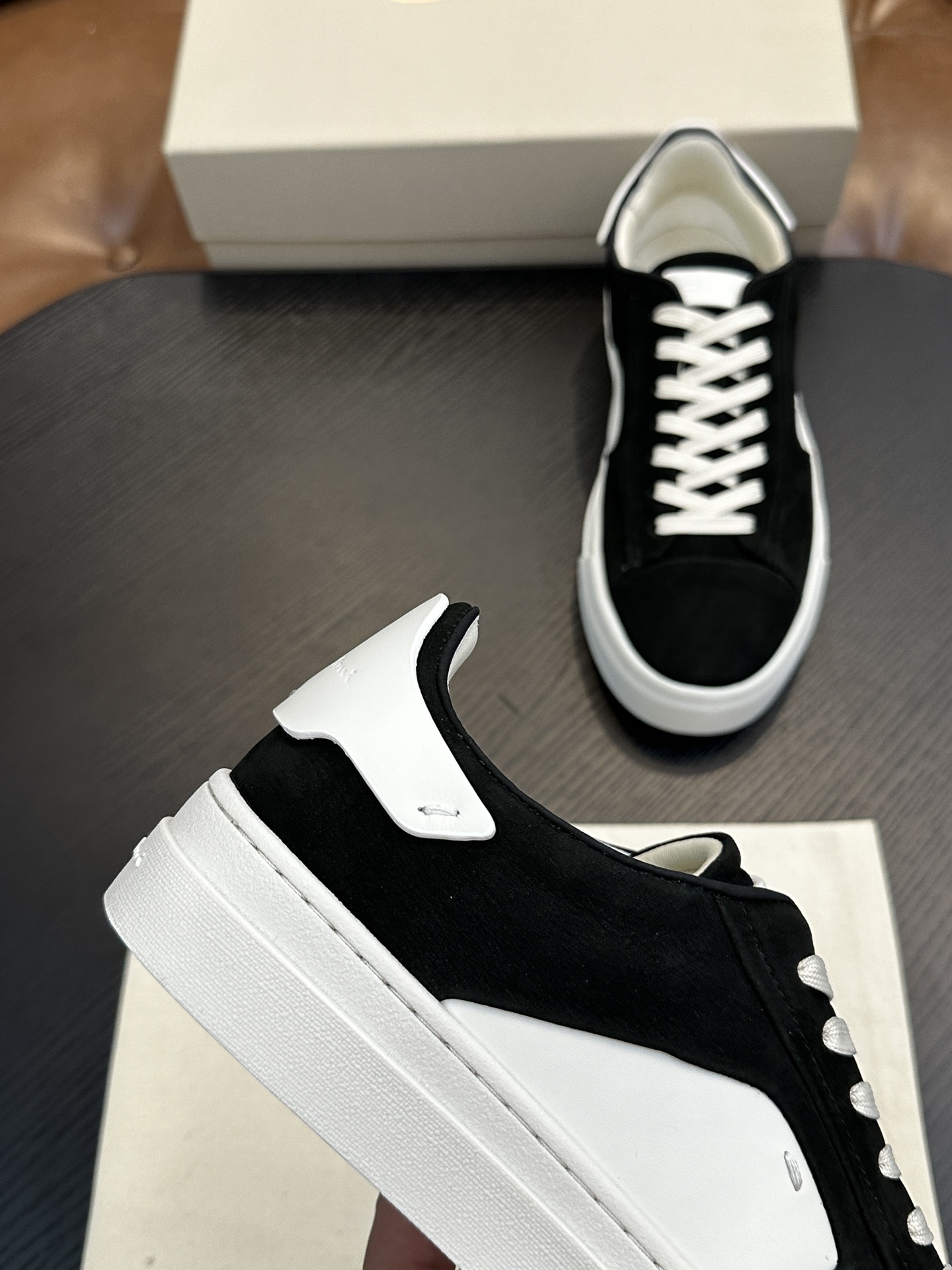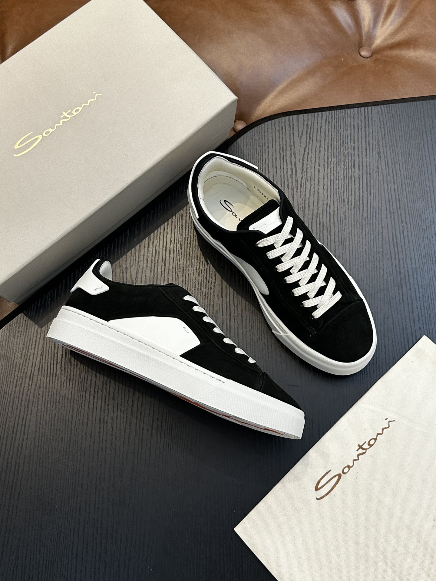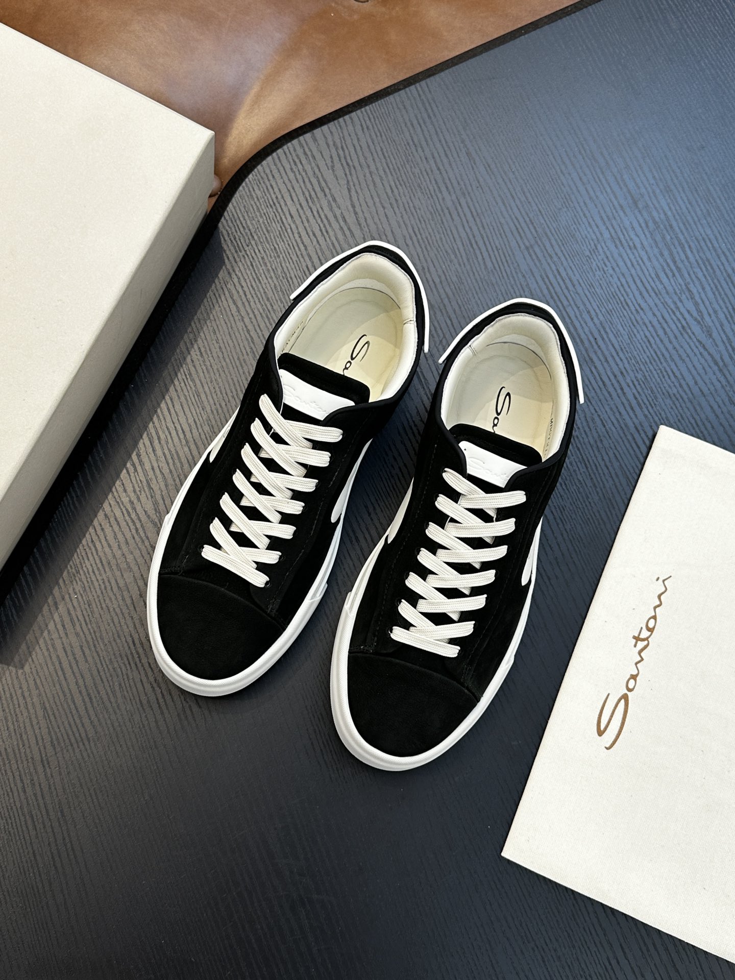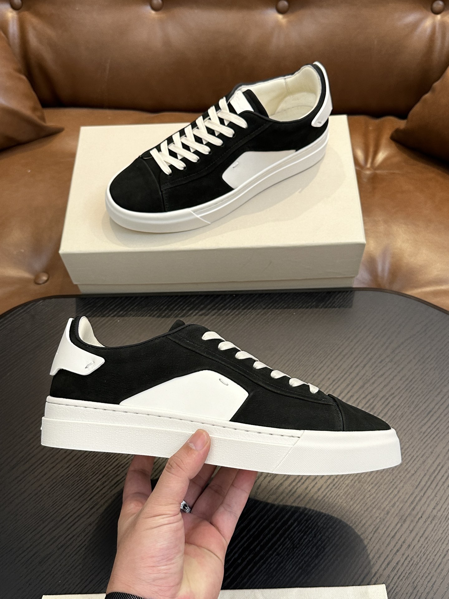 这款鞋子是AAAAA 1:1 质量 (非常棒). 使用了和原版一模一样的材料. 商标部分也保持了和Santoni一样. 图片拍摄是实物鞋子拍摄, 您所收到的实物保证和我们图片一模一样.
