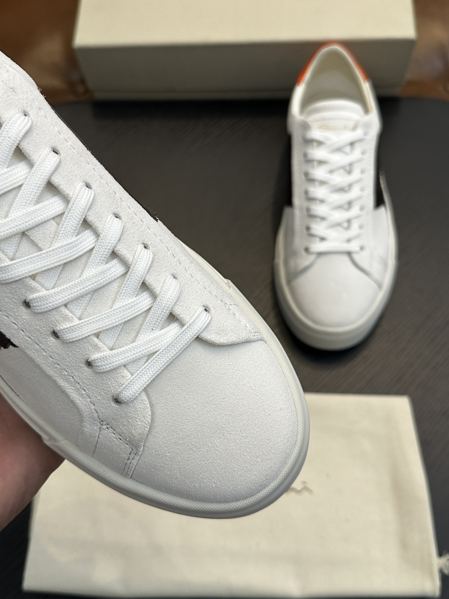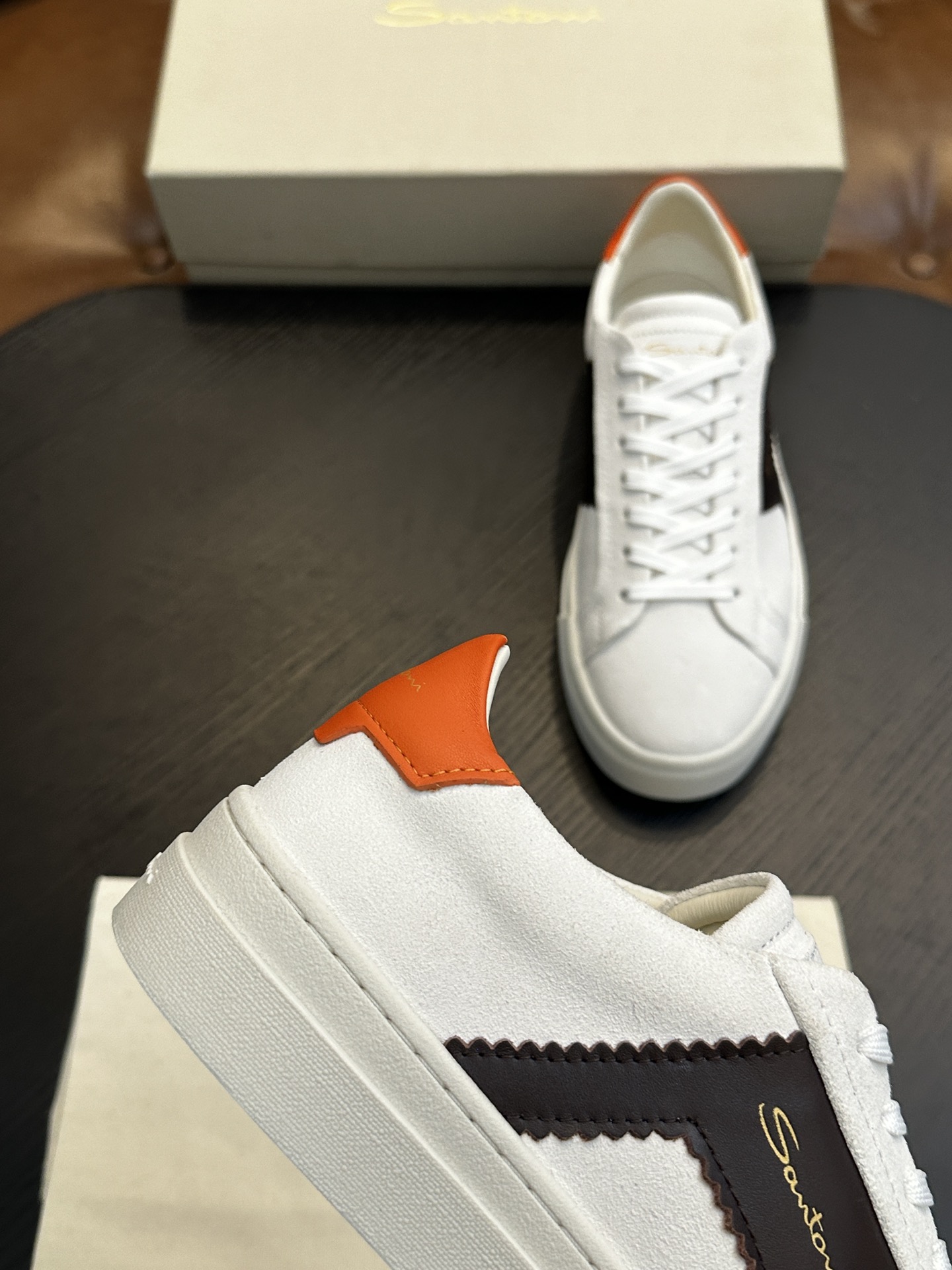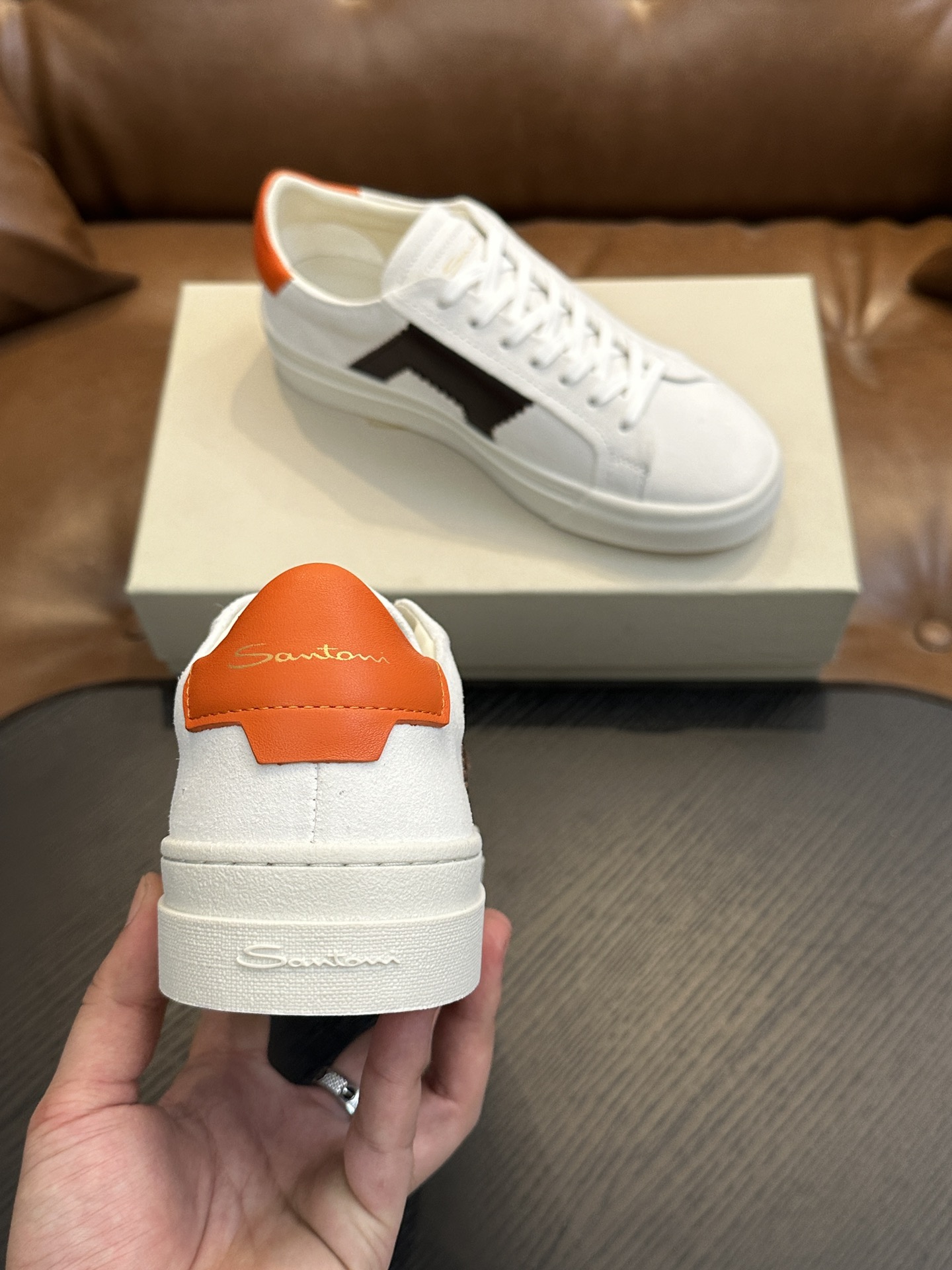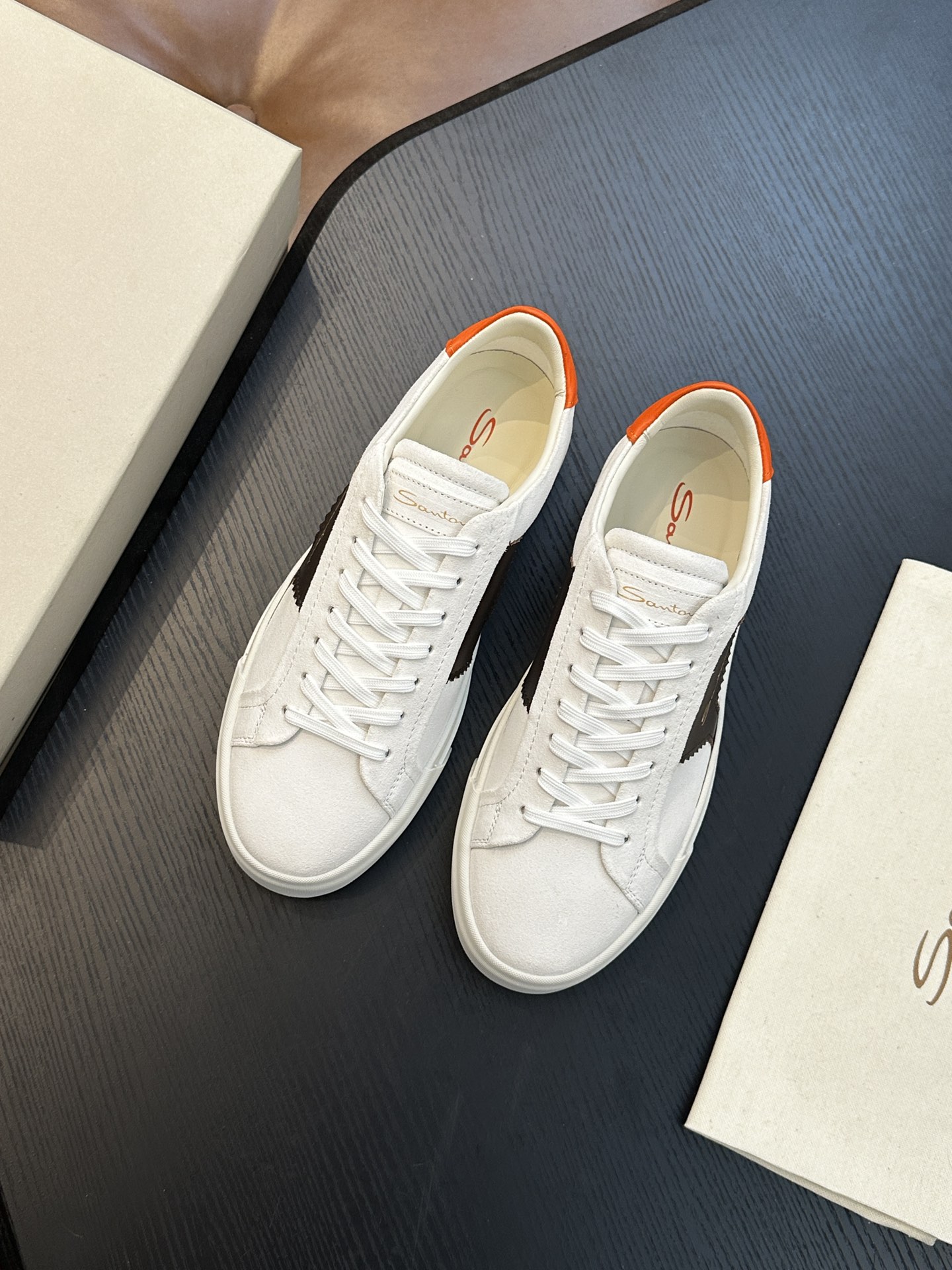这款鞋子是AAAAA 1:1 质量 (非常棒). 使用了和原版一模一样的材料. 商标部分也保持了和Santoni一样. 图片拍摄是实物鞋子拍摄, 您所收到的实物保证和我们图片一模一样.