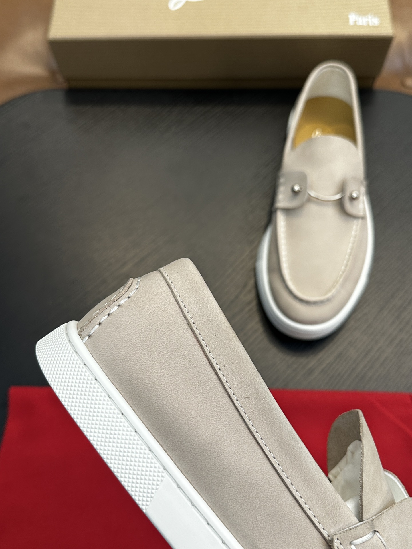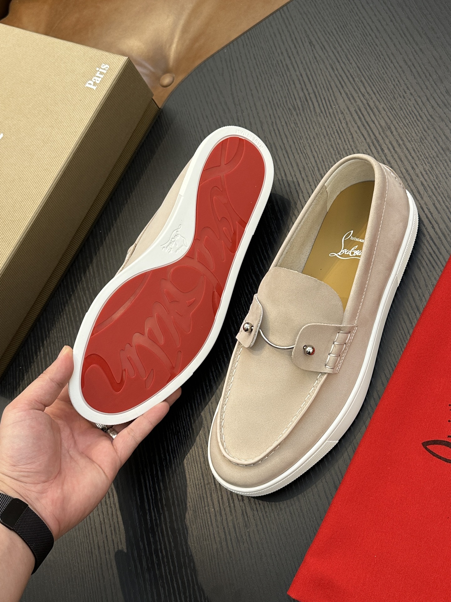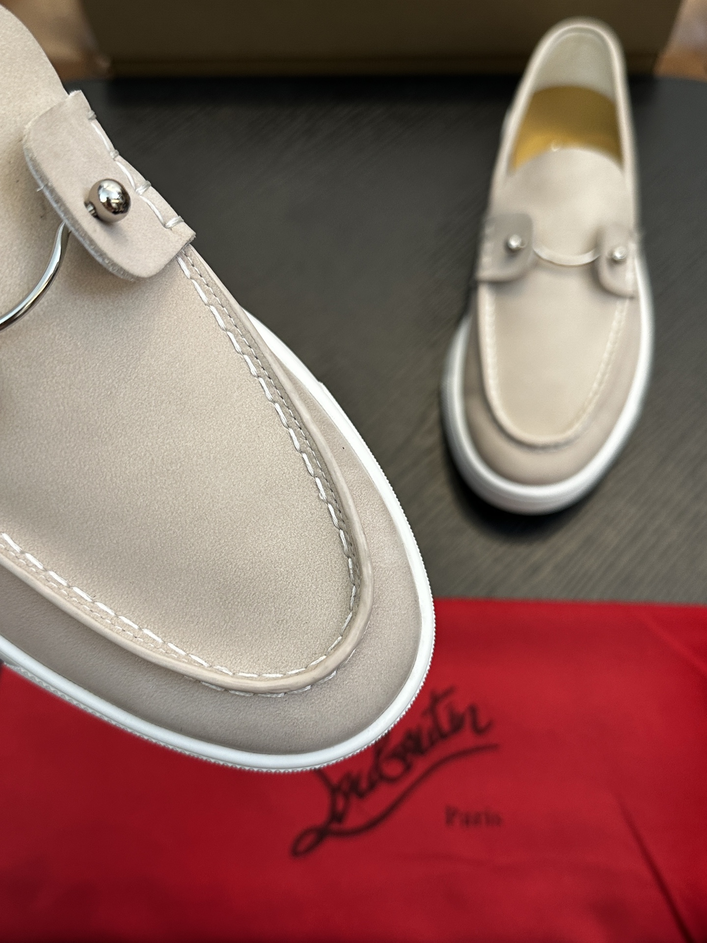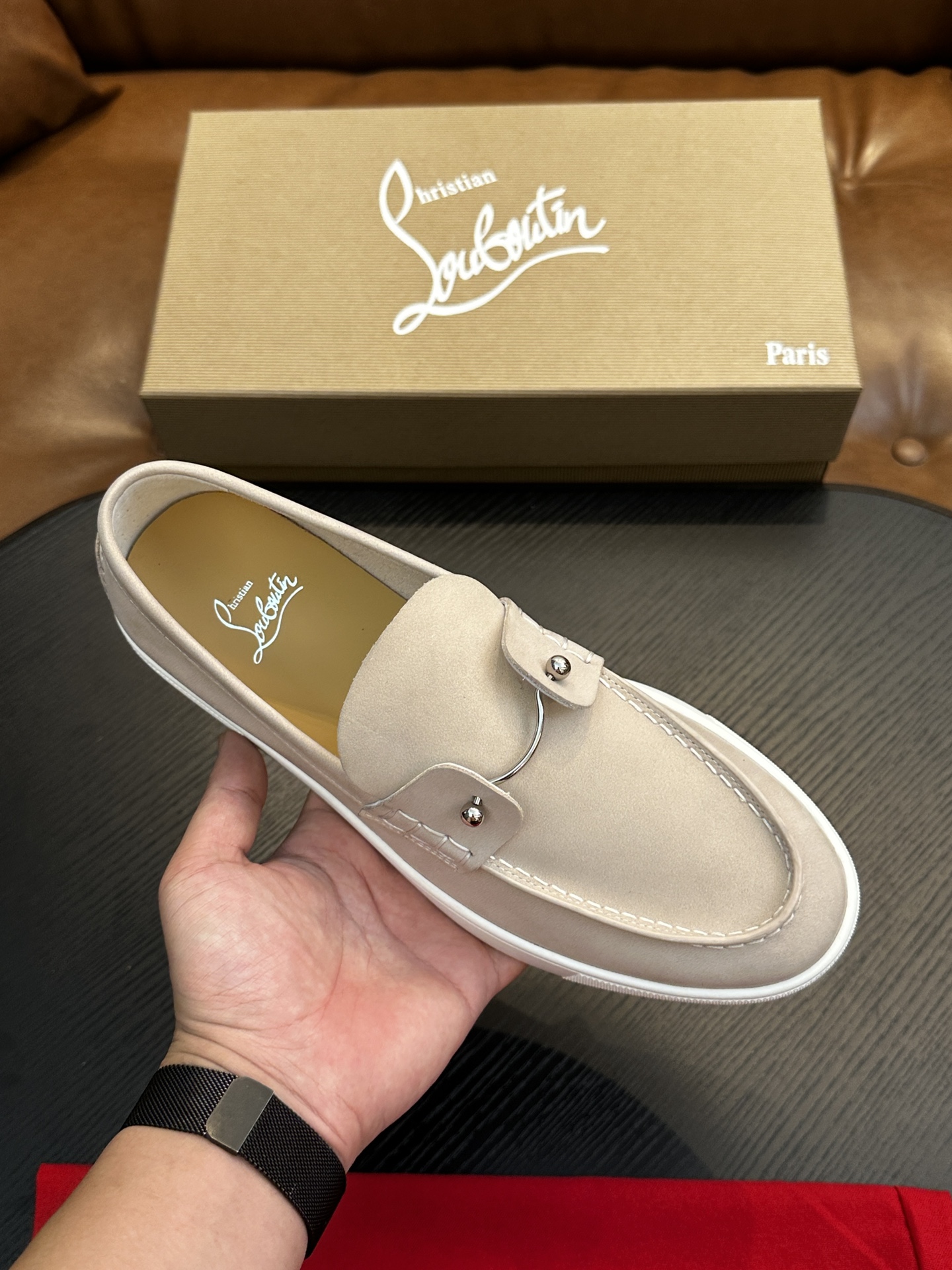 这款鞋子是AAAAA 1:1 质量 (非常棒). 使用了和原版一模一样的材料. 商标部分也保持了和克里斯提·鲁布托/Christian Louboutin一样. 图片拍摄是实物鞋子拍摄, 您所收到的实物保证和我们图片一模一样.