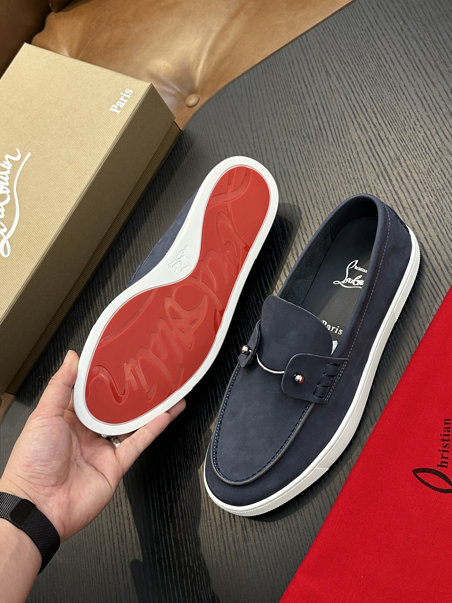 这款鞋子是AAAAA 1:1 质量 (非常棒). 使用了和原版一模一样的材料. 商标部分也保持了和克里斯提·鲁布托/Christian Louboutin一样. 图片拍摄是实物鞋子拍摄, 您所收到的实物保证和我们图片一模一样.