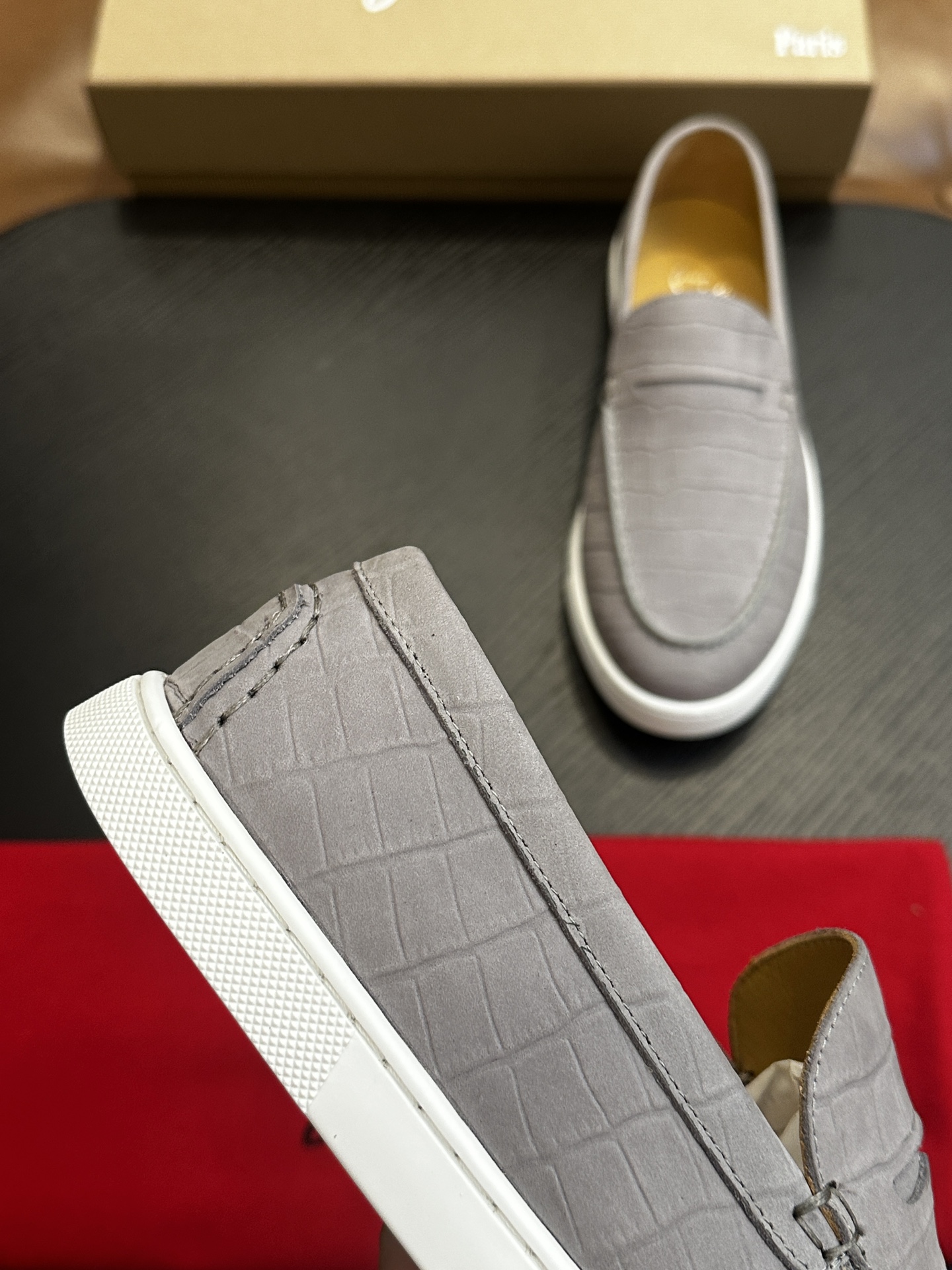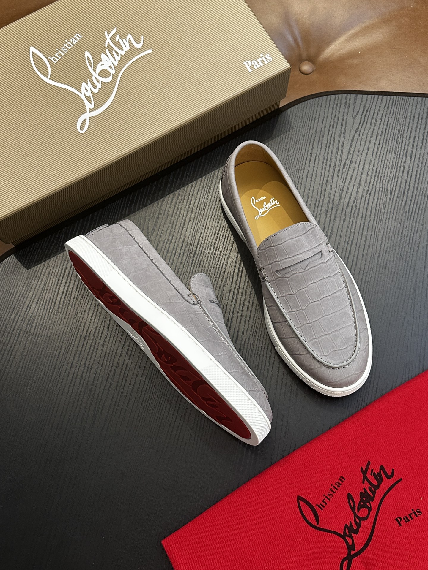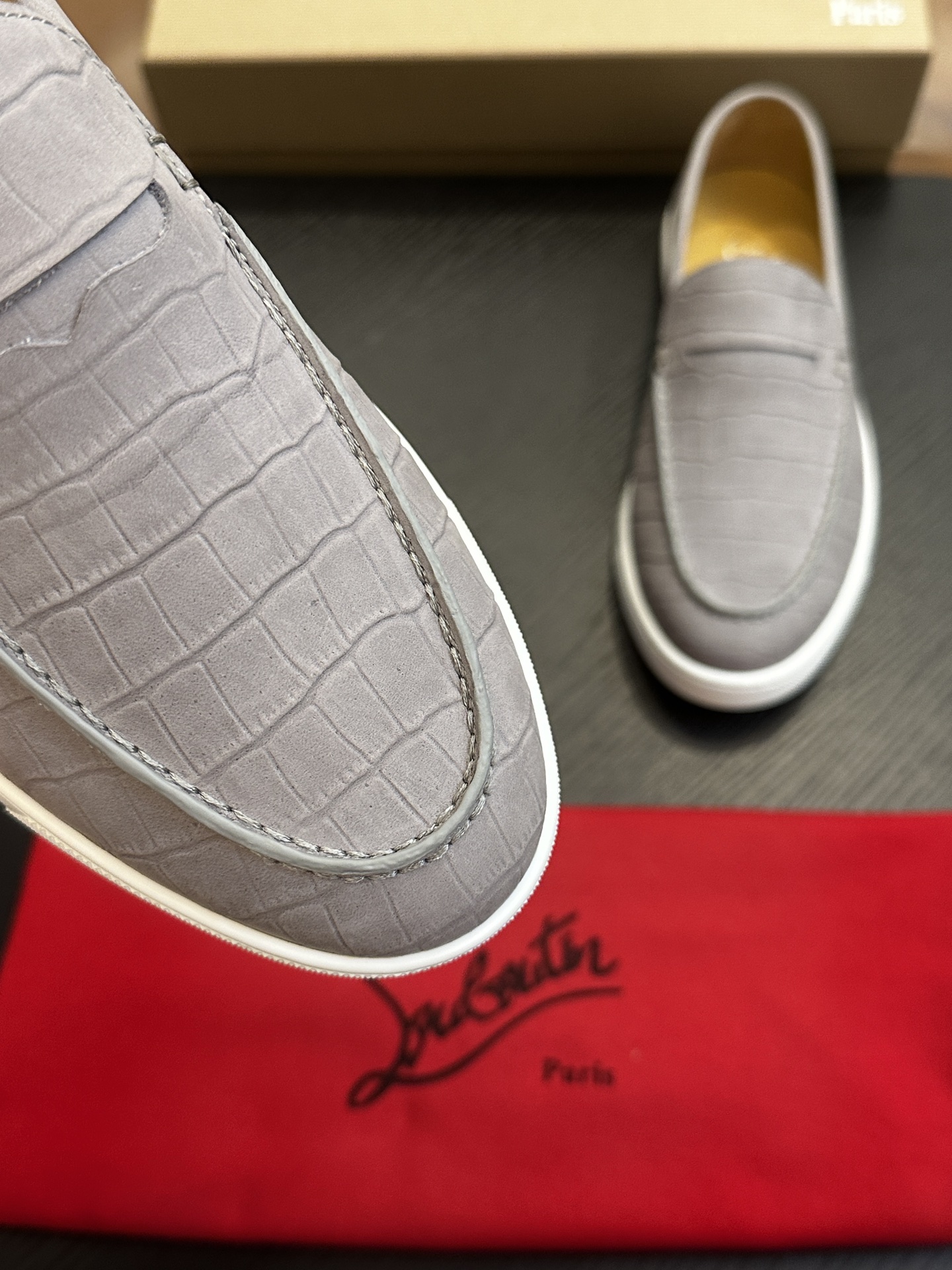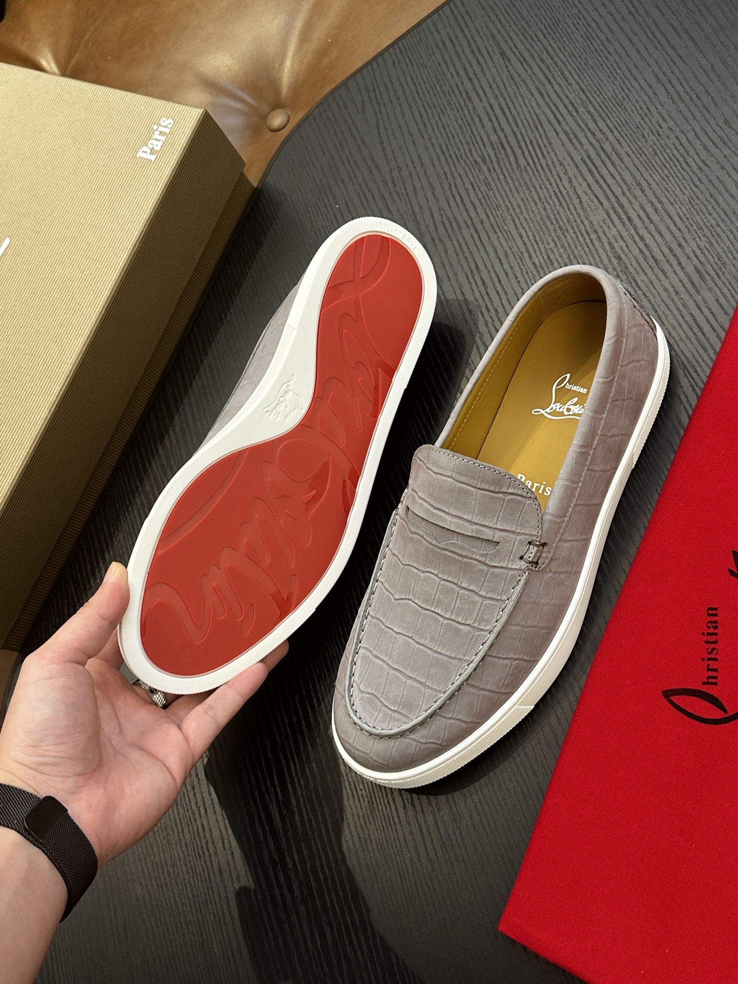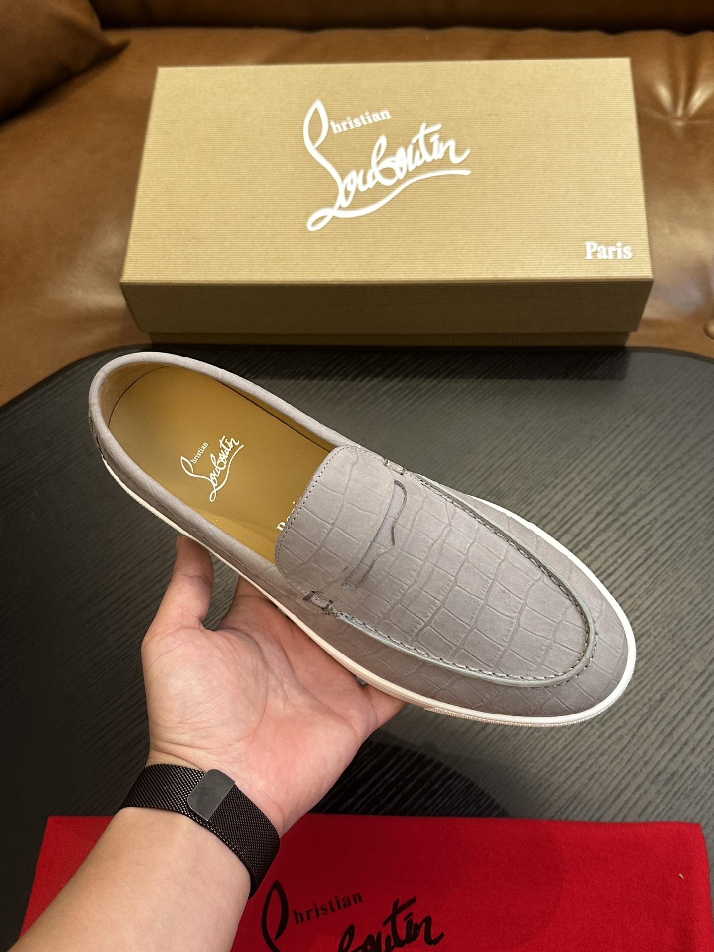 这款鞋子是AAAAA 1:1 质量 (非常棒). 使用了和原版一模一样的材料. 商标部分也保持了和克里斯提·鲁布托/Christian Louboutin一样. 图片拍摄是实物鞋子拍摄, 您所收到的实物保证和我们图片一模一样.