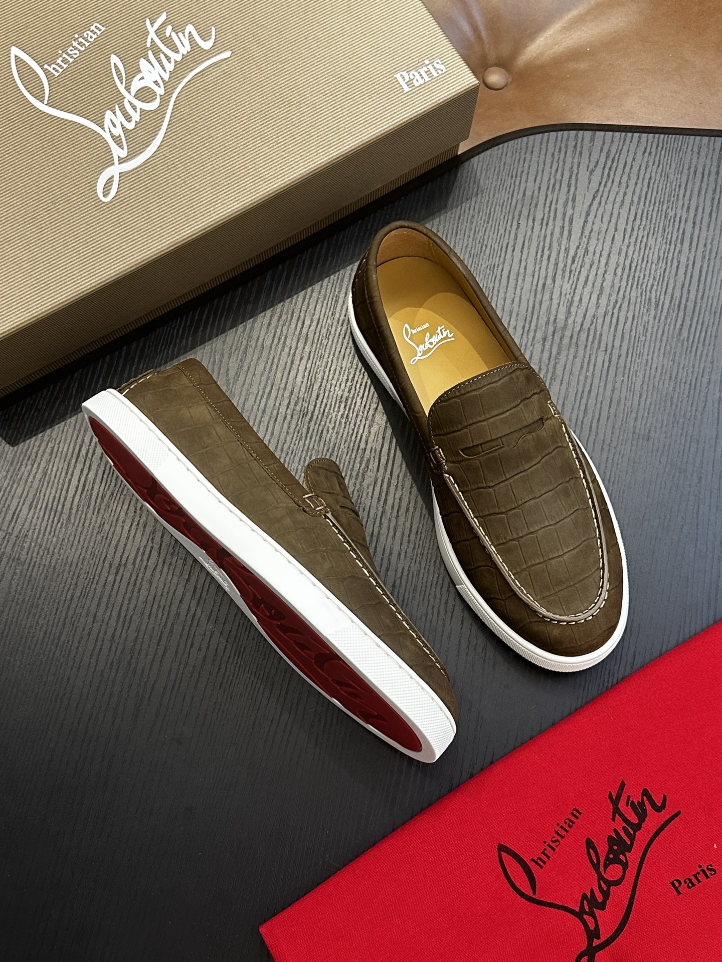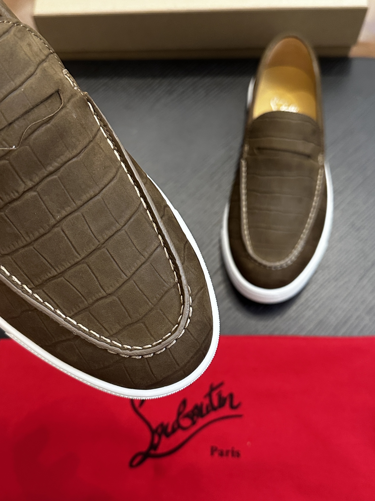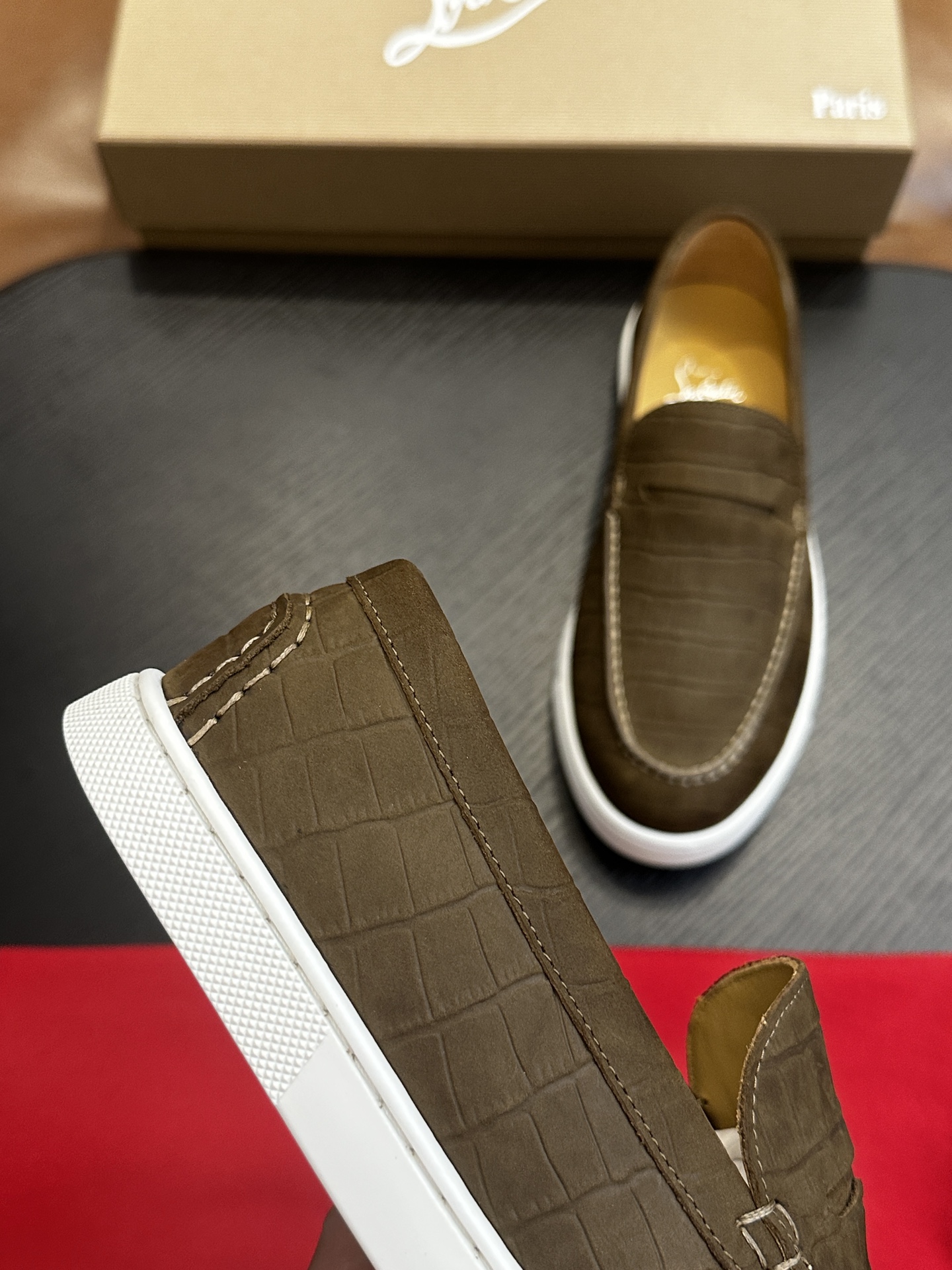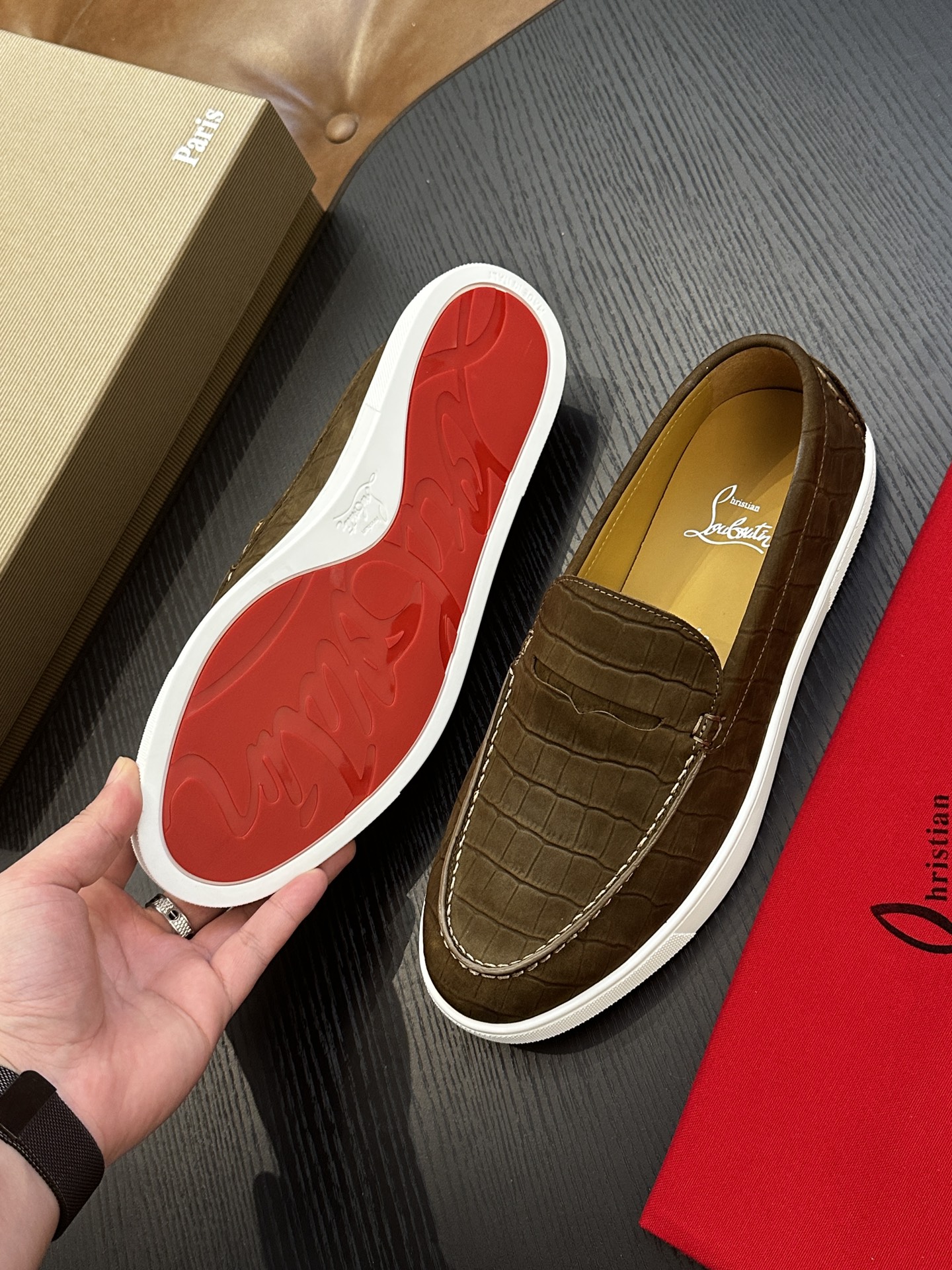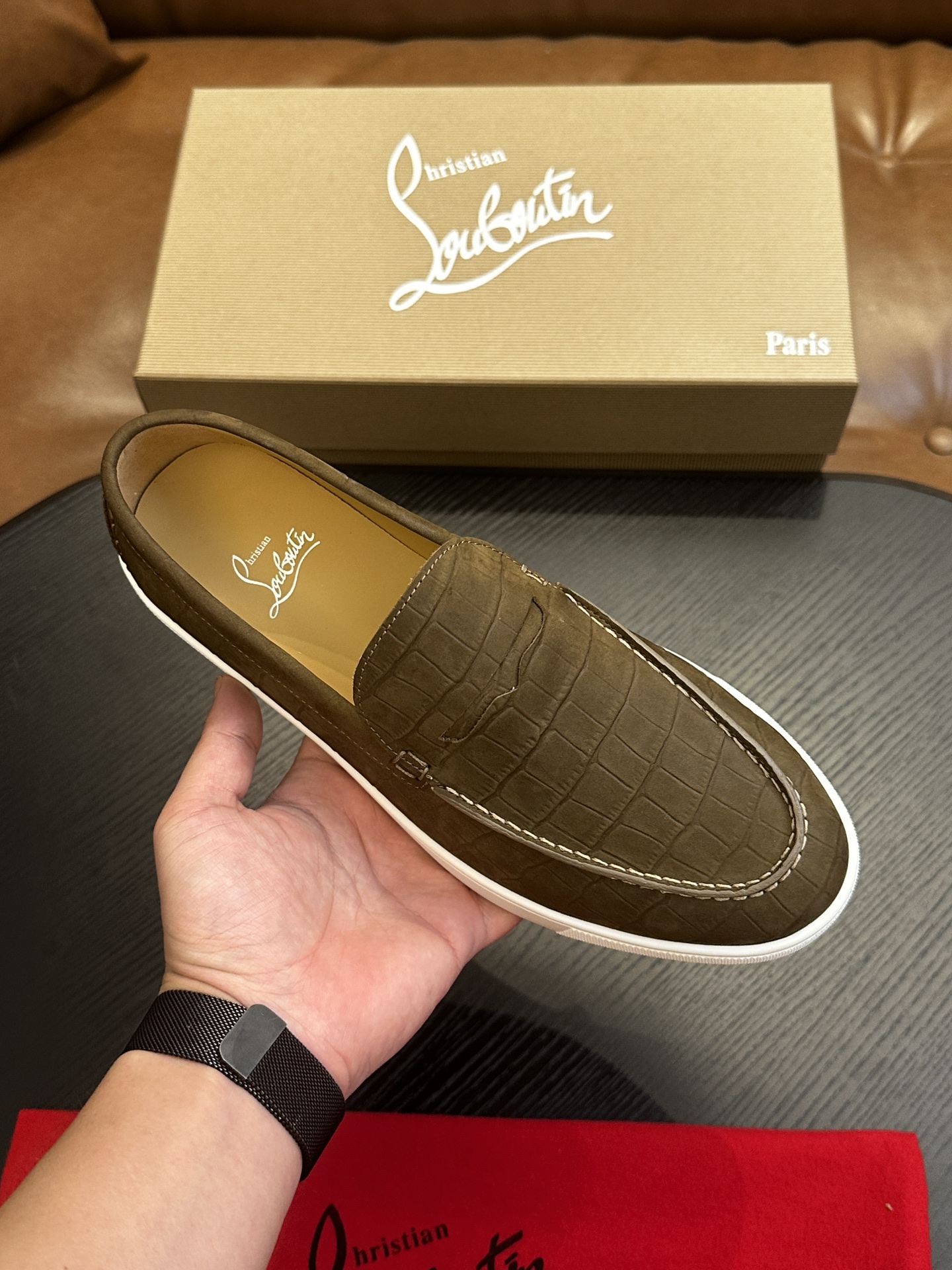 这款鞋子是AAAAA 1:1 质量 (非常棒). 使用了和原版一模一样的材料. 商标部分也保持了和克里斯提·鲁布托/Christian Louboutin一样. 图片拍摄是实物鞋子拍摄, 您所收到的实物保证和我们图片一模一样.