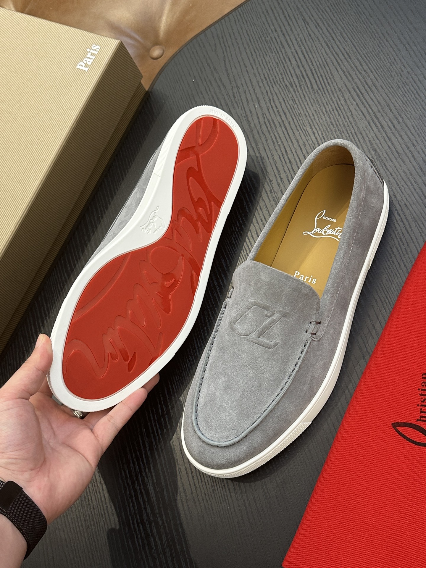 这款鞋子是AAAAA 1:1 质量 (非常棒). 使用了和原版一模一样的材料. 商标部分也保持了和克里斯提·鲁布托/Christian Louboutin一样. 图片拍摄是实物鞋子拍摄, 您所收到的实物保证和我们图片一模一样.