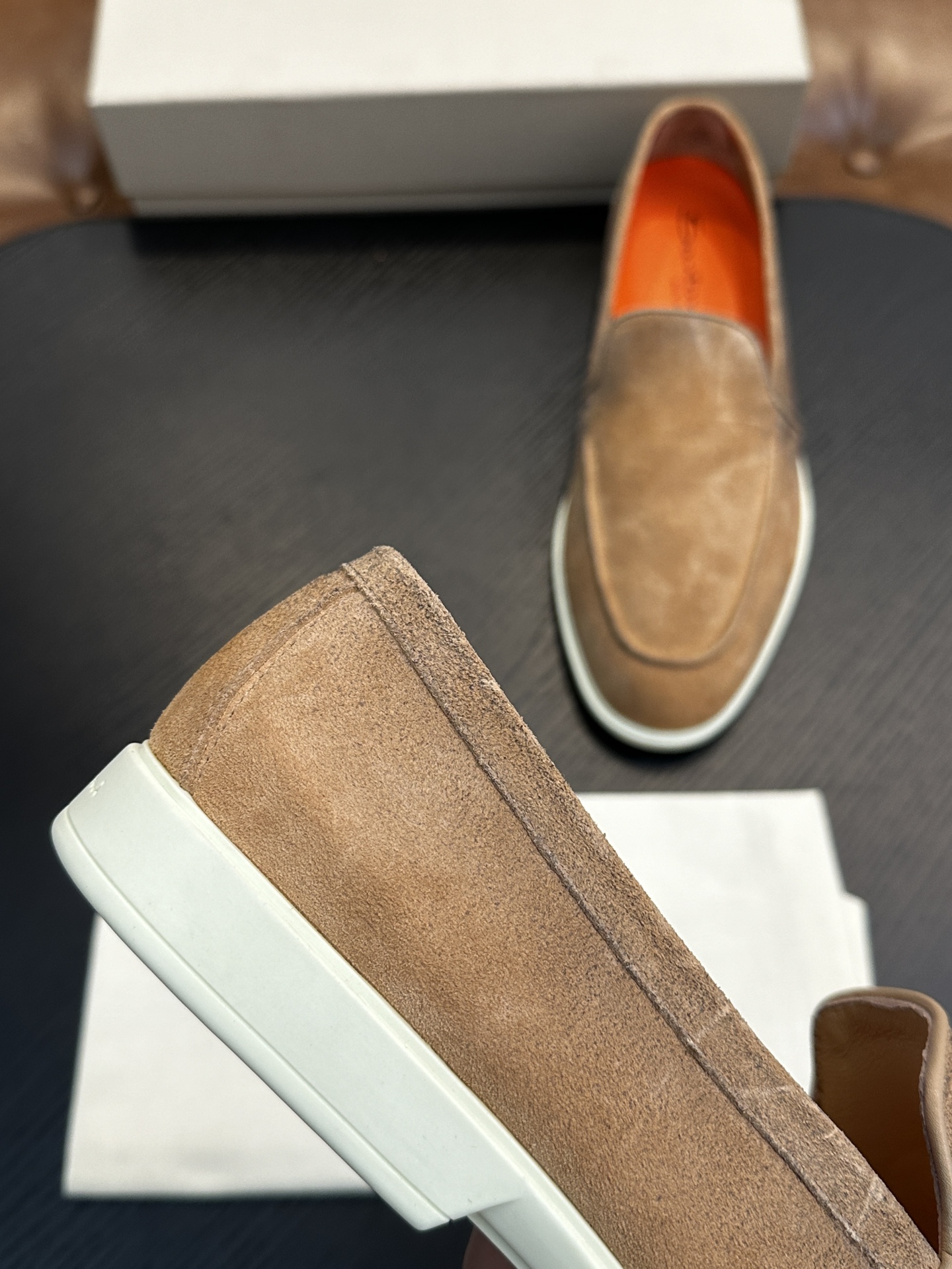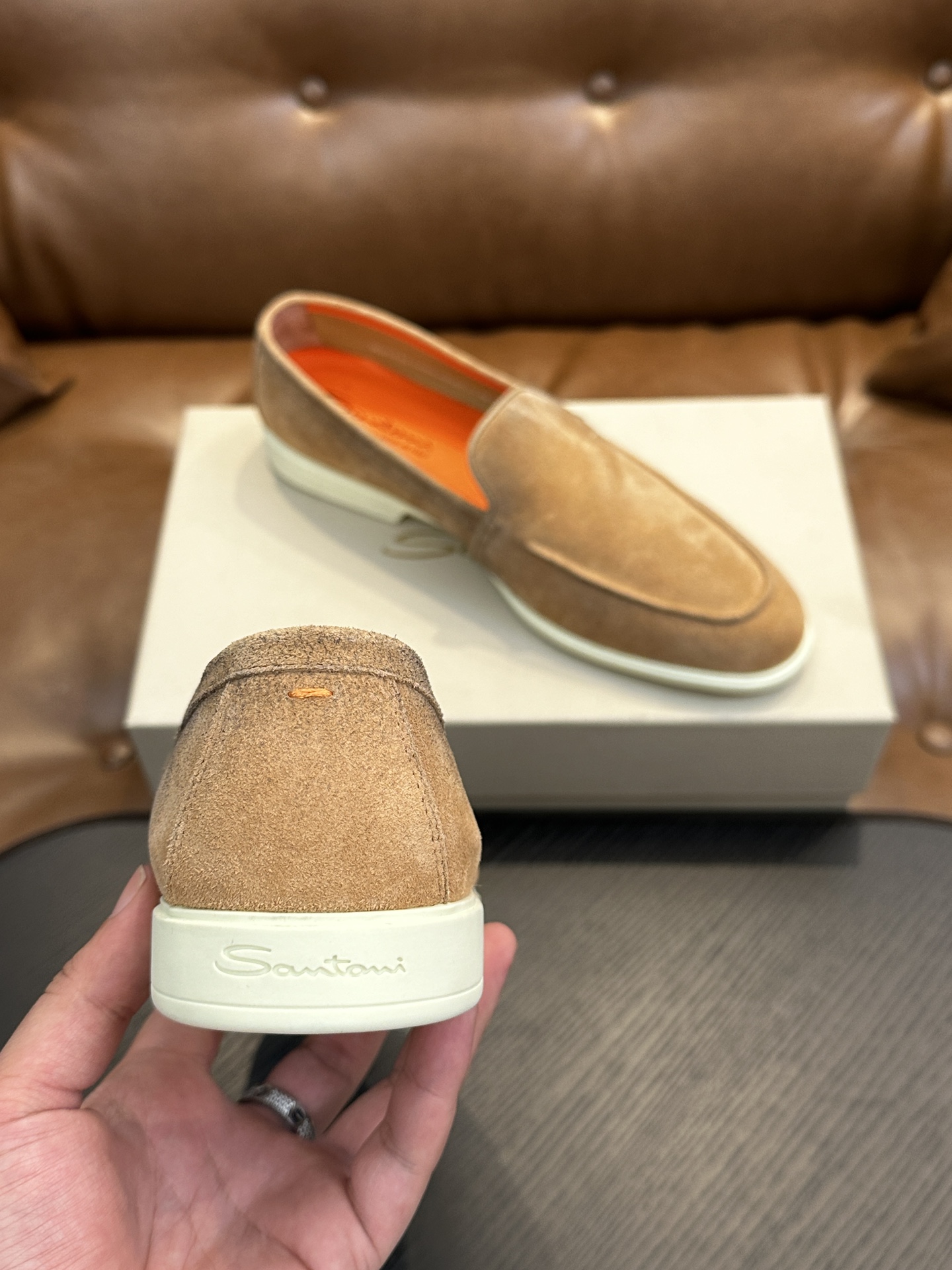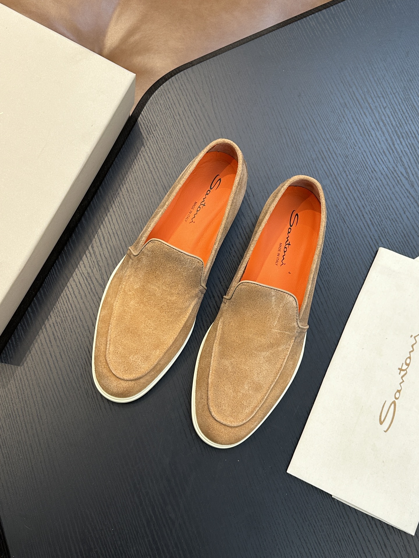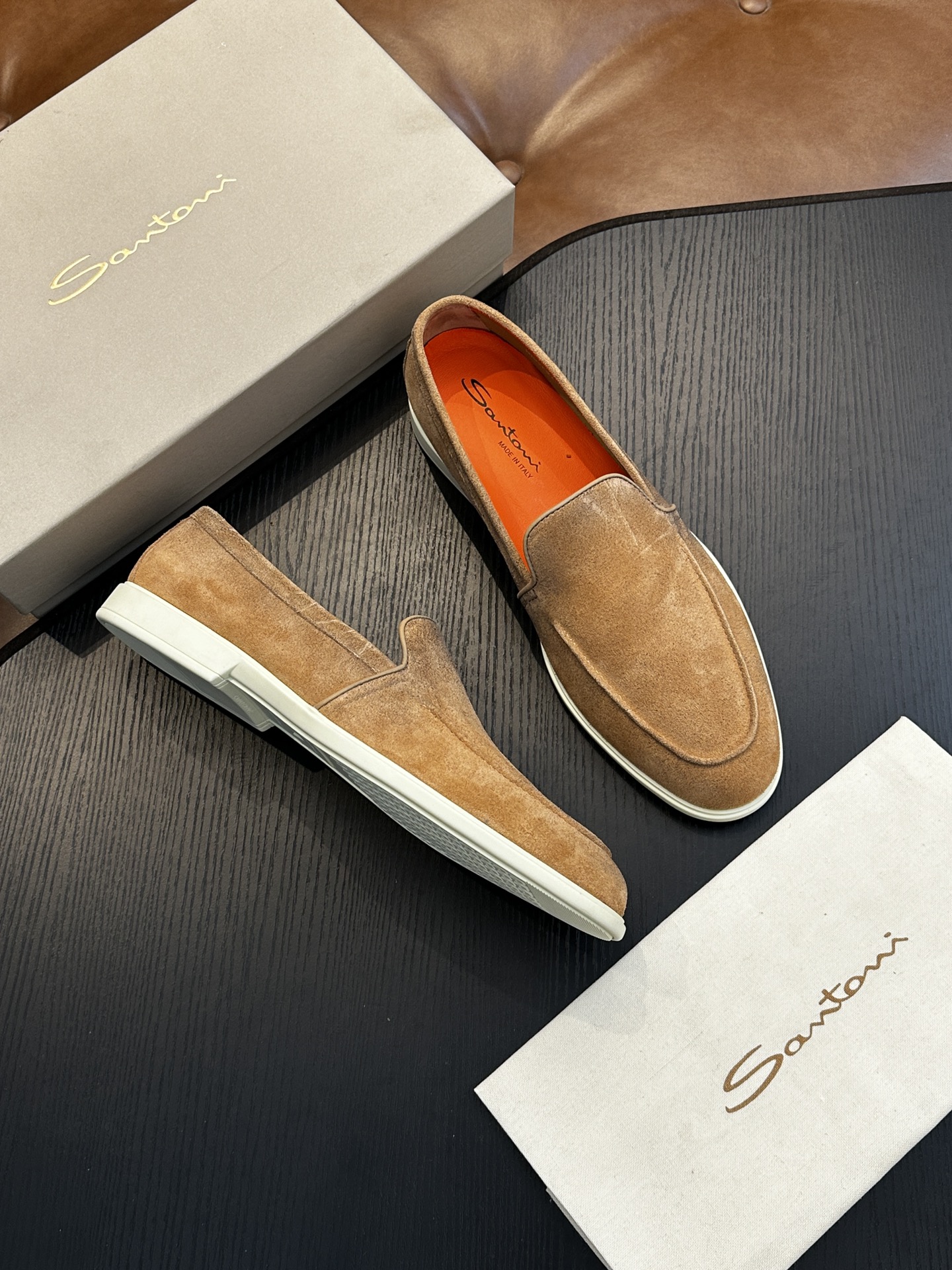 这款鞋子是AAAAA 1:1 质量 (非常棒). 使用了和原版一模一样的材料. 商标部分也保持了和Santoni一样. 图片拍摄是实物鞋子拍摄, 您所收到的实物保证和我们图片一模一样.