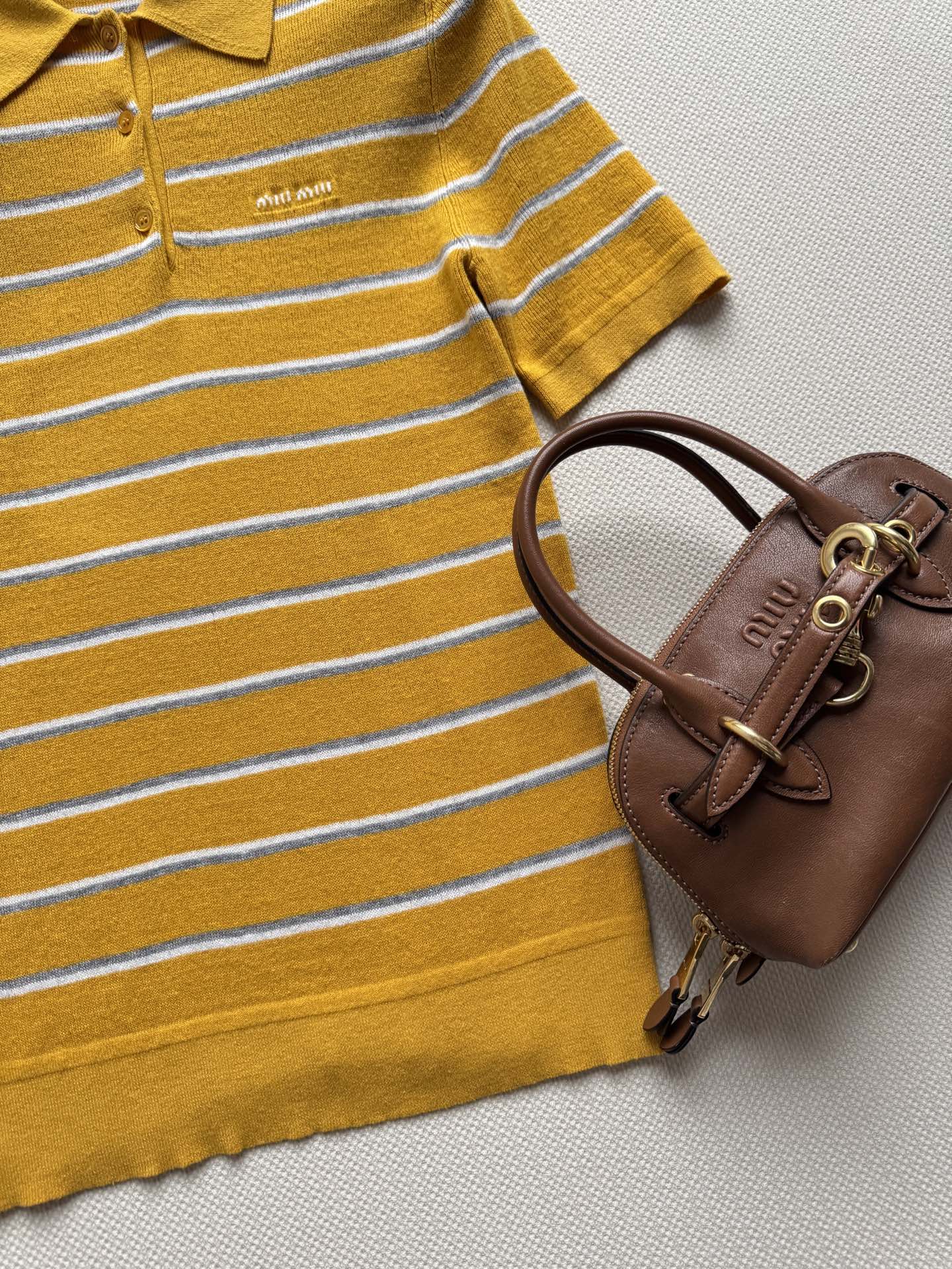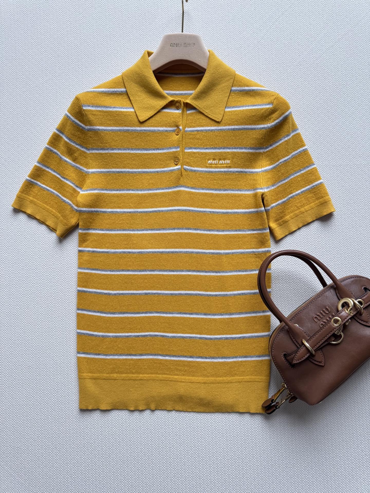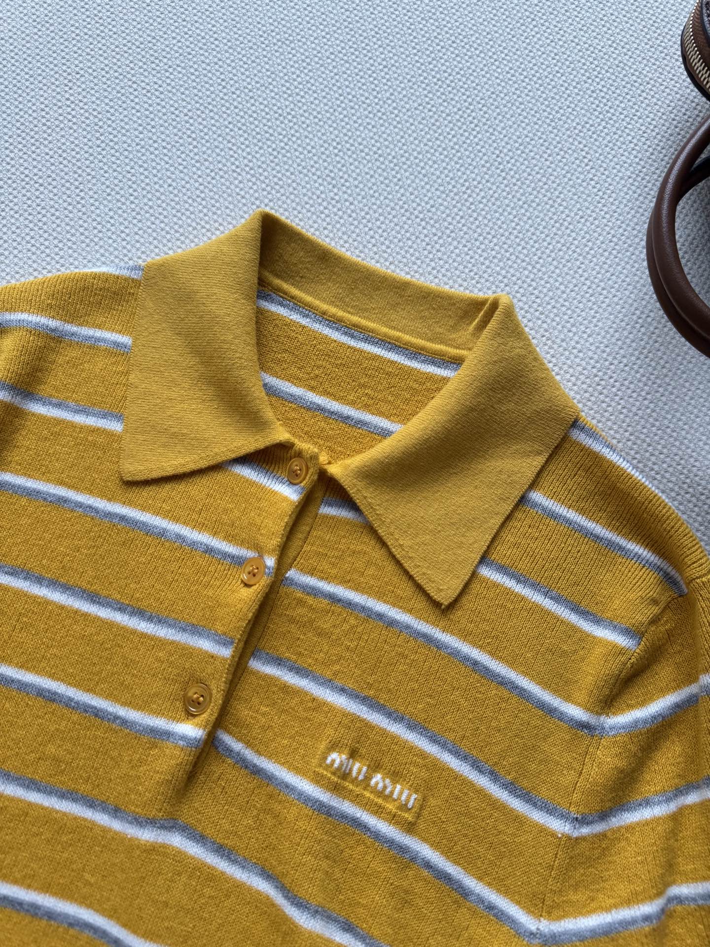 这款衣服是AAAAA 1:1 质量 (非常棒). 使用了和原版一模一样的材料. 商标部分也保持了和缪缪/Miu Miu一样. 图片拍摄是实物衣服拍摄, 您所收到的实物保证和我们图片一模一样.