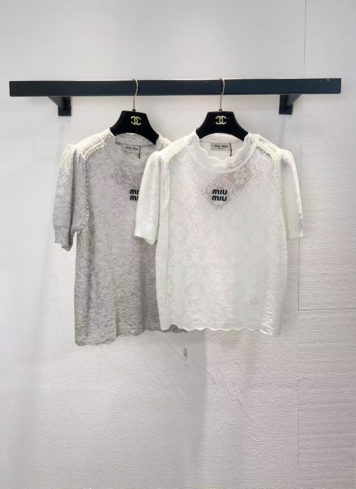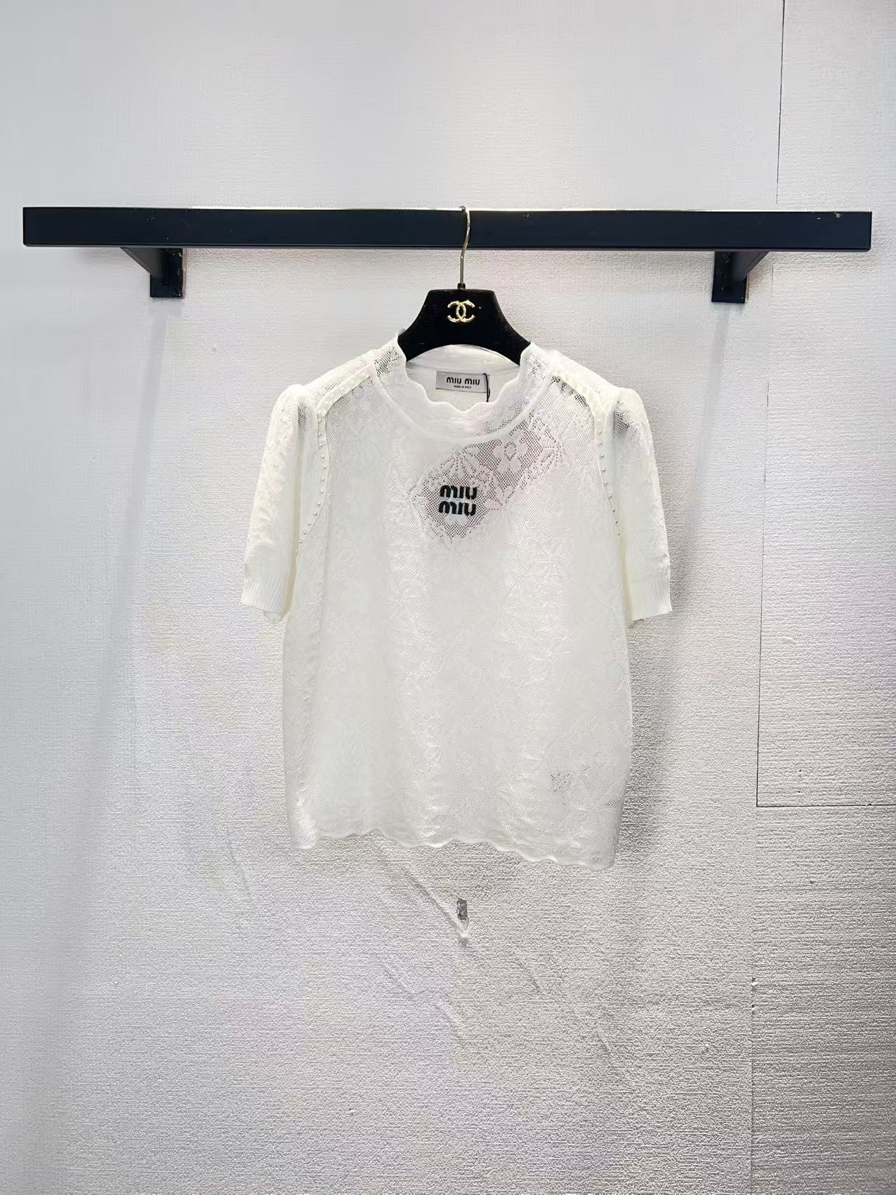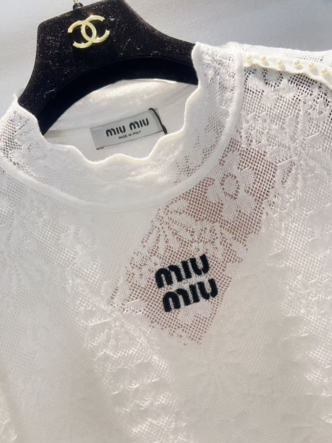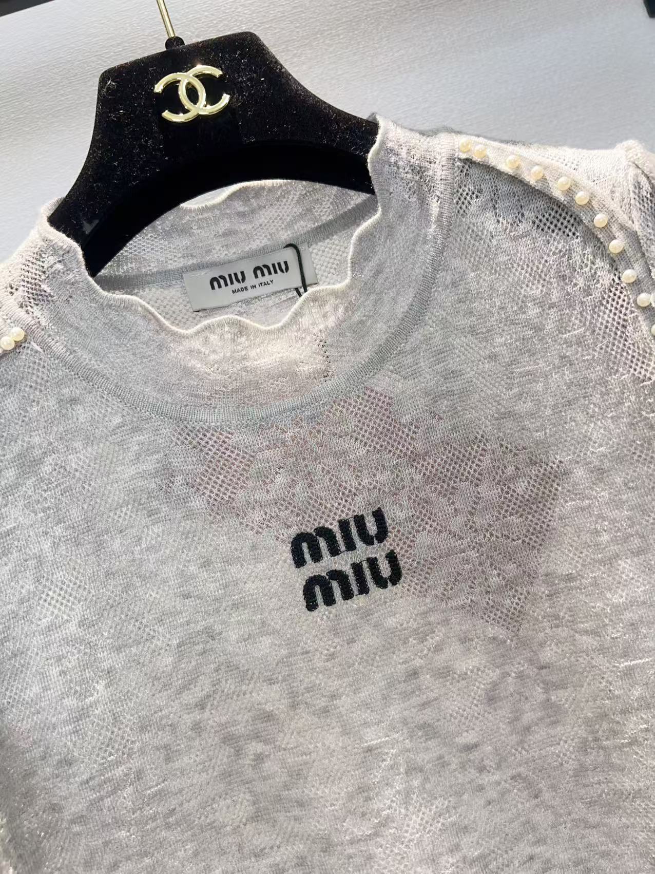 这款衣服是AAAAA 1:1 质量 (非常棒). 使用了和原版一模一样的材料. 商标部分也保持了和缪缪/Miu Miu一样. 图片拍摄是实物衣服拍摄, 您所收到的实物保证和我们图片一模一样.