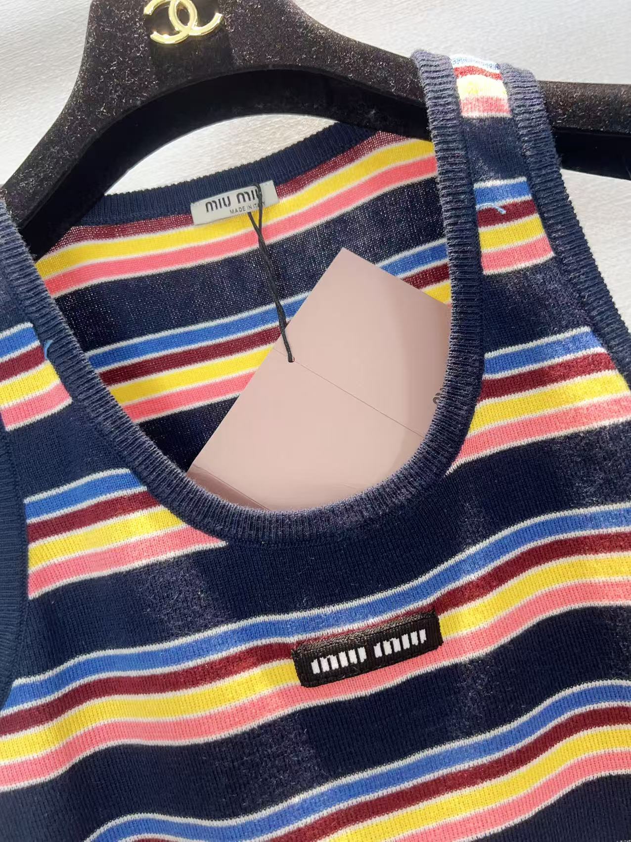 这款衣服是AAAAA 1:1 质量 (非常棒). 使用了和原版一模一样的材料. 商标部分也保持了和缪缪/Miu Miu一样. 图片拍摄是实物衣服拍摄, 您所收到的实物保证和我们图片一模一样.