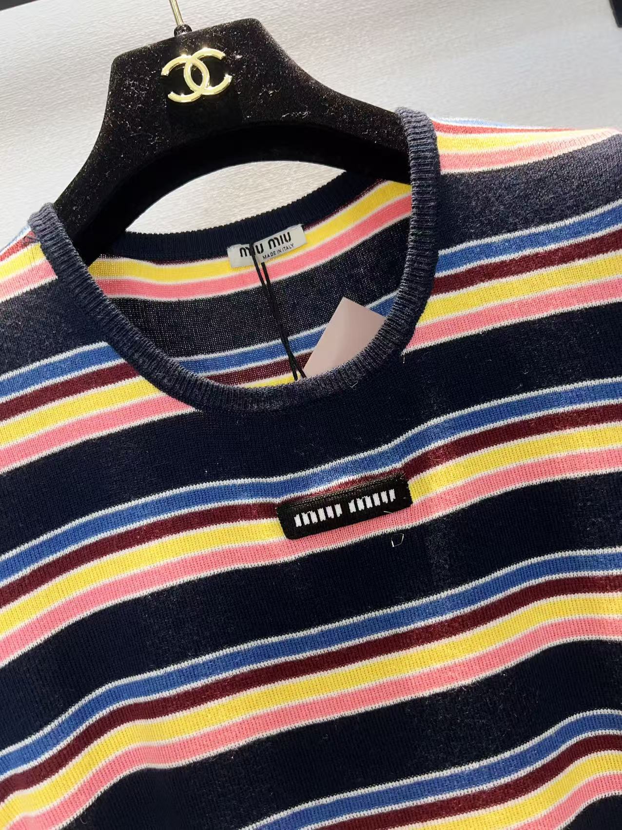 这款衣服是AAAAA 1:1 质量 (非常棒). 使用了和原版一模一样的材料. 商标部分也保持了和缪缪/Miu Miu一样. 图片拍摄是实物衣服拍摄, 您所收到的实物保证和我们图片一模一样.