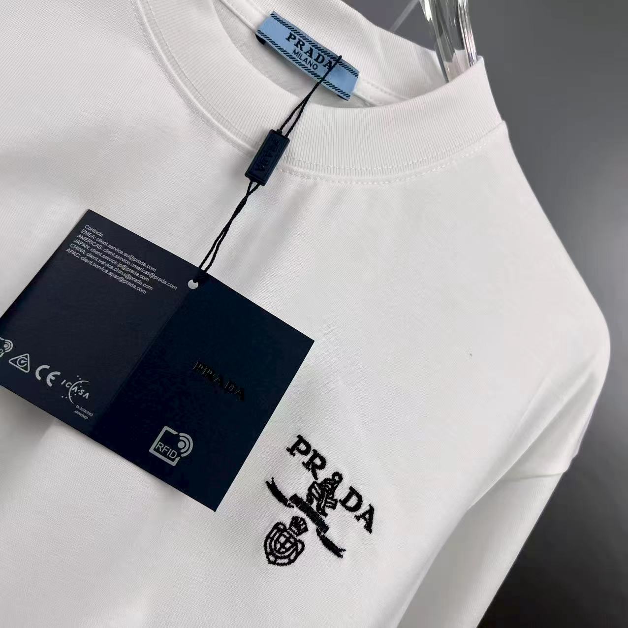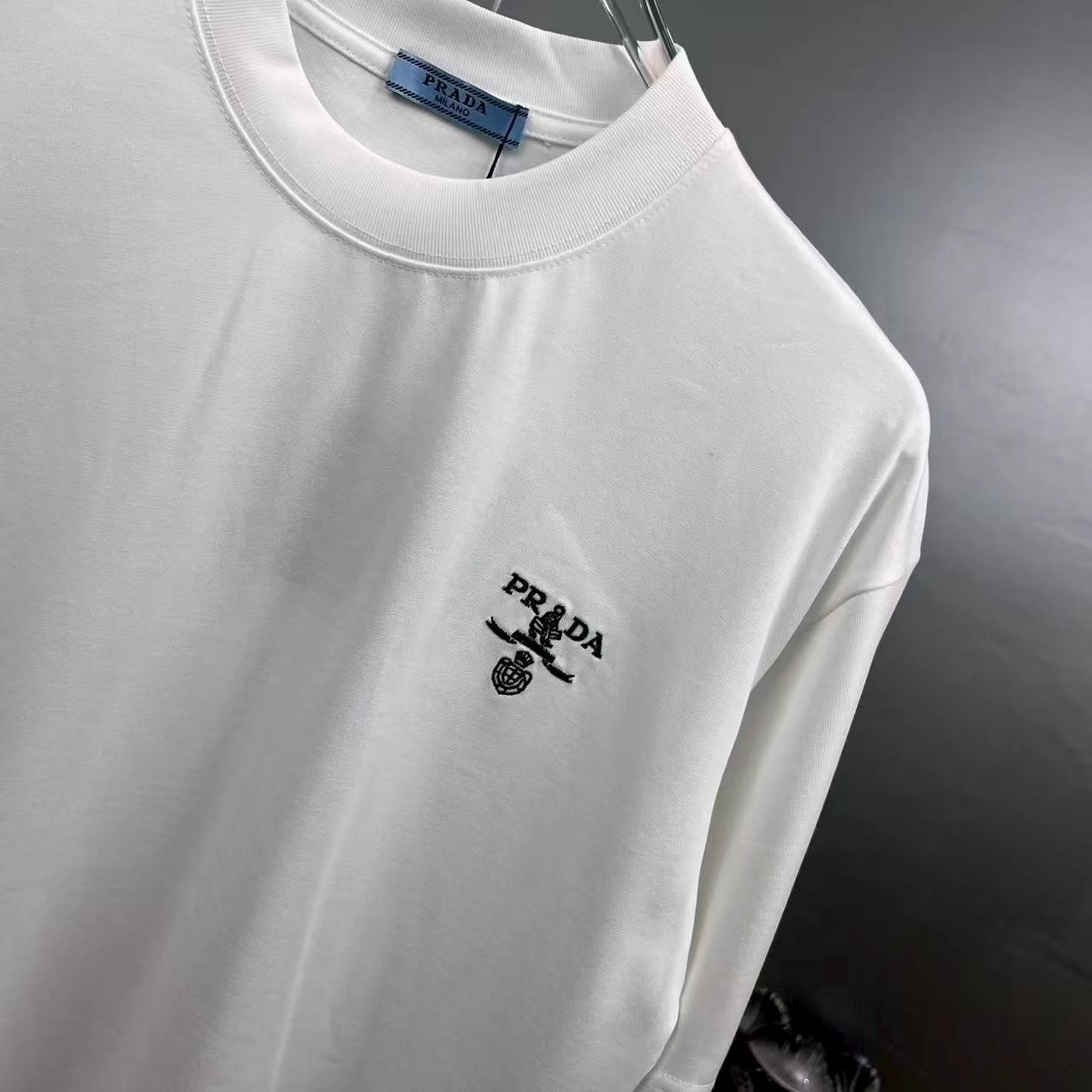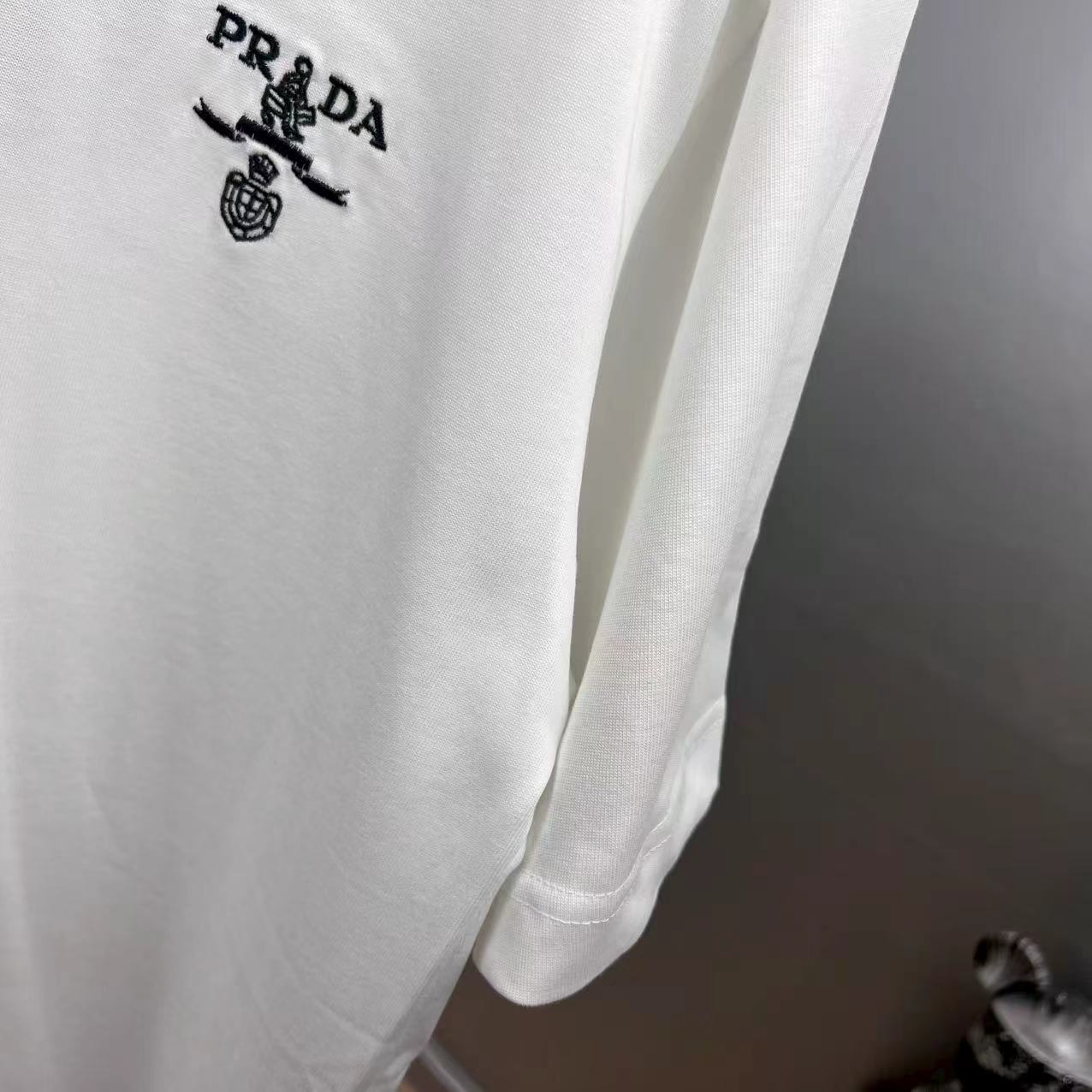 这款衣服是AAAAA 1:1 质量 (非常棒). 使用了和原版一模一样的材料. 商标部分也保持了和普拉达/Prada一样. 图片拍摄是实物衣服拍摄, 您所收到的实物保证和我们图片一模一样.