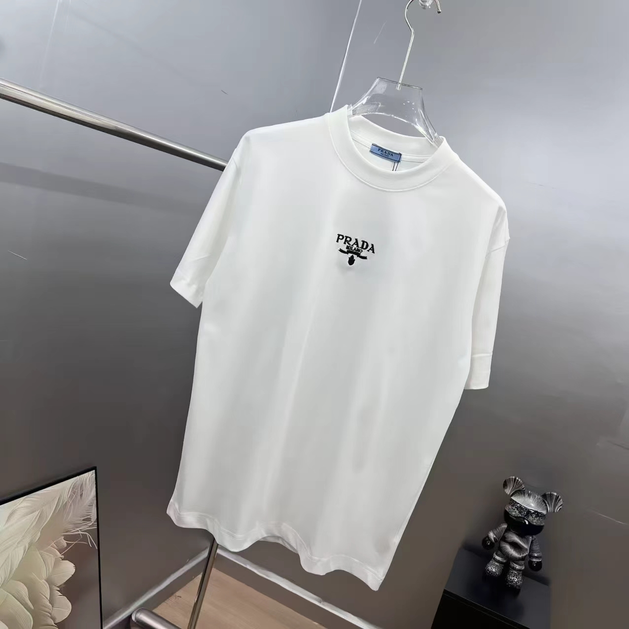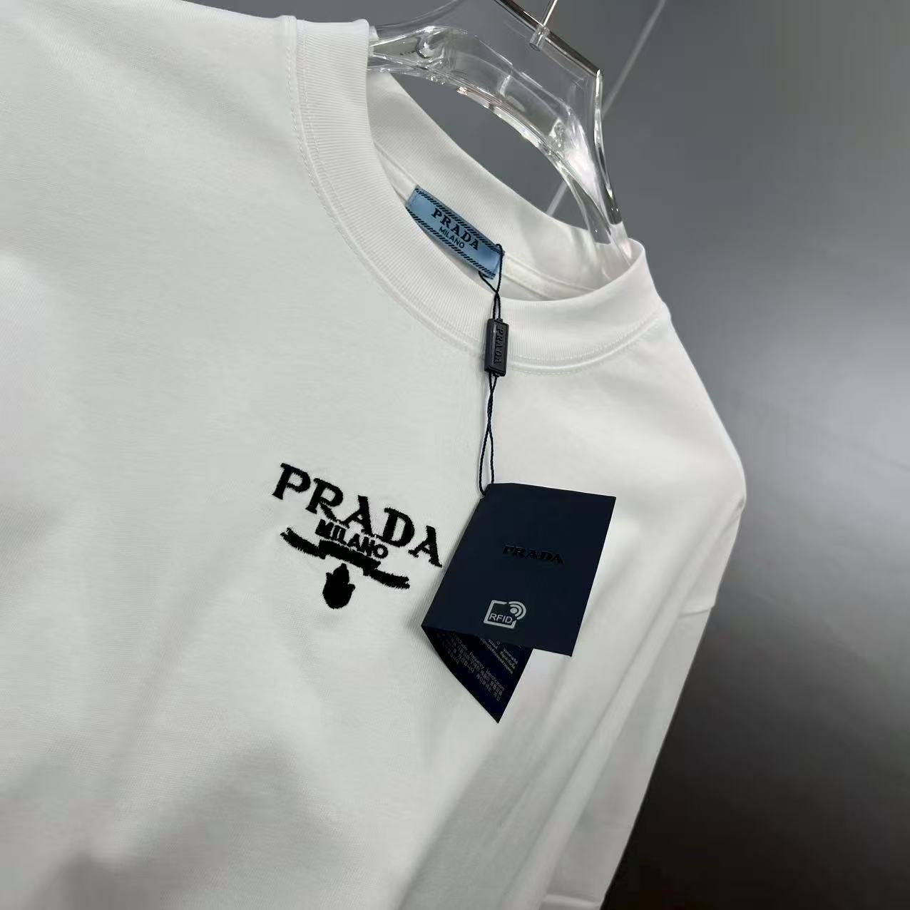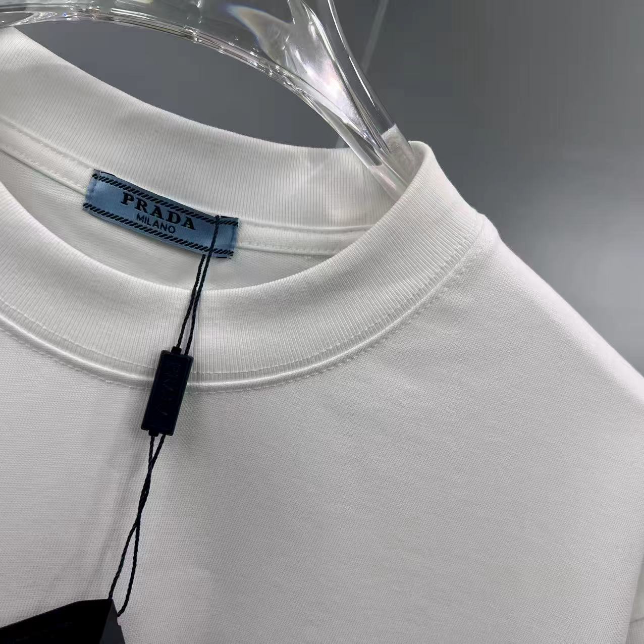 这款衣服是AAAAA 1:1 质量 (非常棒). 使用了和原版一模一样的材料. 商标部分也保持了和普拉达/Prada一样. 图片拍摄是实物衣服拍摄, 您所收到的实物保证和我们图片一模一样.