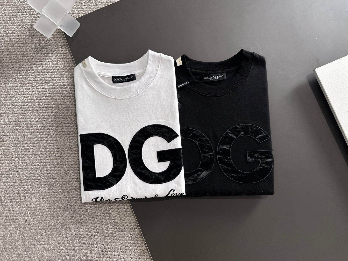 这款衣服是AAAAA 1:1 质量 (非常棒). 使用了和原版一模一样的材料. 商标部分也保持了和杜嘉班纳/Dolce&Gabbana一样. 图片拍摄是实物衣服拍摄, 您所收到的实物保证和我们图片一模一样.