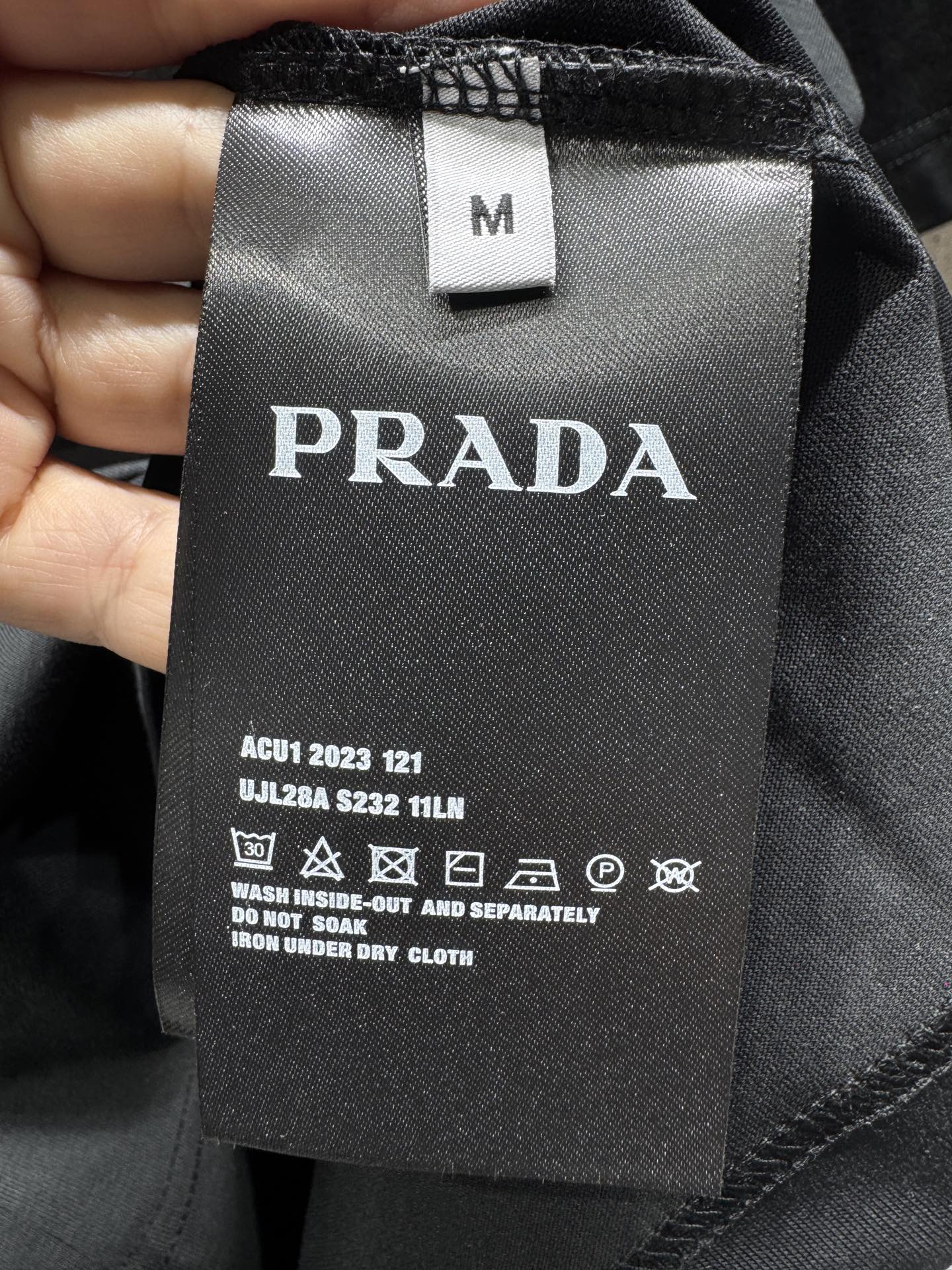 这款衣服是AAAAA 1:1 质量 (非常棒). 使用了和原版一模一样的材料. 商标部分也保持了和普拉达/Prada一样. 图片拍摄是实物衣服拍摄, 您所收到的实物保证和我们图片一模一样.