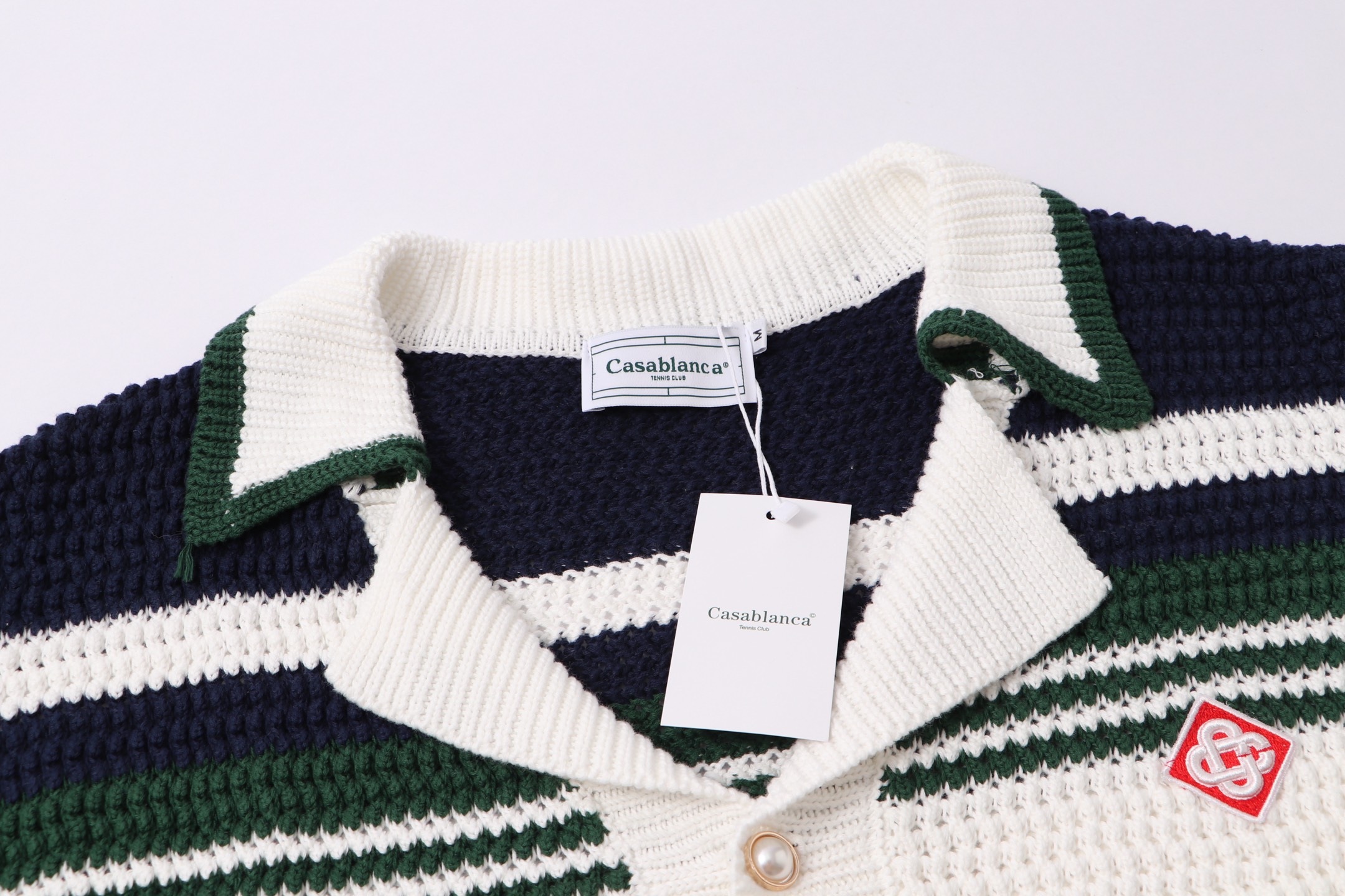 这款衣服是AAAAA 1:1 质量 (非常棒). 使用了和原版一模一样的材料. 商标部分也保持了和Casablanca一样. 图片拍摄是实物衣服拍摄, 您所收到的实物保证和我们图片一模一样.