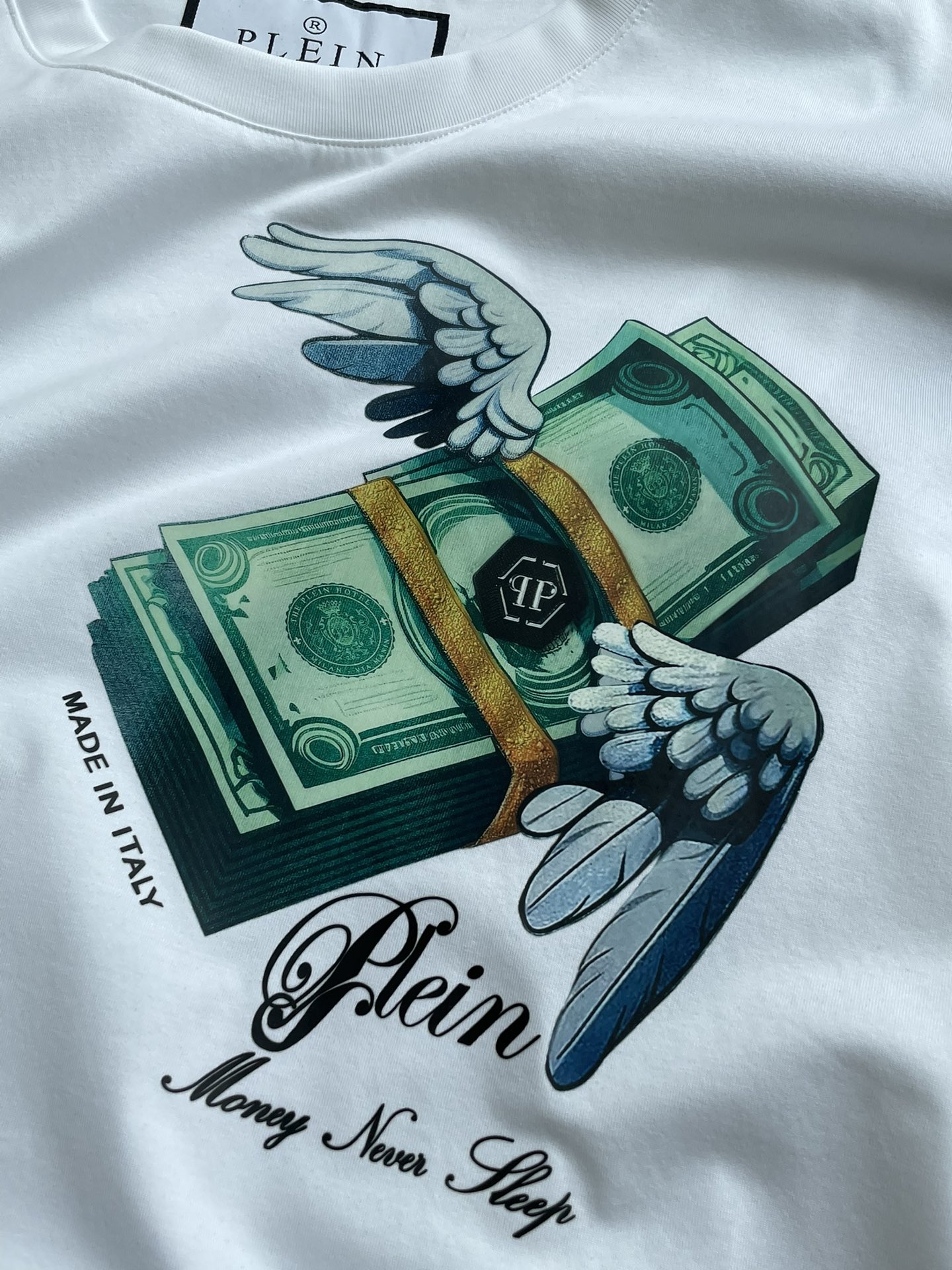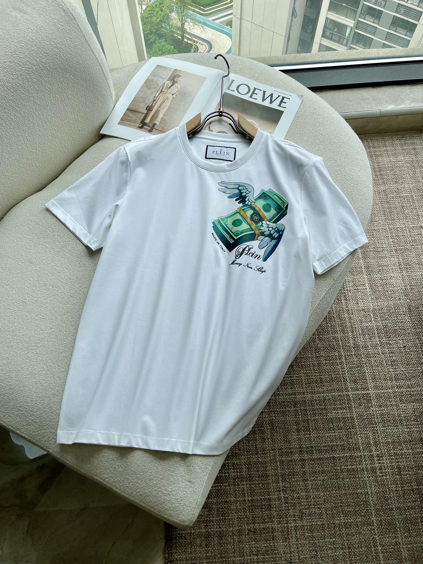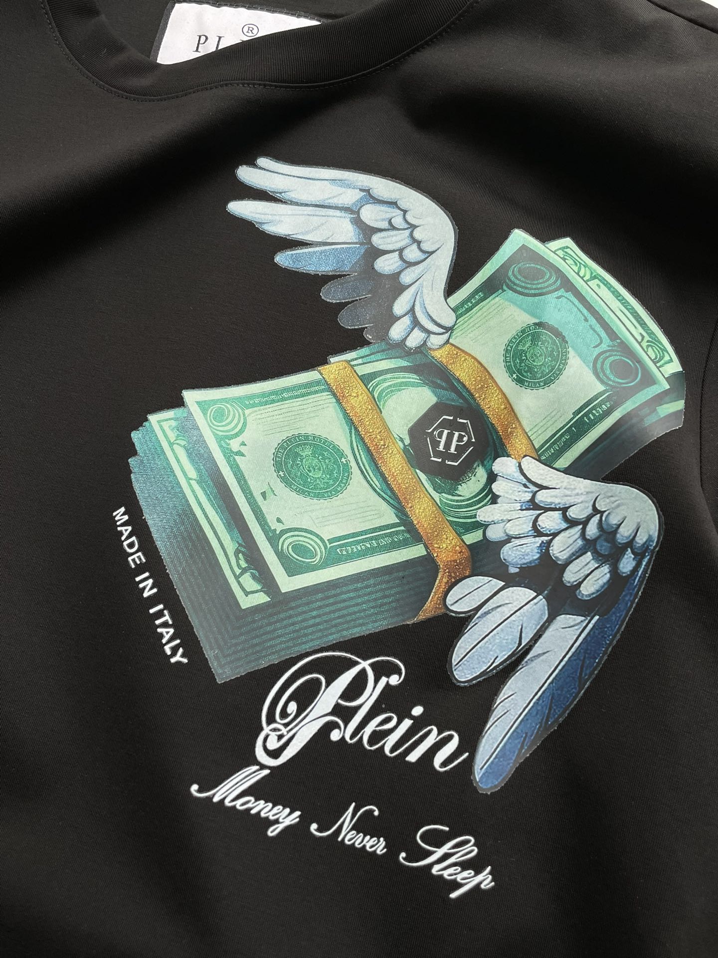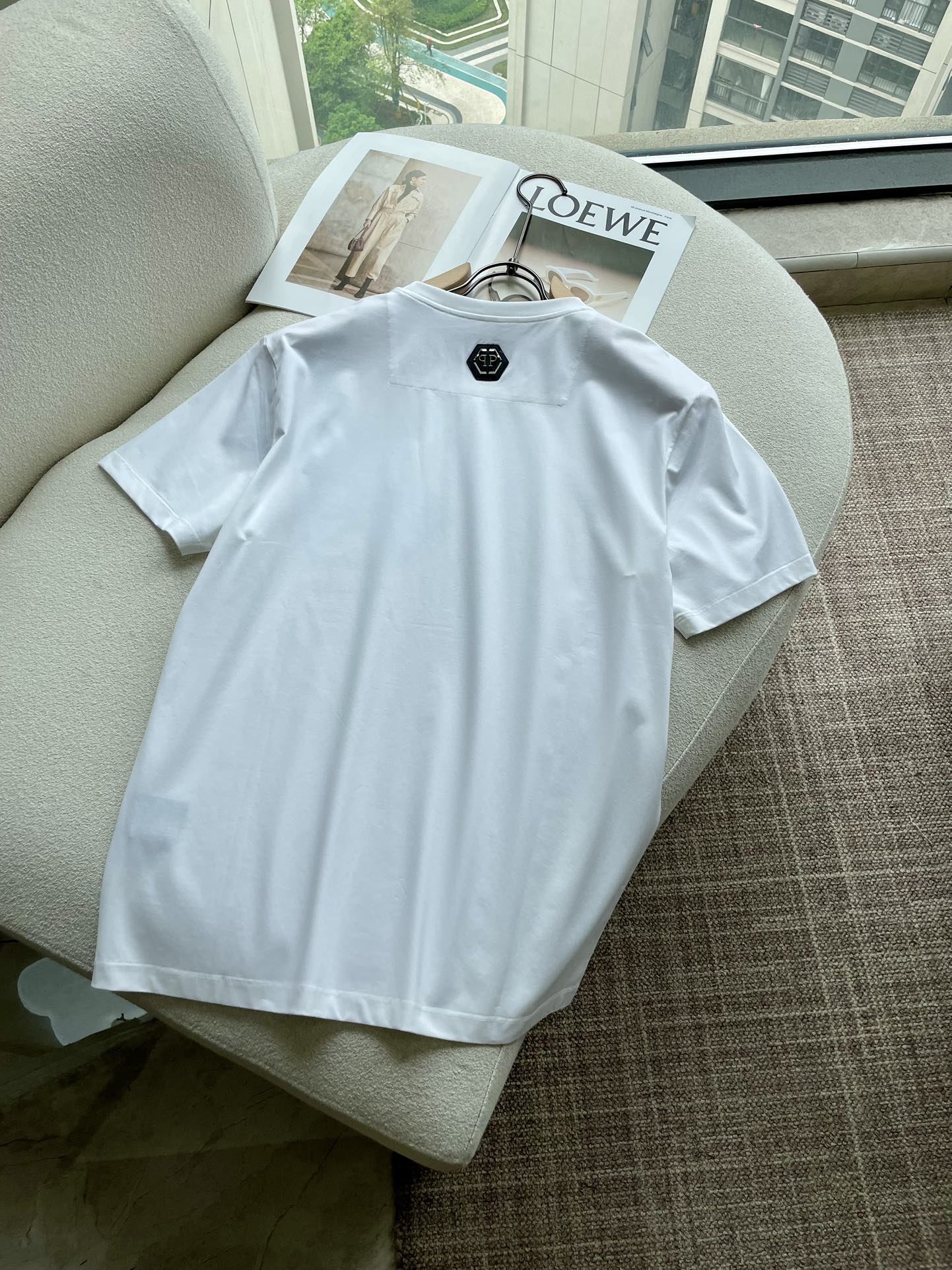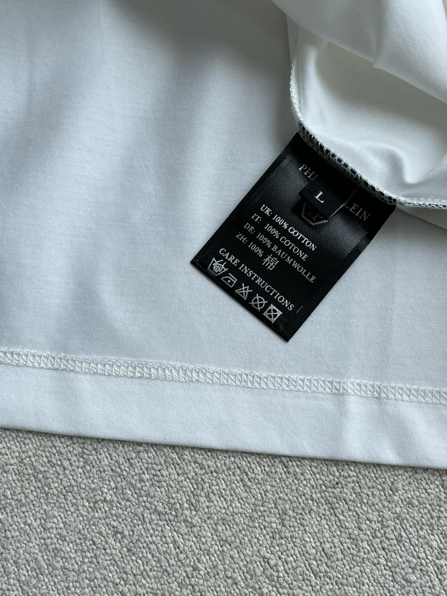 这款衣服是AAAAA 1:1 质量 (非常棒). 使用了和原版一模一样的材料. 商标部分也保持了和菲利普·普林/Philipp Plein一样. 图片拍摄是实物衣服拍摄, 您所收到的实物保证和我们图片一模一样.