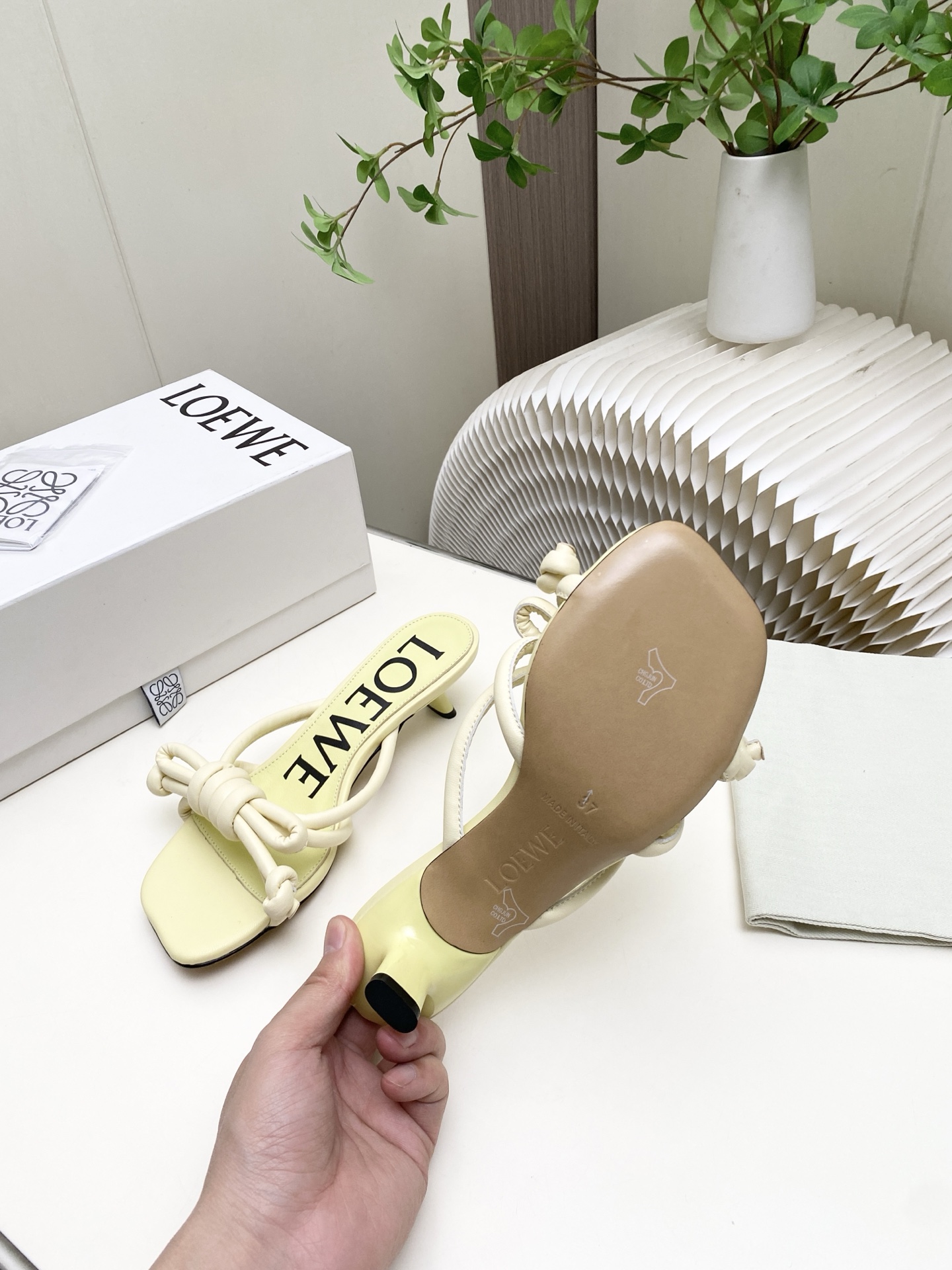 这款鞋子是AAAAA 1:1 质量 (非常棒). 使用了和原版一模一样的材料. 商标部分也保持了和罗意威/Loewe一样. 图片拍摄是实物鞋子拍摄, 您所收到的实物保证和我们图片一模一样.