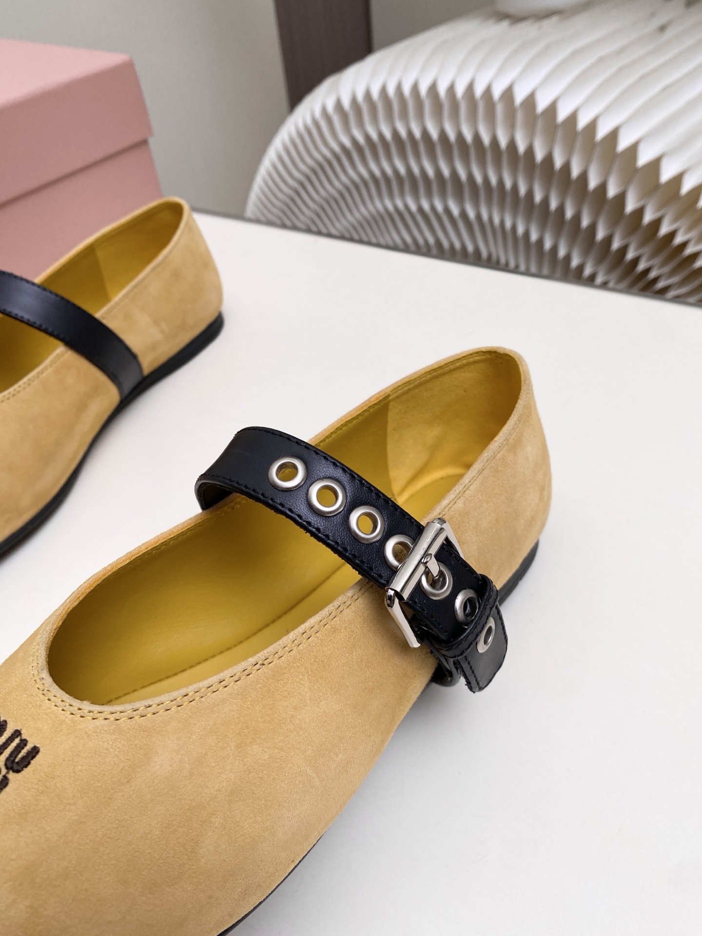这款鞋子是AAAAA 1:1 质量 (非常棒). 使用了和原版一模一样的材料. 商标部分也保持了和缪缪/Miu Miu一样. 图片拍摄是实物鞋子拍摄, 您所收到的实物保证和我们图片一模一样.