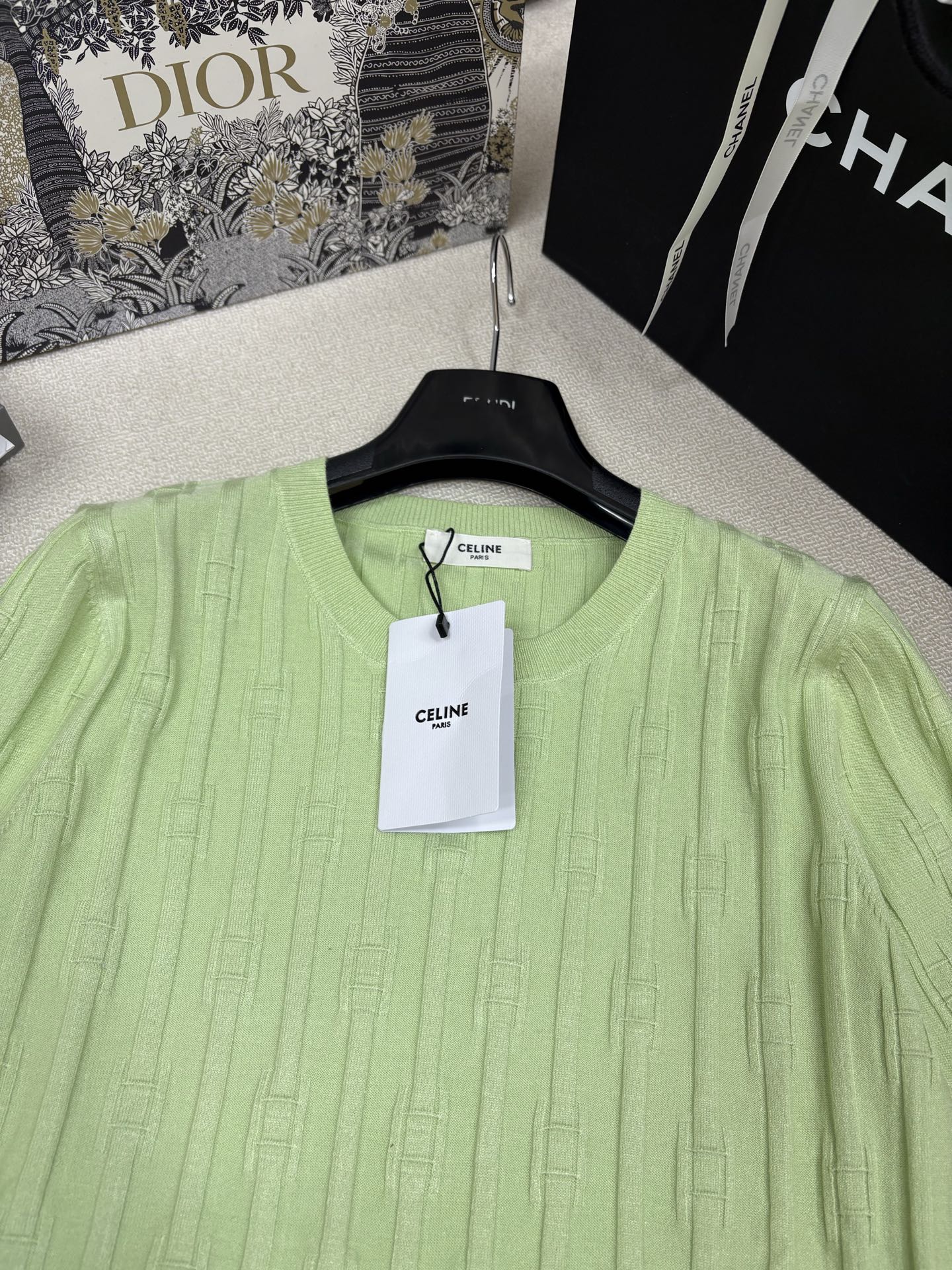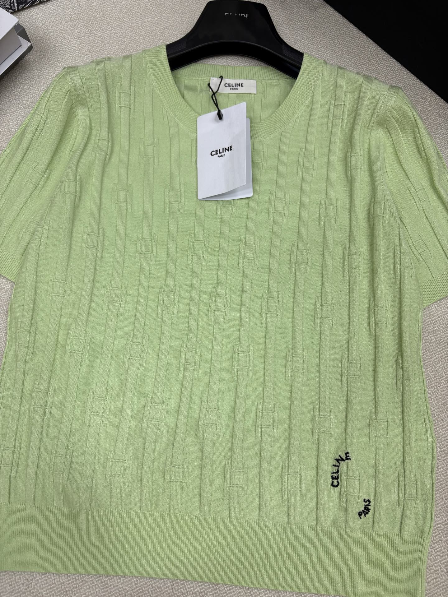 这款衣服是AAAAA 1:1 质量 (非常棒). 使用了和原版一模一样的材料. 商标部分也保持了和思琳/Celine一样. 图片拍摄是实物衣服拍摄, 您所收到的实物保证和我们图片一模一样.