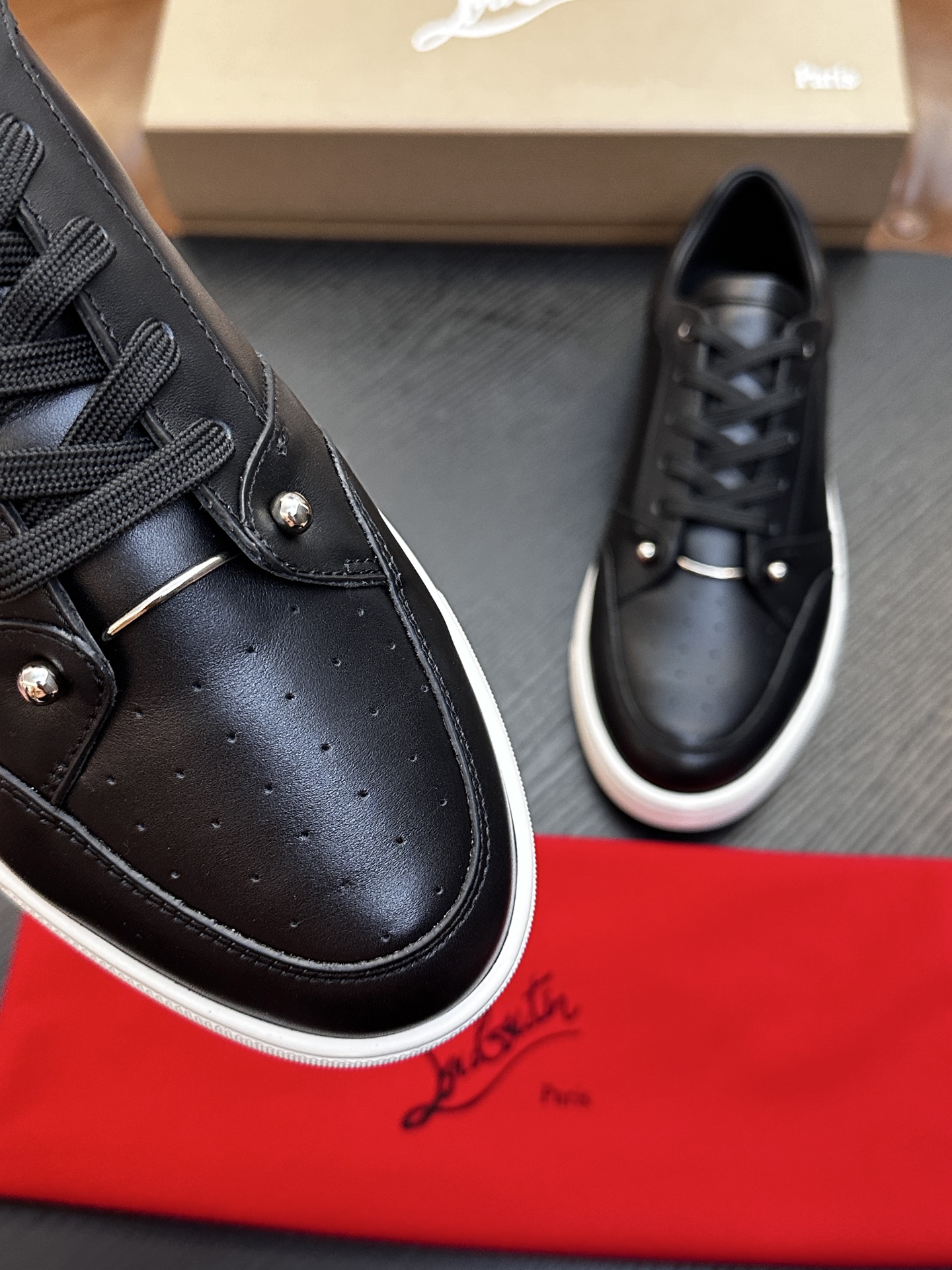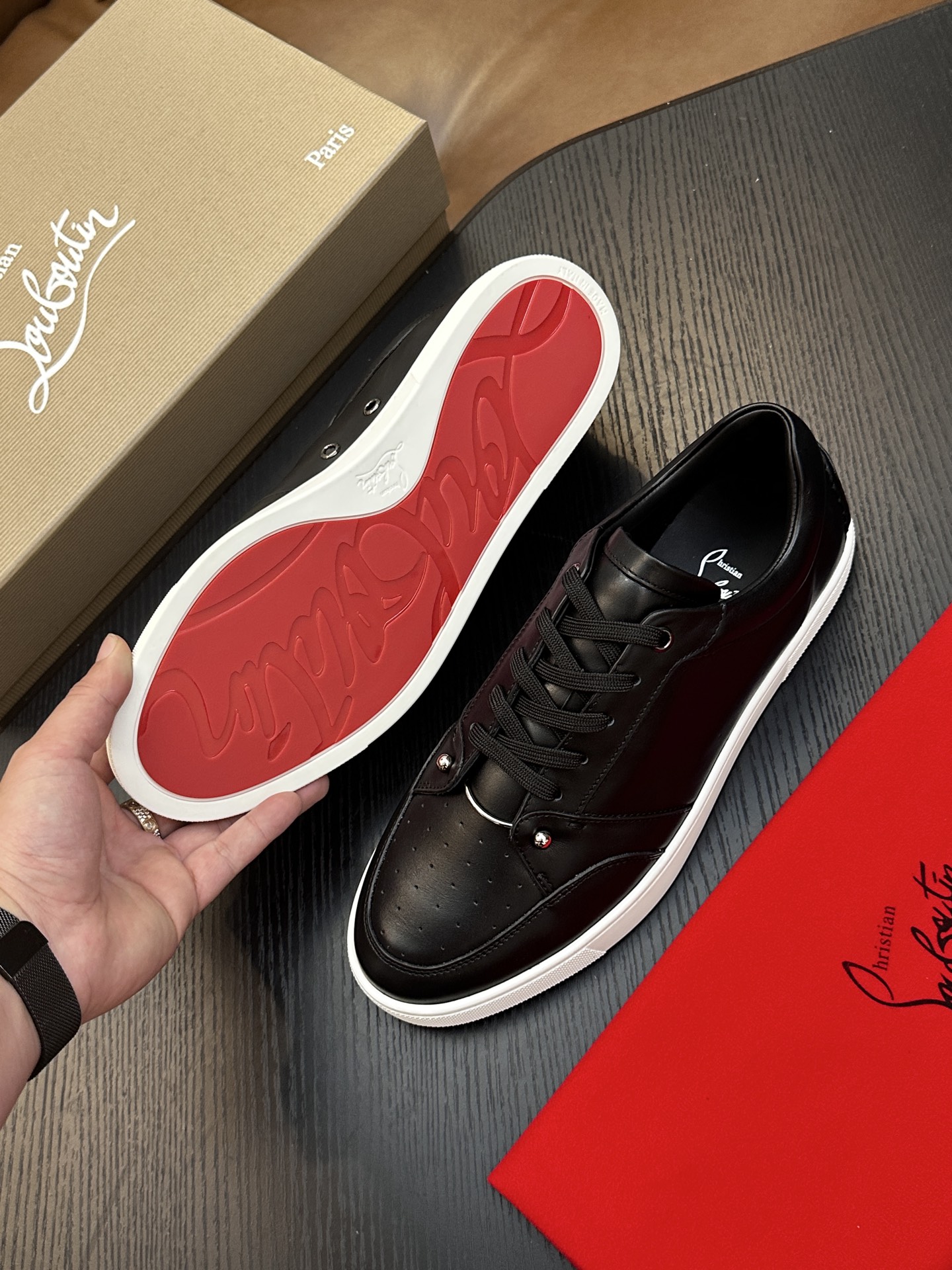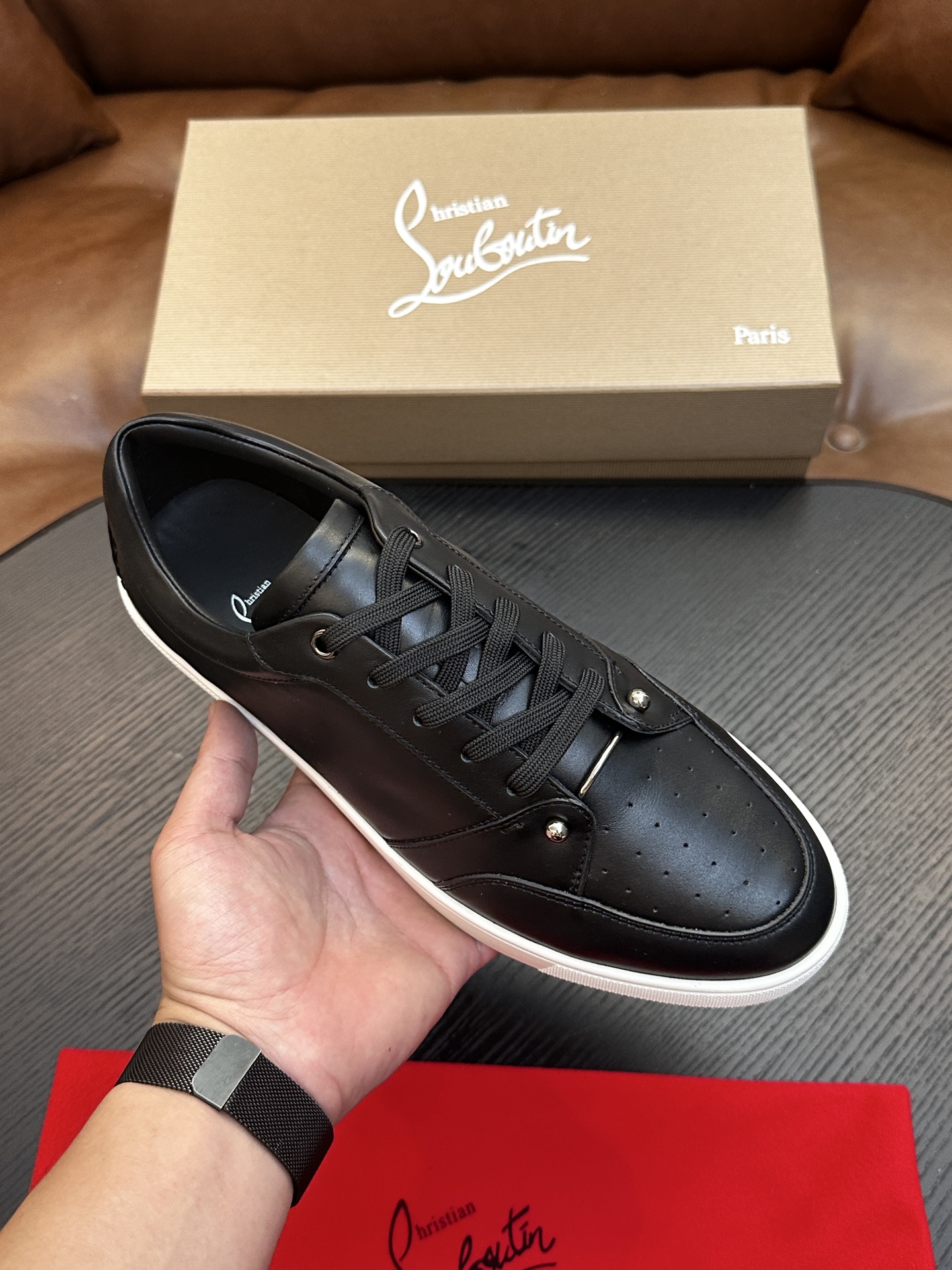 这款鞋子是AAAAA 1:1 质量 (非常棒). 使用了和原版一模一样的材料. 商标部分也保持了和克里斯提·鲁布托/Christian Louboutin一样. 图片拍摄是实物鞋子拍摄, 您所收到的实物保证和我们图片一模一样.
