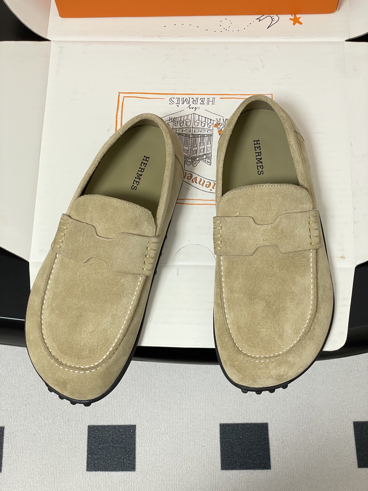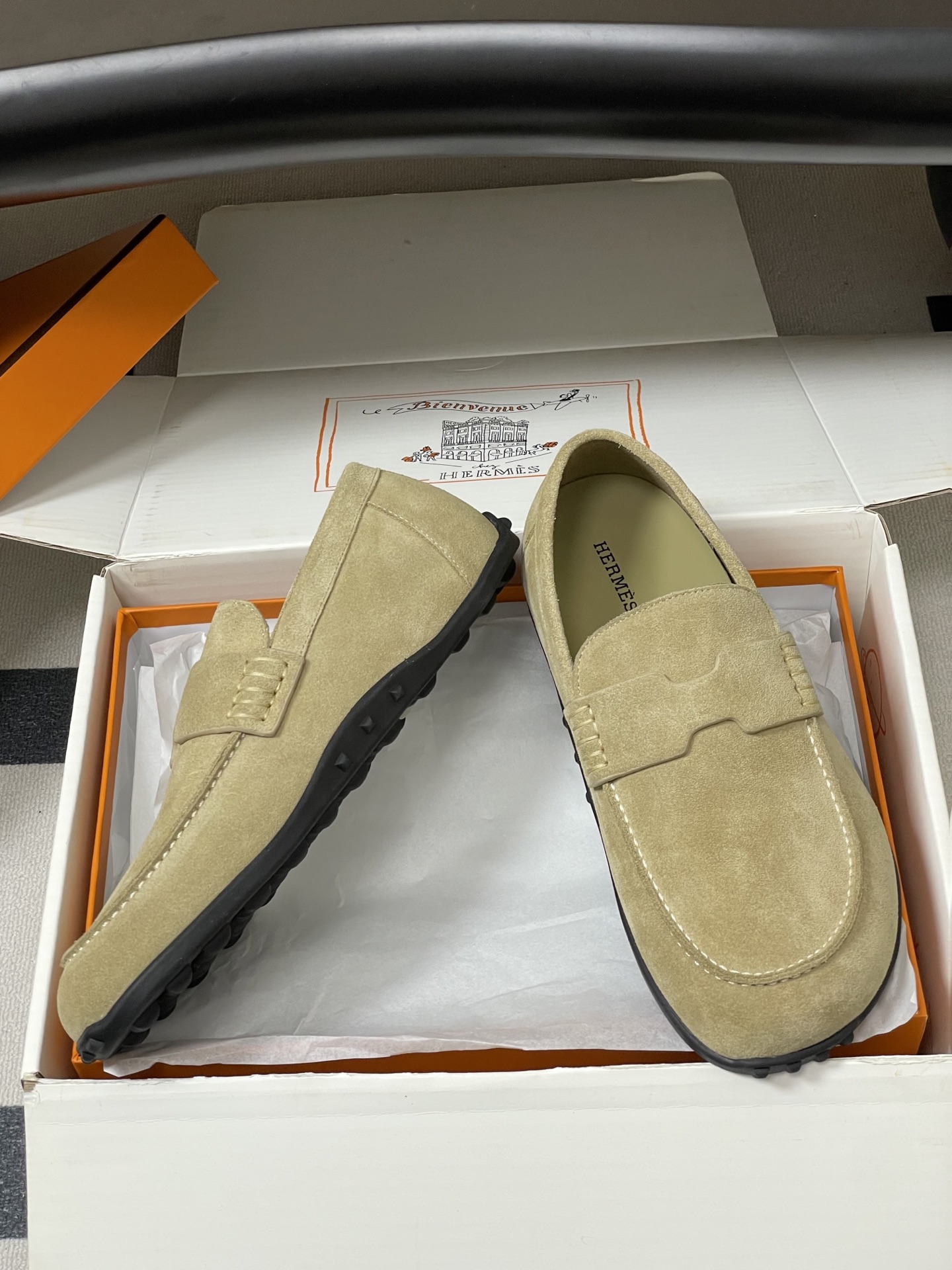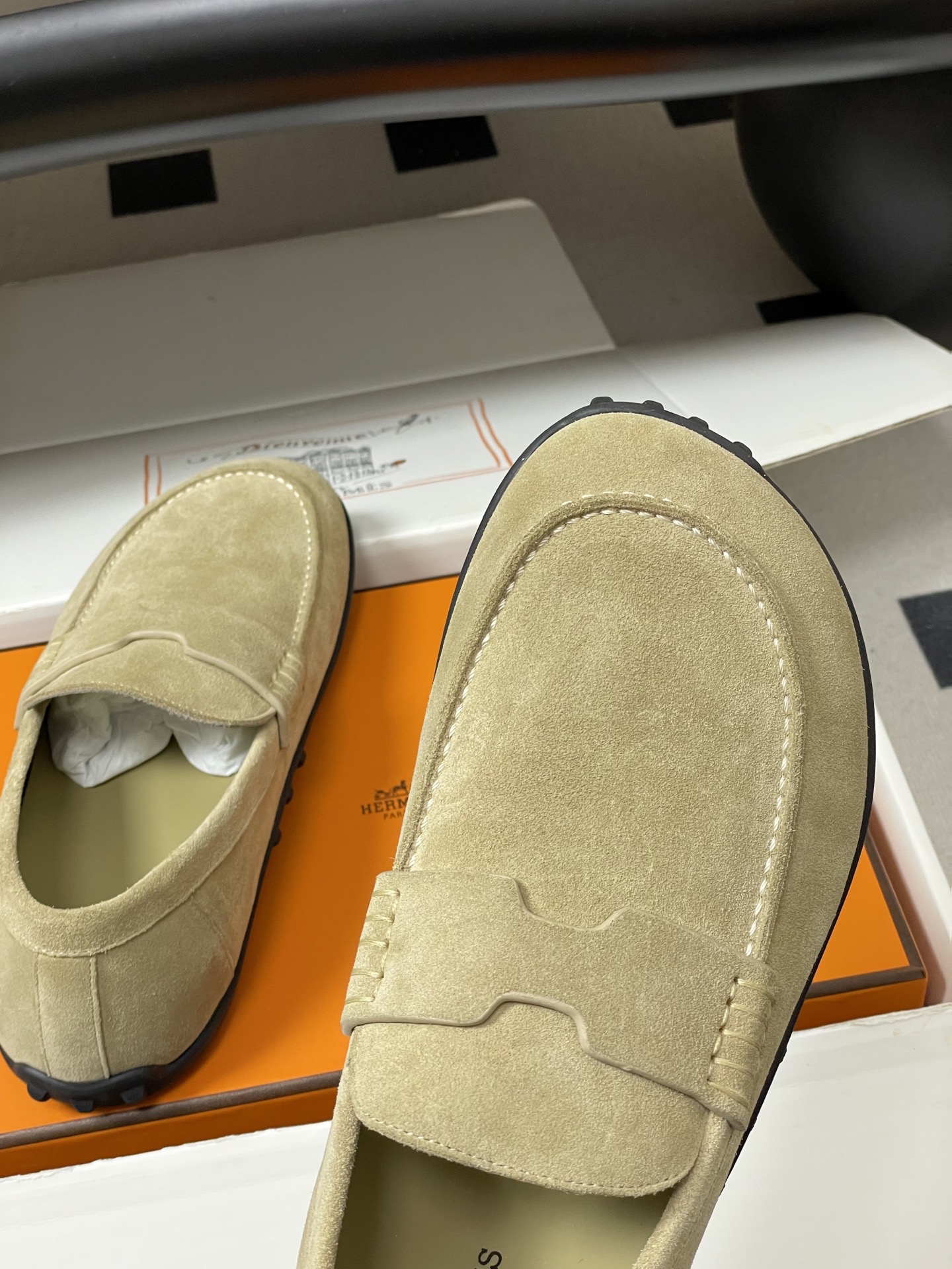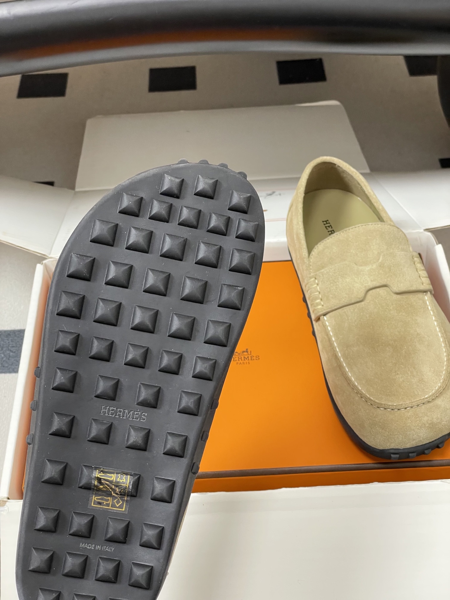 这款鞋子是AAAAA 1:1 质量 (非常棒). 使用了和原版一模一样的材料. 商标部分也保持了和爱马仕/Hermes一样. 图片拍摄是实物鞋子拍摄, 您所收到的实物保证和我们图片一模一样.
