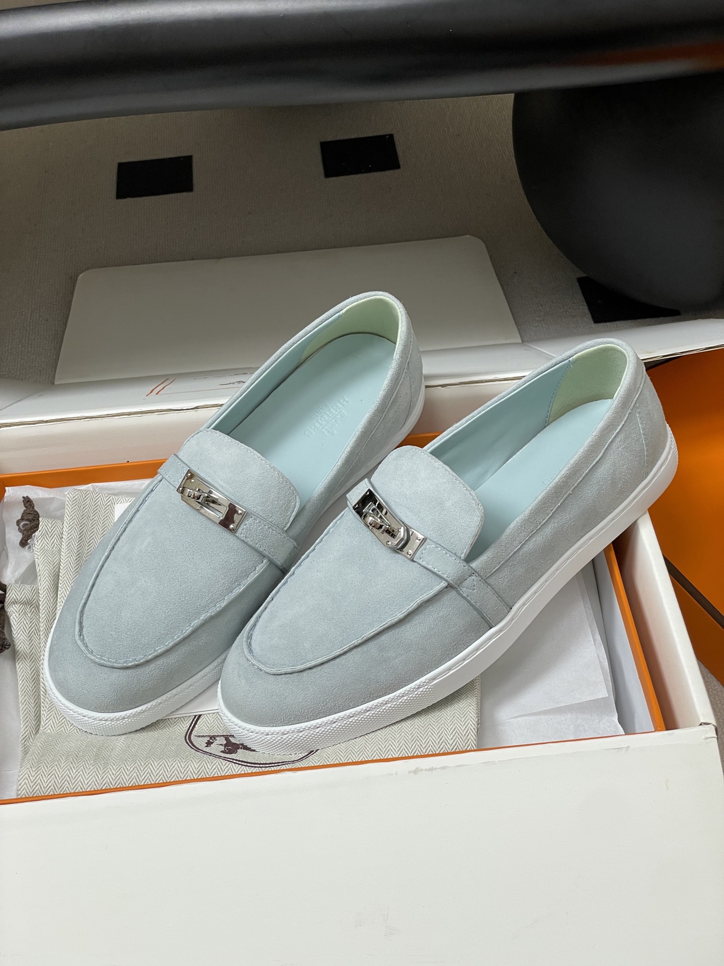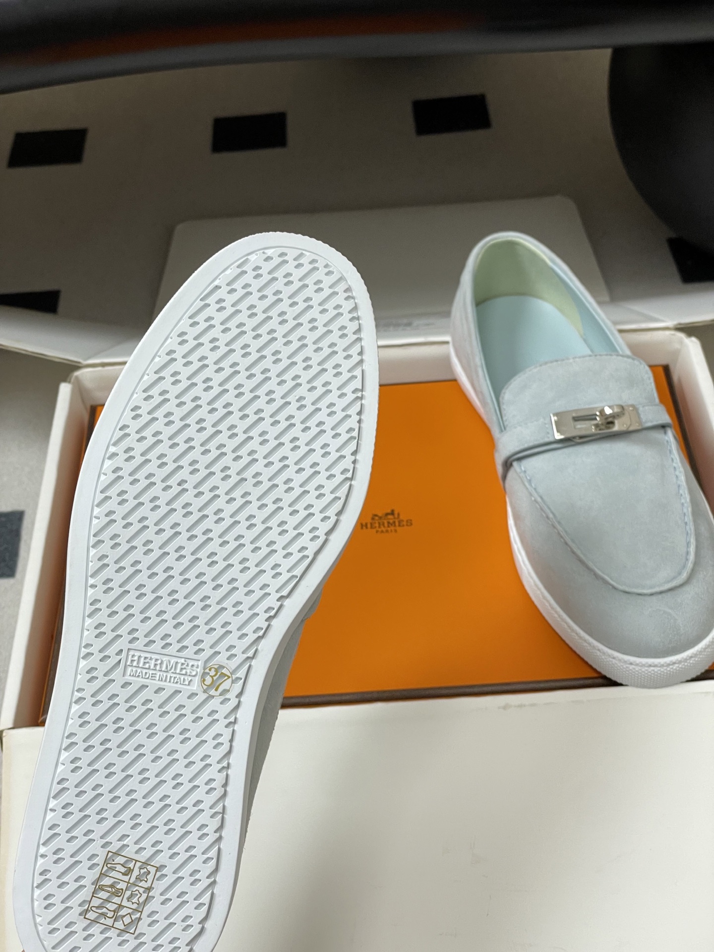 这款鞋子是AAAAA 1:1 质量 (非常棒). 使用了和原版一模一样的材料. 商标部分也保持了和爱马仕/Hermes一样. 图片拍摄是实物鞋子拍摄, 您所收到的实物保证和我们图片一模一样.