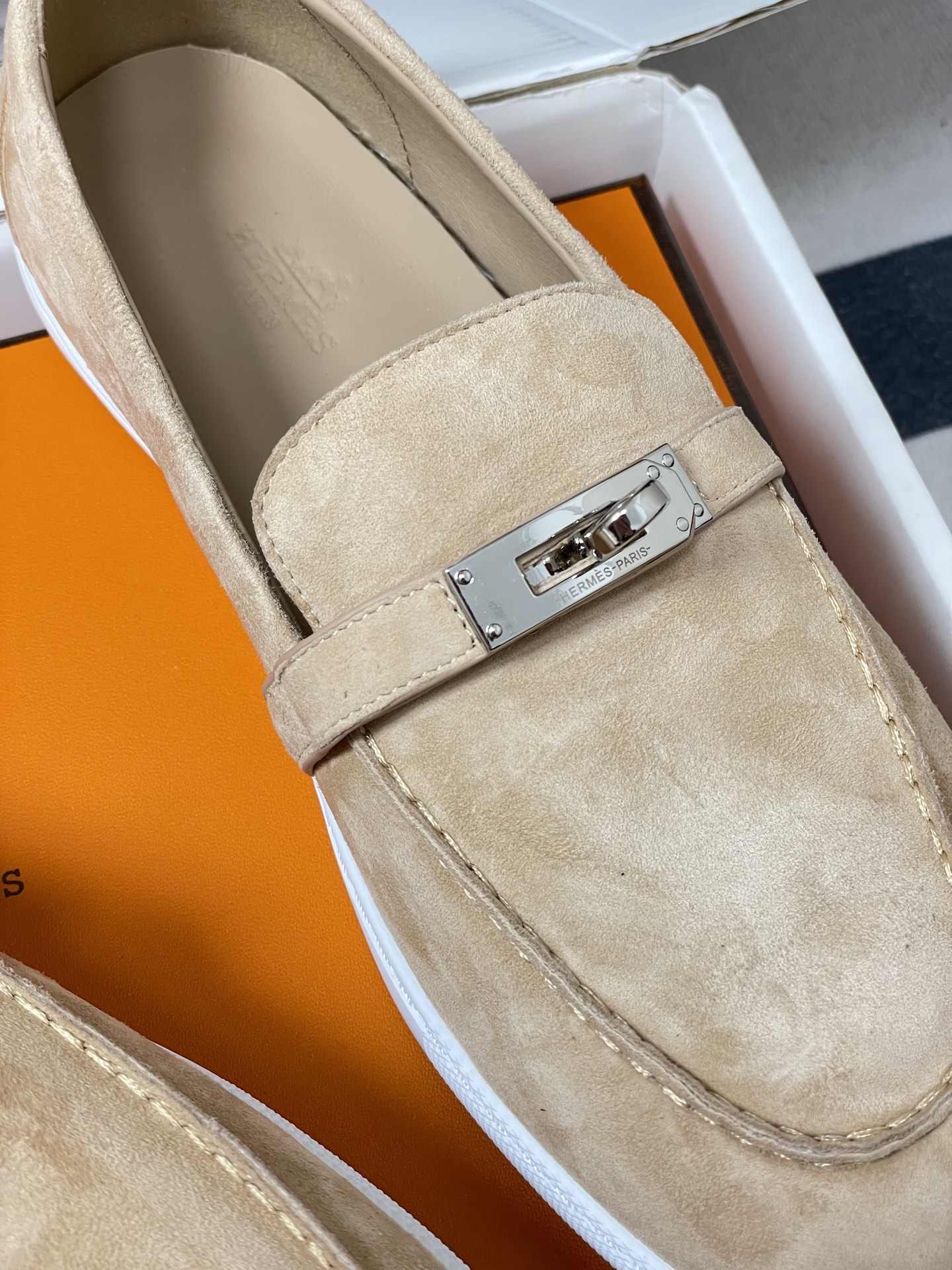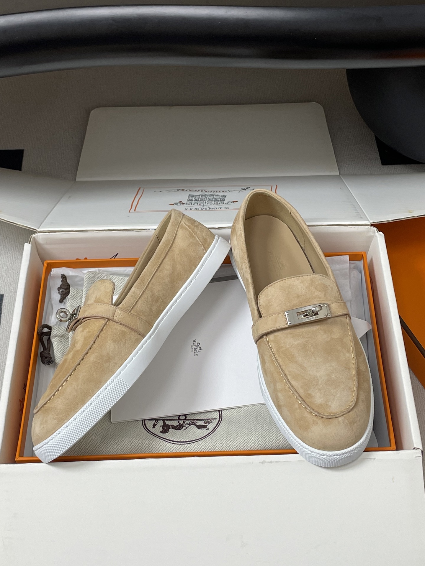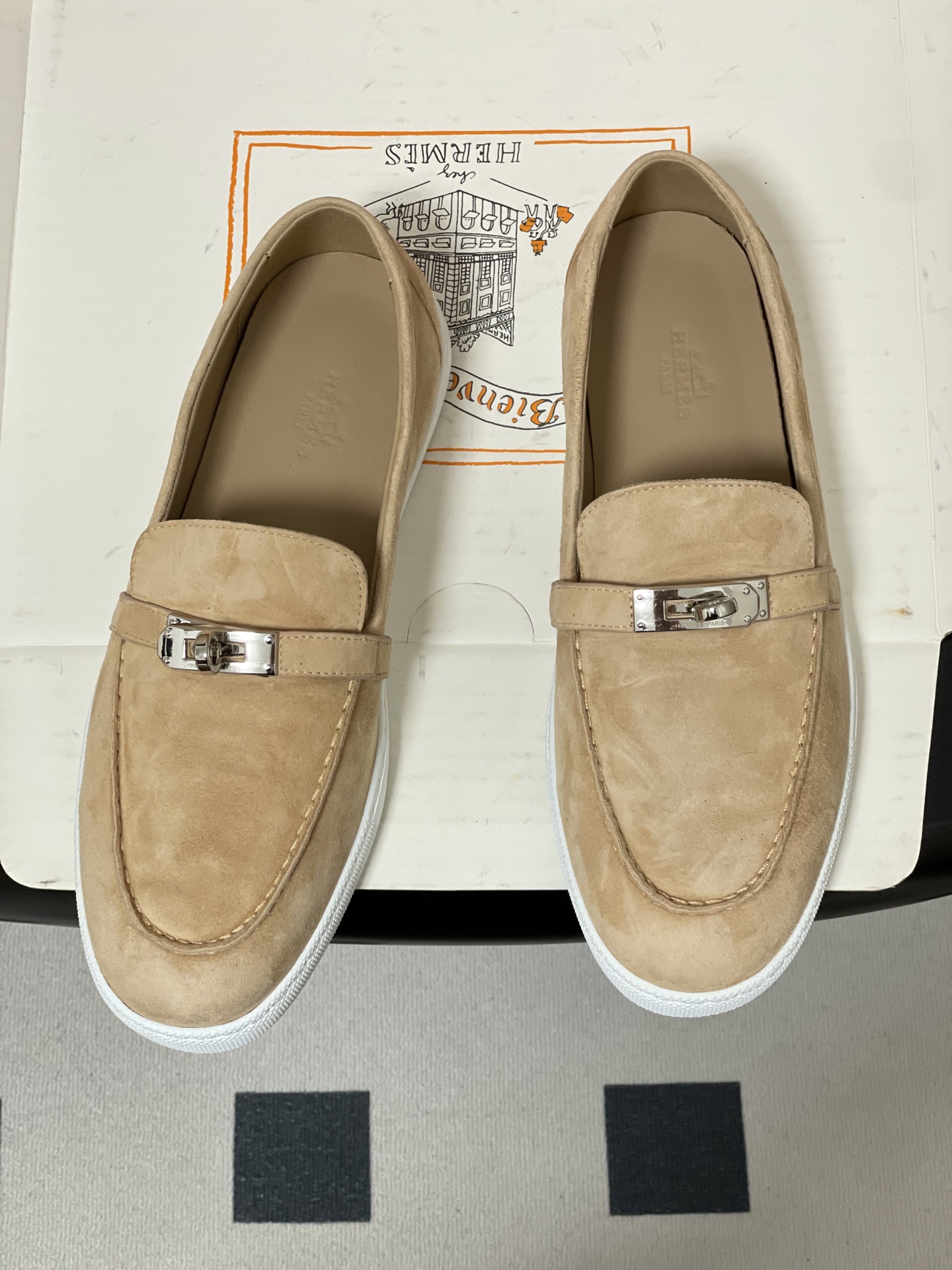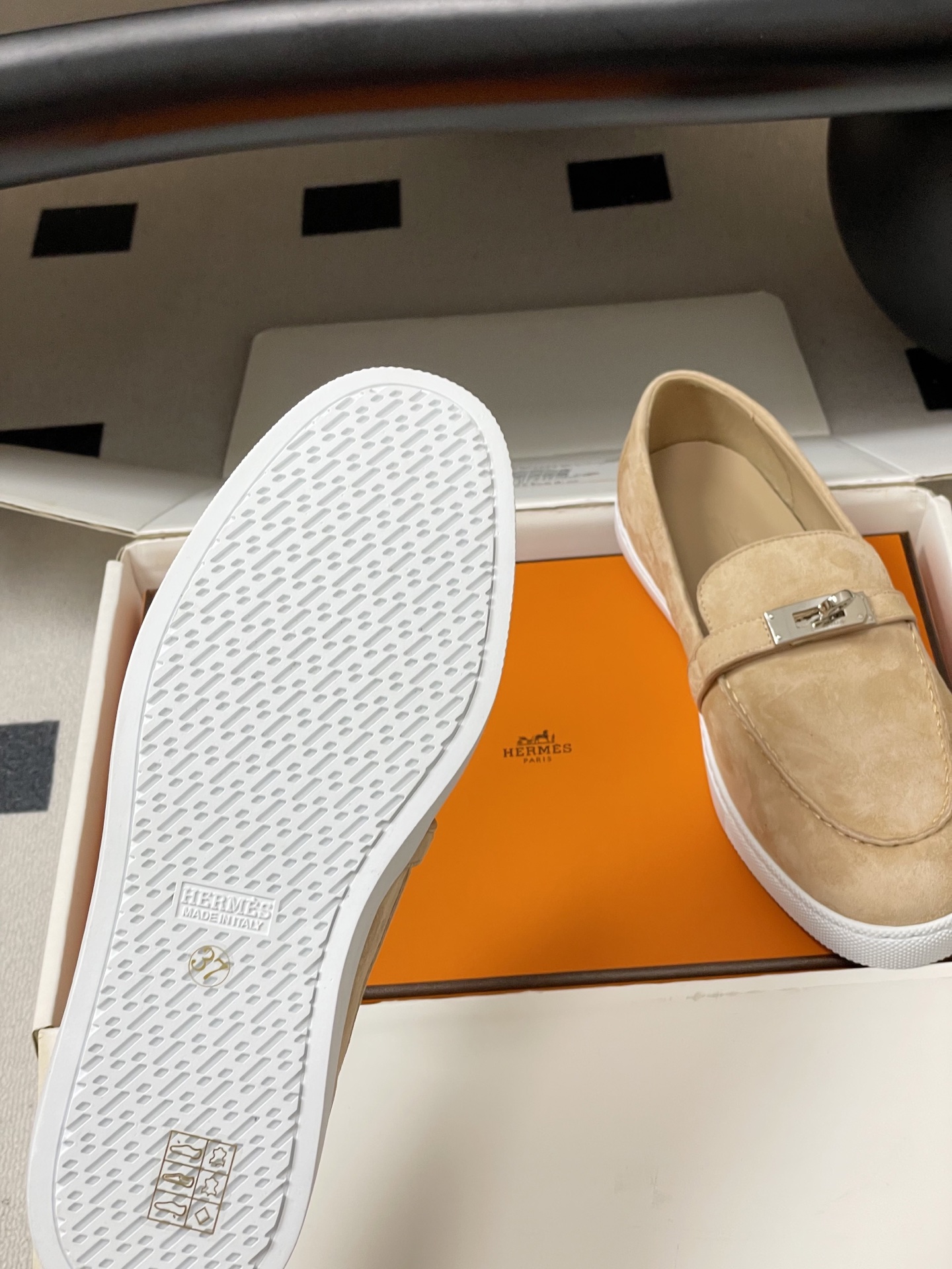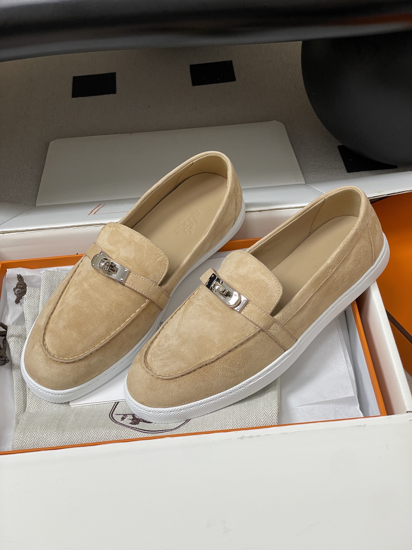这款鞋子是AAAAA 1:1 质量 (非常棒). 使用了和原版一模一样的材料. 商标部分也保持了和爱马仕/Hermes一样. 图片拍摄是实物鞋子拍摄, 您所收到的实物保证和我们图片一模一样.