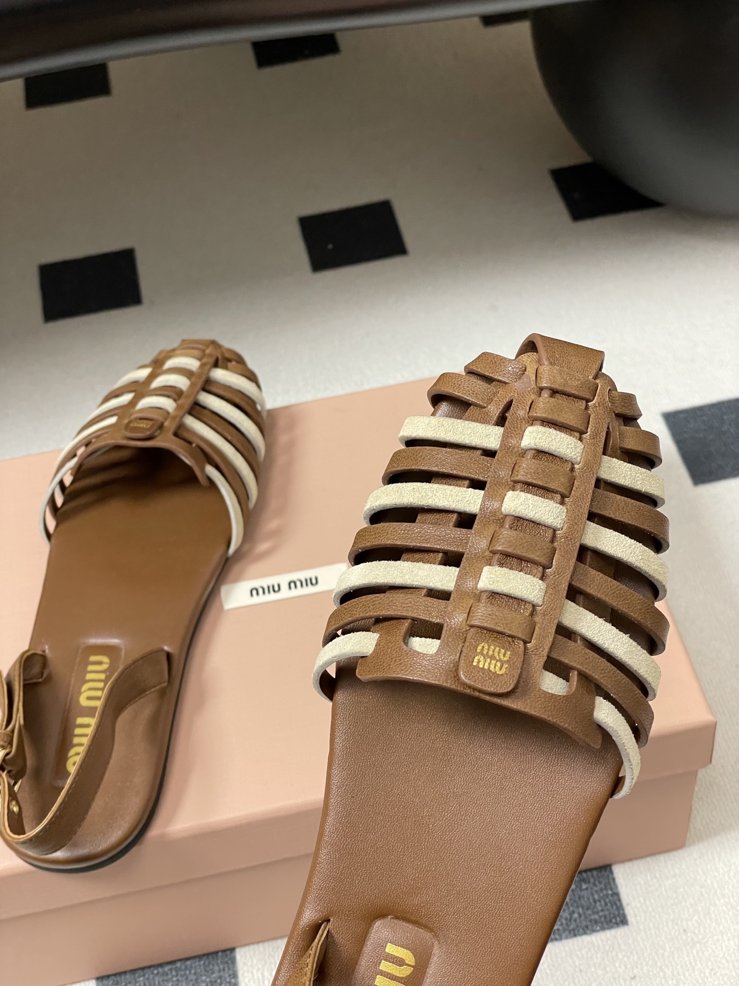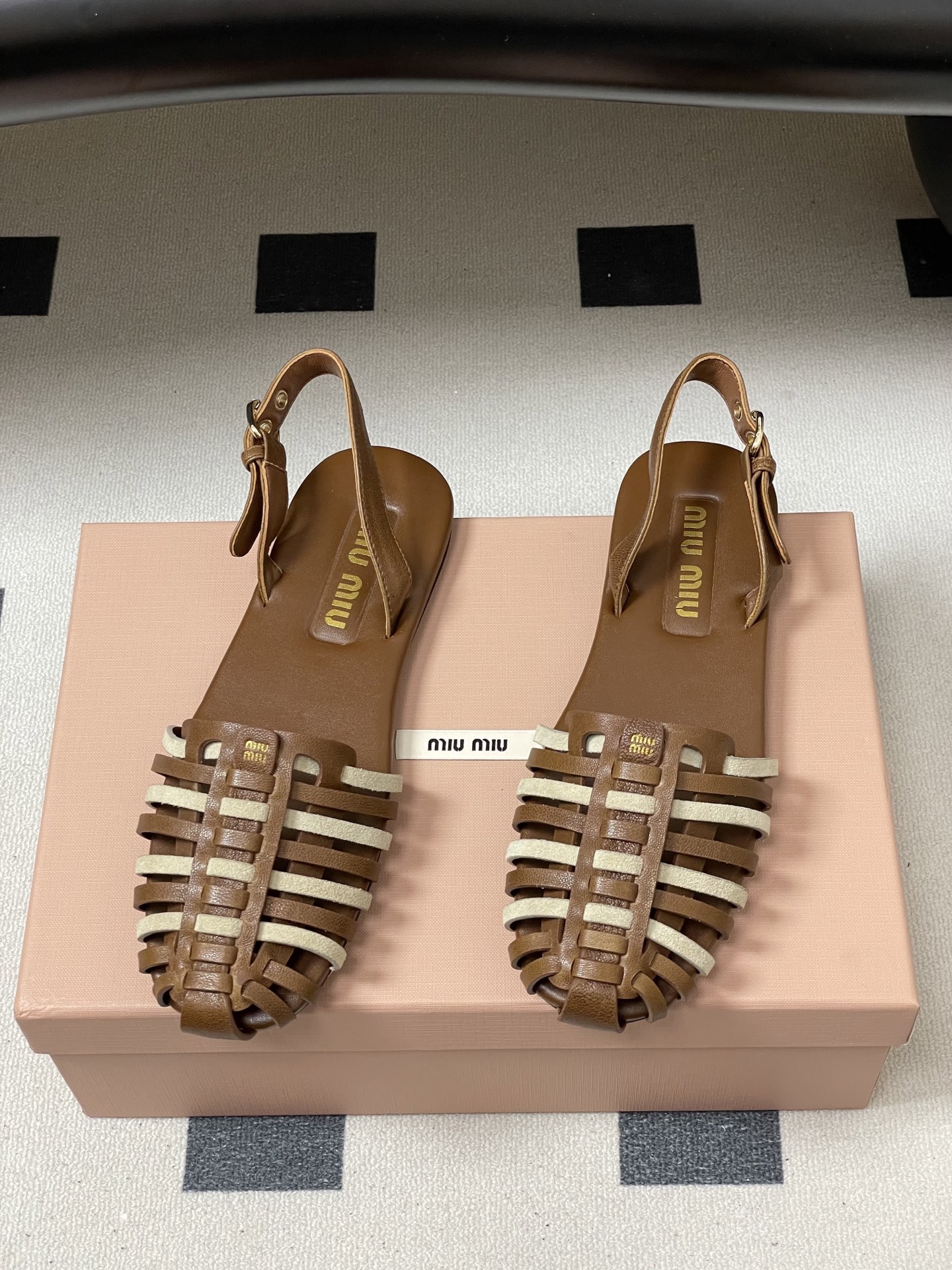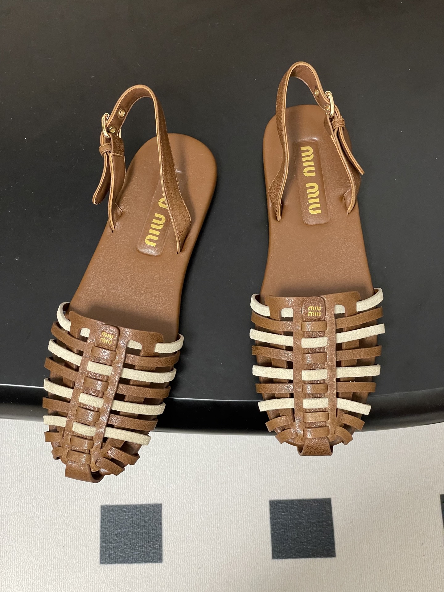 这款鞋子是AAAAA 1:1 质量 (非常棒). 使用了和原版一模一样的材料. 商标部分也保持了和缪缪/Miu Miu一样. 图片拍摄是实物鞋子拍摄, 您所收到的实物保证和我们图片一模一样.