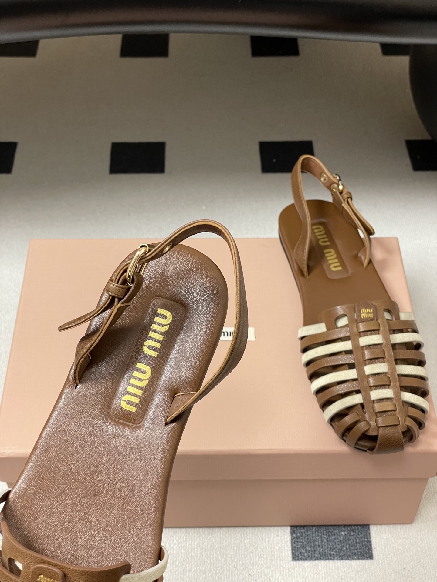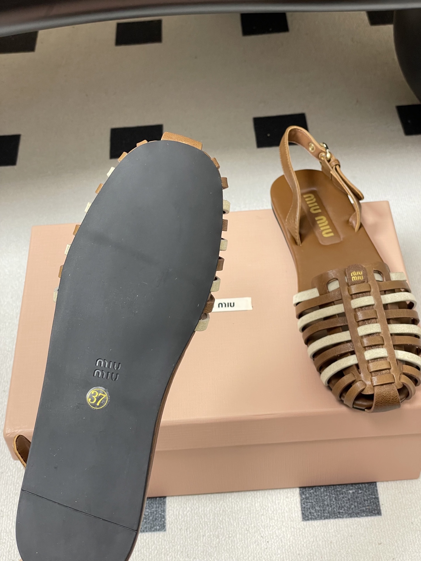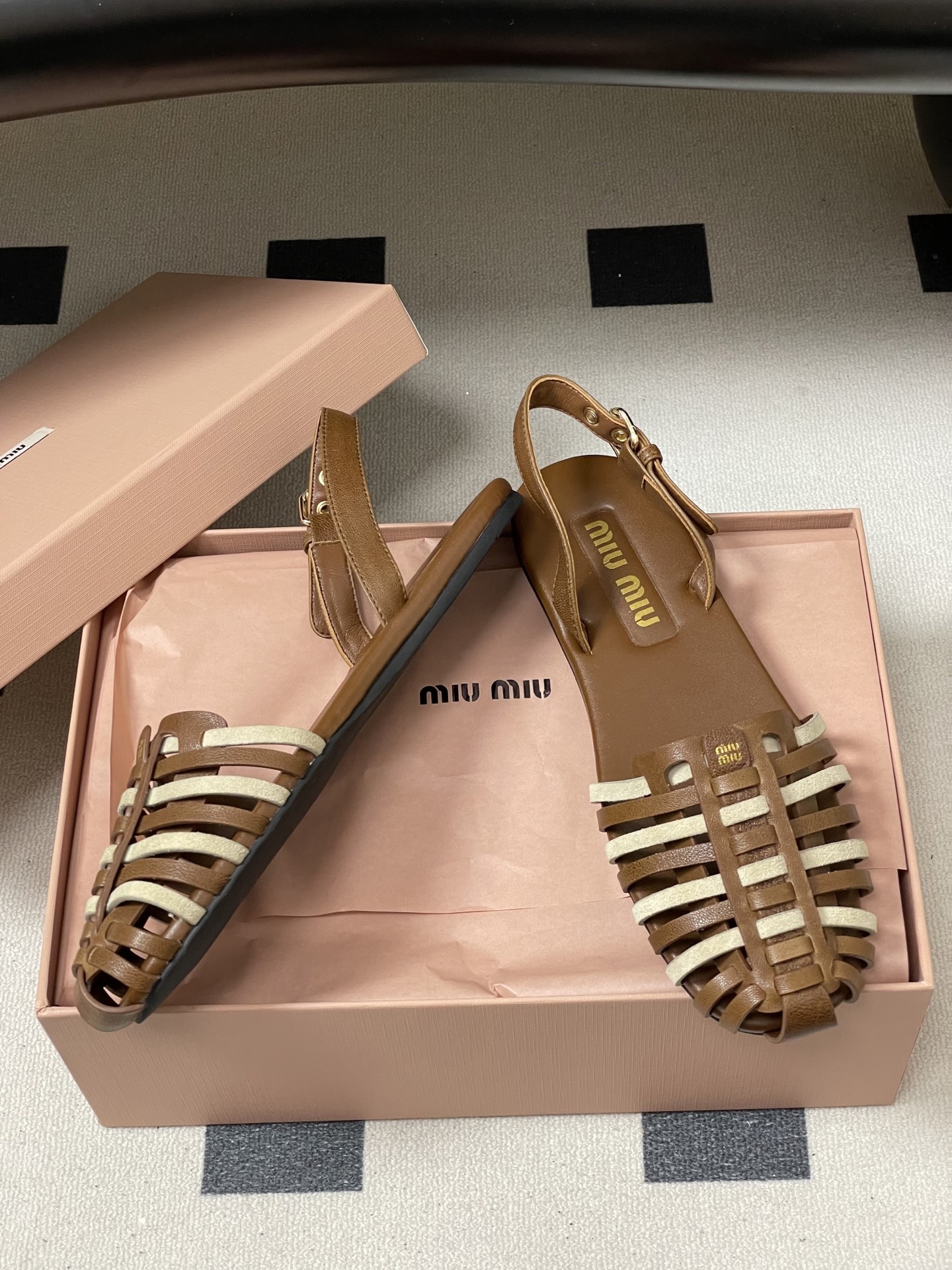 这款鞋子是AAAAA 1:1 质量 (非常棒). 使用了和原版一模一样的材料. 商标部分也保持了和缪缪/Miu Miu一样. 图片拍摄是实物鞋子拍摄, 您所收到的实物保证和我们图片一模一样.