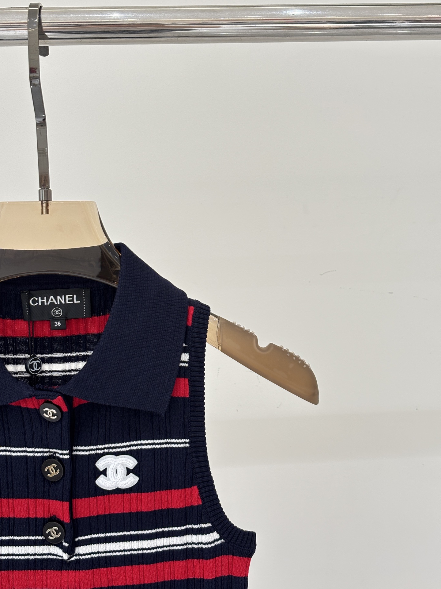 这款衣服是AAAAA 1:1 质量 (非常棒). 使用了和原版一模一样的材料. 商标部分也保持了和香奈儿/Chanel一样. 图片拍摄是实物衣服拍摄, 您所收到的实物保证和我们图片一模一样.