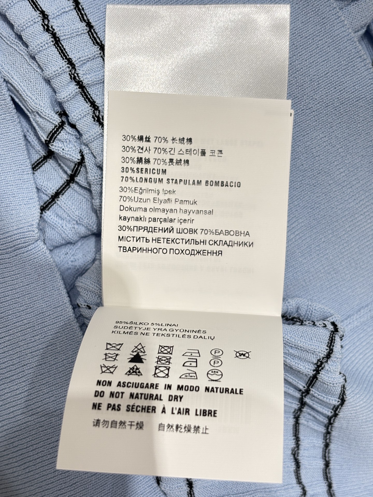 这款衣服是AAAAA 1:1 质量 (非常棒). 使用了和原版一模一样的材料. 商标部分也保持了和缪缪/Miu Miu一样. 图片拍摄是实物衣服拍摄, 您所收到的实物保证和我们图片一模一样.