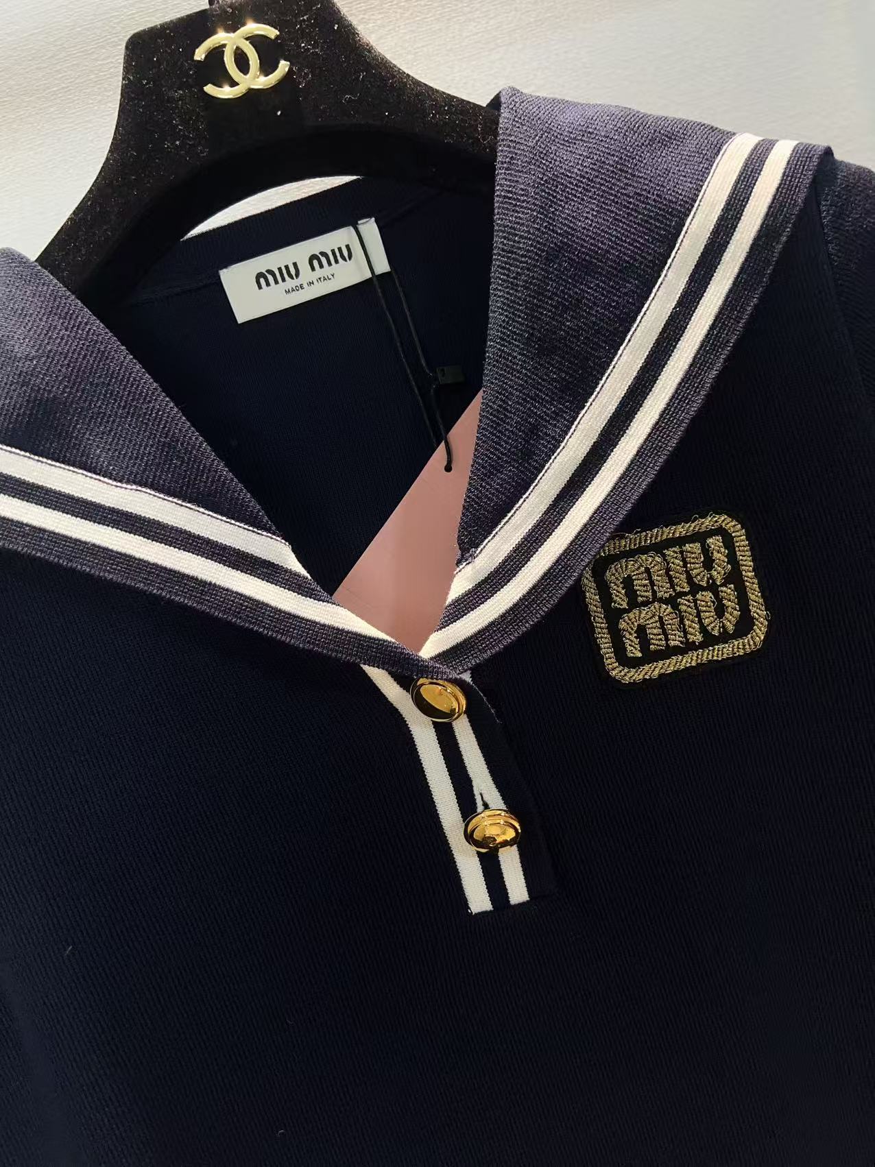 这款衣服是AAAAA 1:1 质量 (非常棒). 使用了和原版一模一样的材料. 商标部分也保持了和缪缪/Miu Miu一样. 图片拍摄是实物衣服拍摄, 您所收到的实物保证和我们图片一模一样.