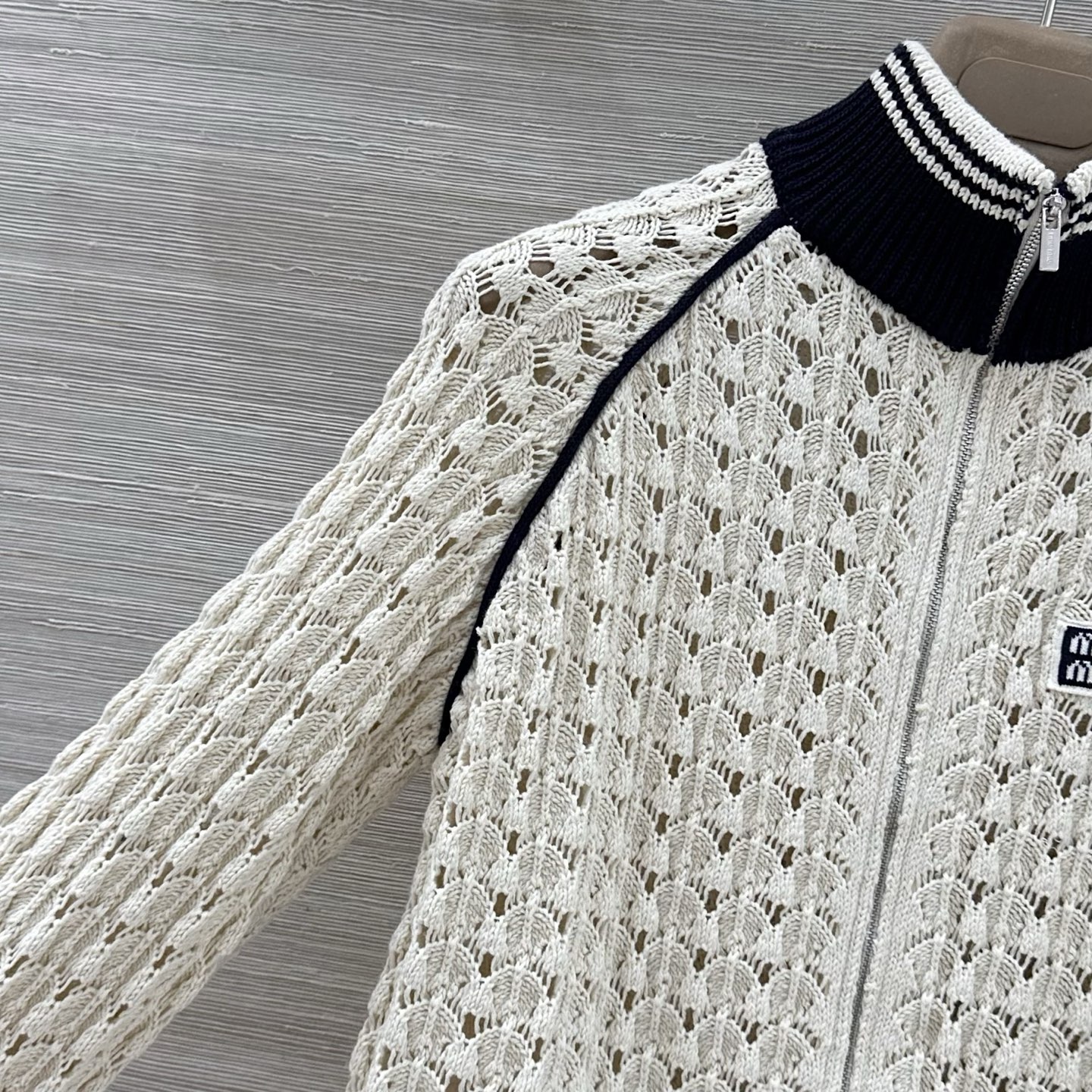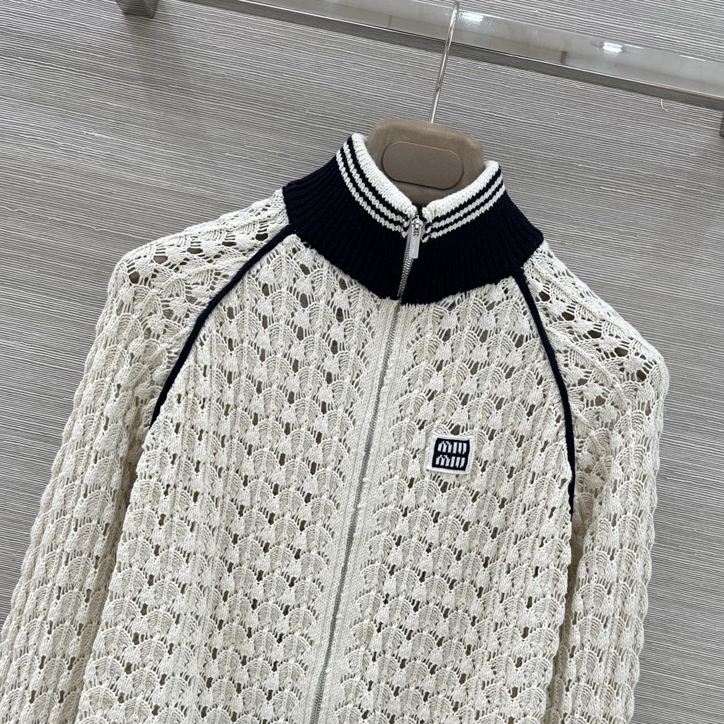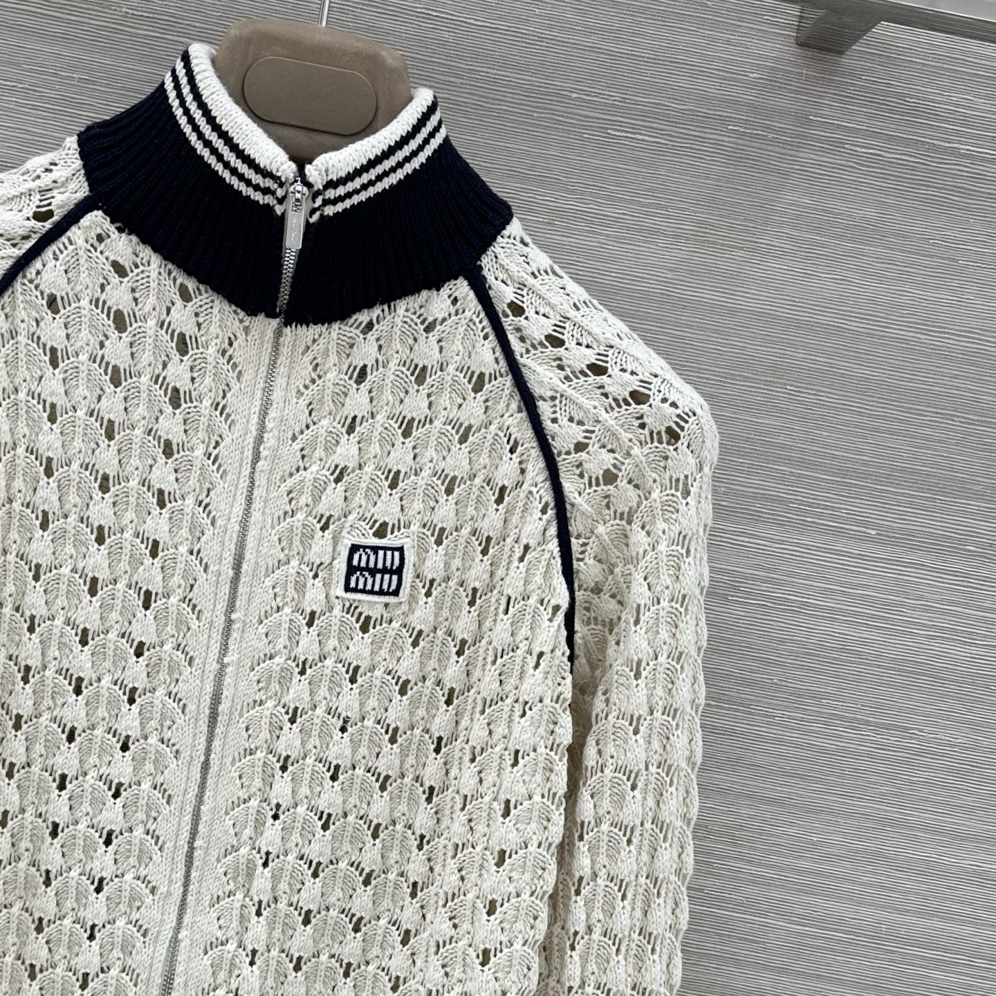 这款衣服是AAAAA 1:1 质量 (非常棒). 使用了和原版一模一样的材料. 商标部分也保持了和缪缪/Miu Miu一样. 图片拍摄是实物衣服拍摄, 您所收到的实物保证和我们图片一模一样.